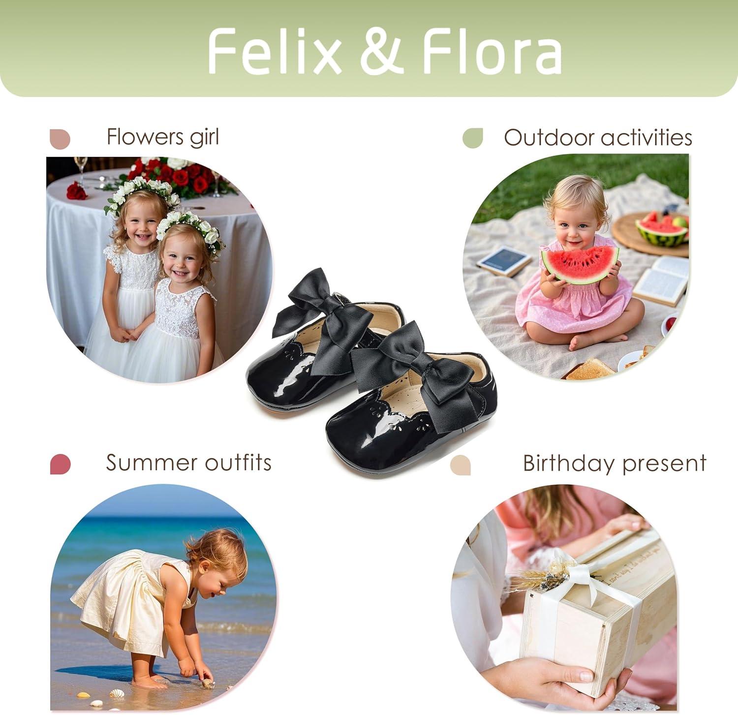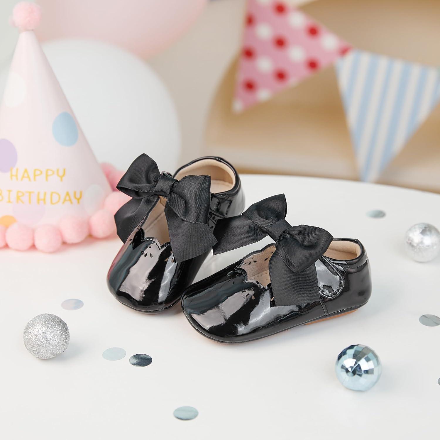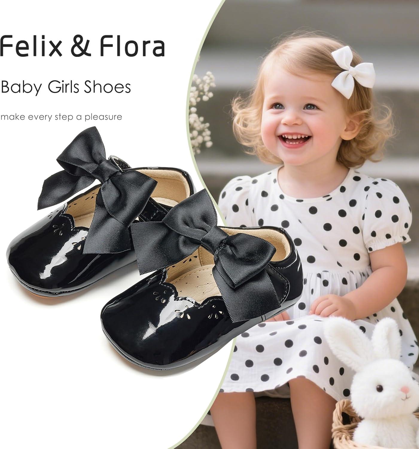 Felix & Flora Baby Dress Shoes – Infant Baby Girls Mary Jane Flats Moccasinss Soft Sole Walking Crib Shoes(Bn34-black)