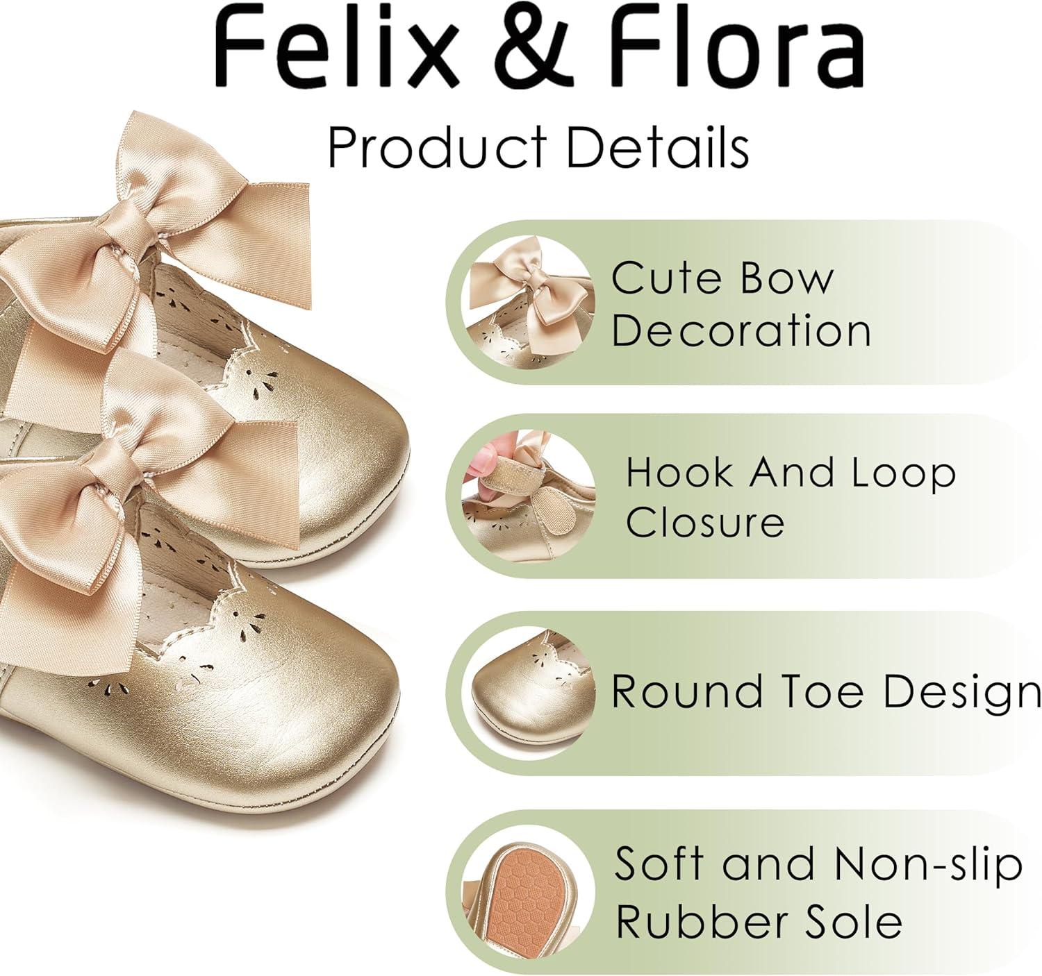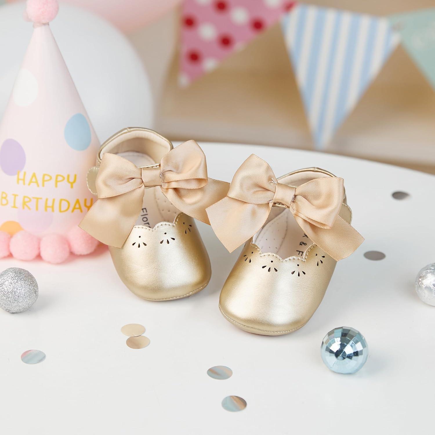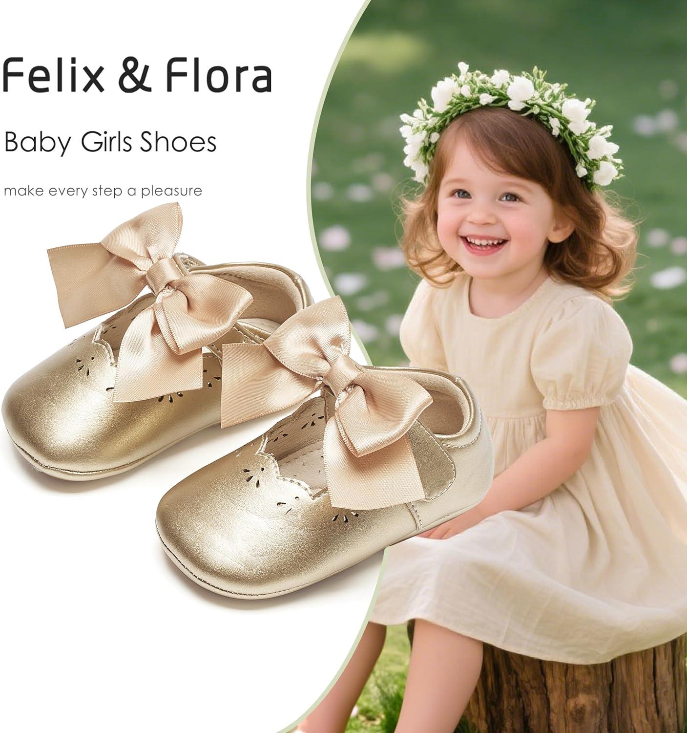 Felix & Flora Baby Dress Shoes – Infant Baby Girls Mary Jane Flats Moccasinss Soft Sole Walking Crib Shoes(Bn34-fl Gold)
