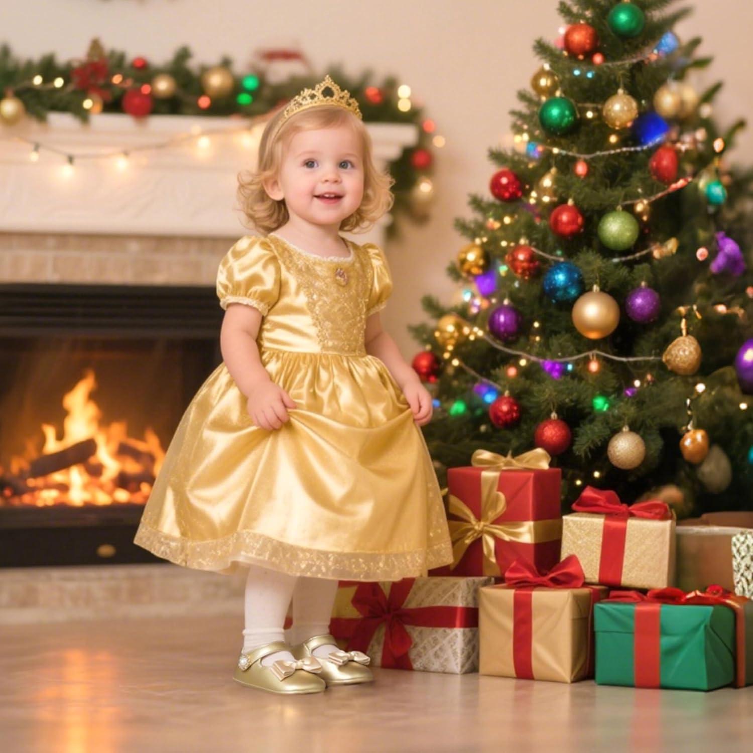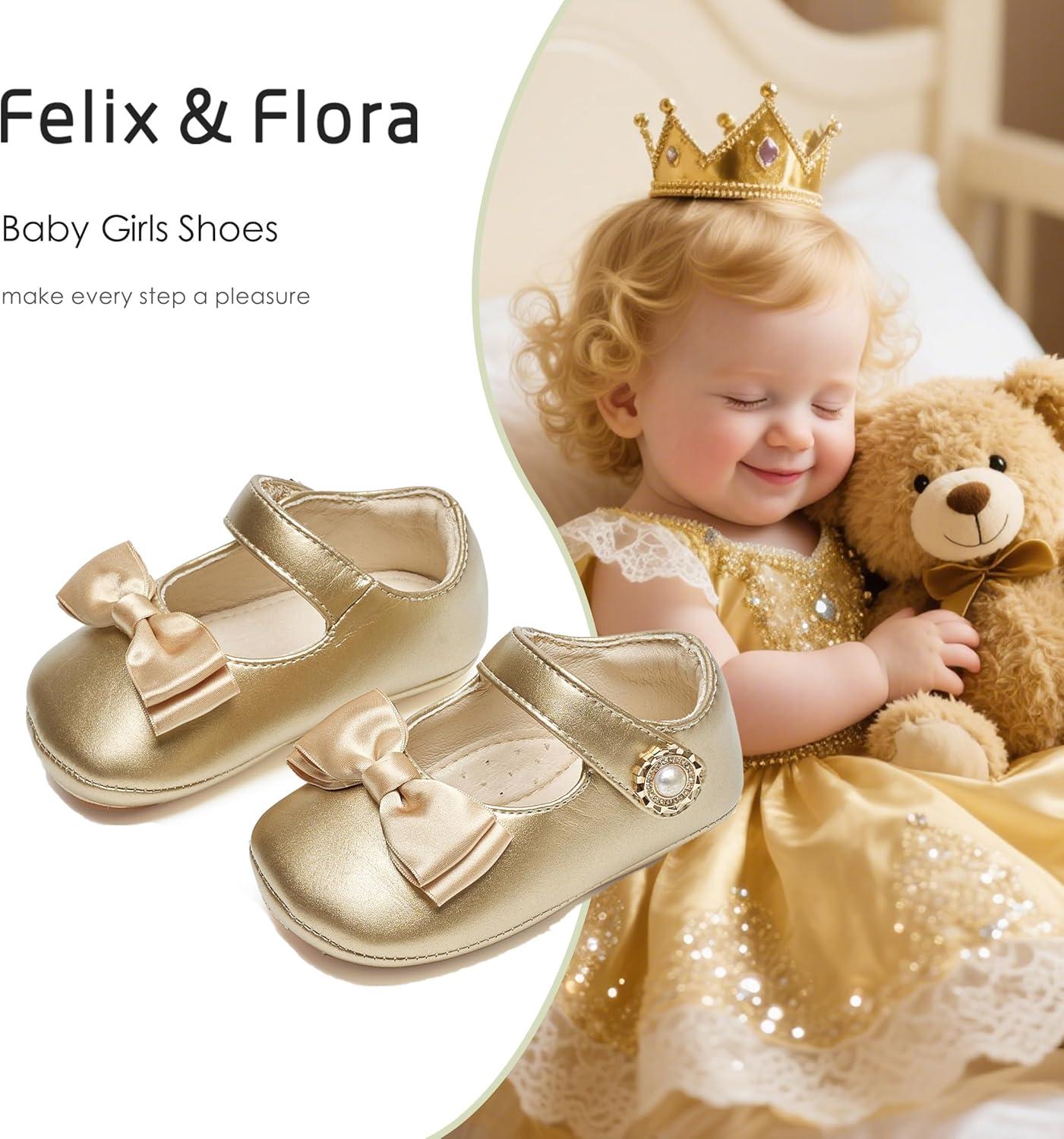 Felix & Flora Baby Dress Shoes – Infant Baby Girls Mary Jane Flats Moccasinss Soft Sole Walking Crib Shoes(Bn35-fl Gold)