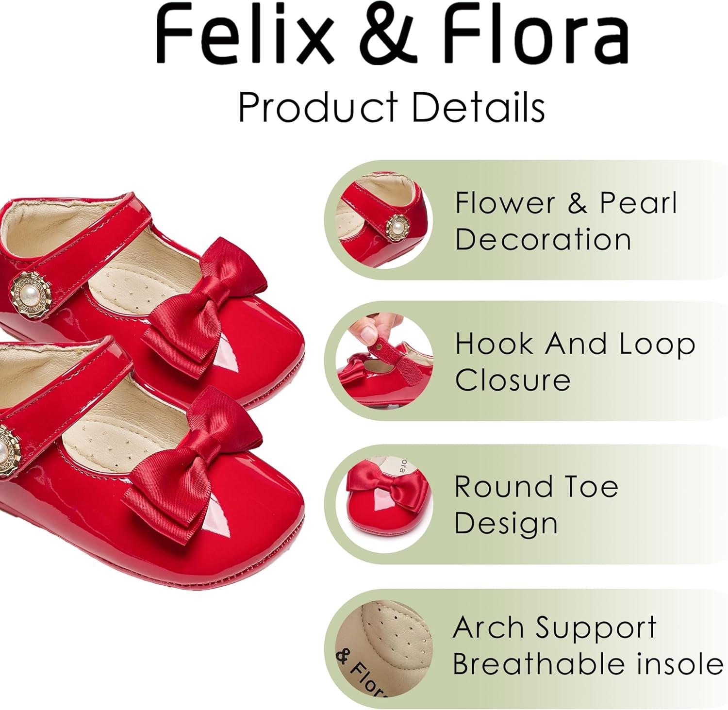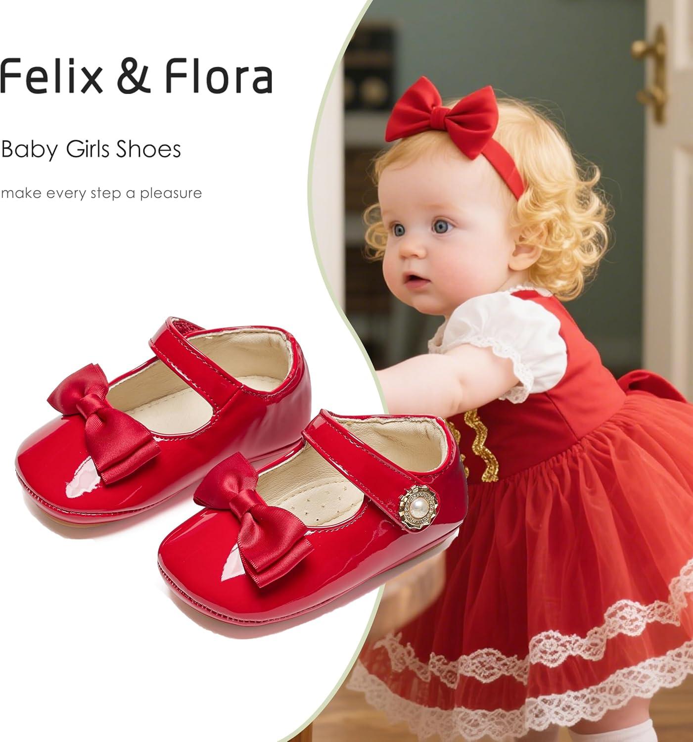 Felix & Flora Baby Dress Shoes – Infant Baby Girls Mary Jane Flats Moccasinss Soft Sole Walking Crib Shoes(Bn35-red)