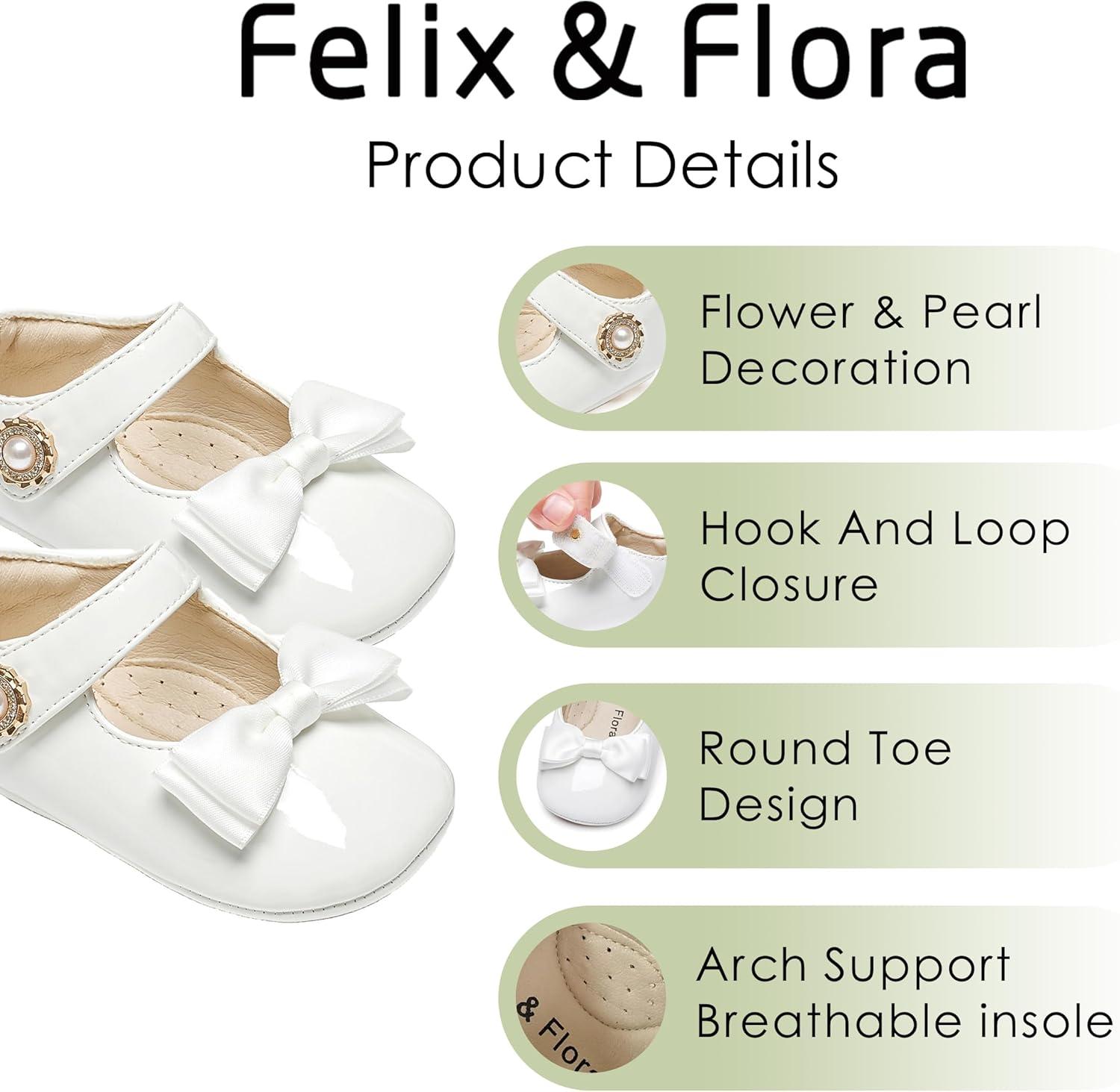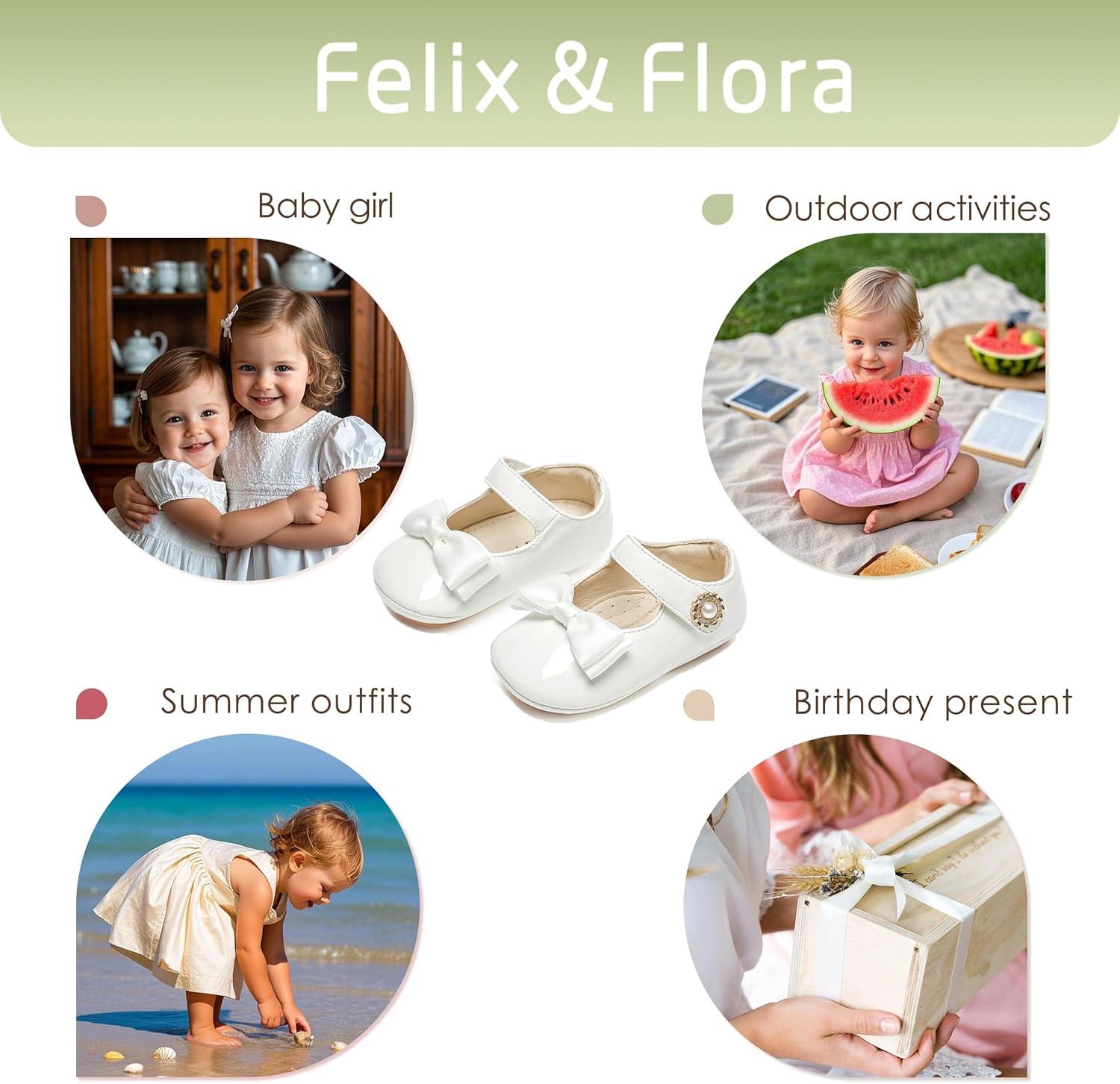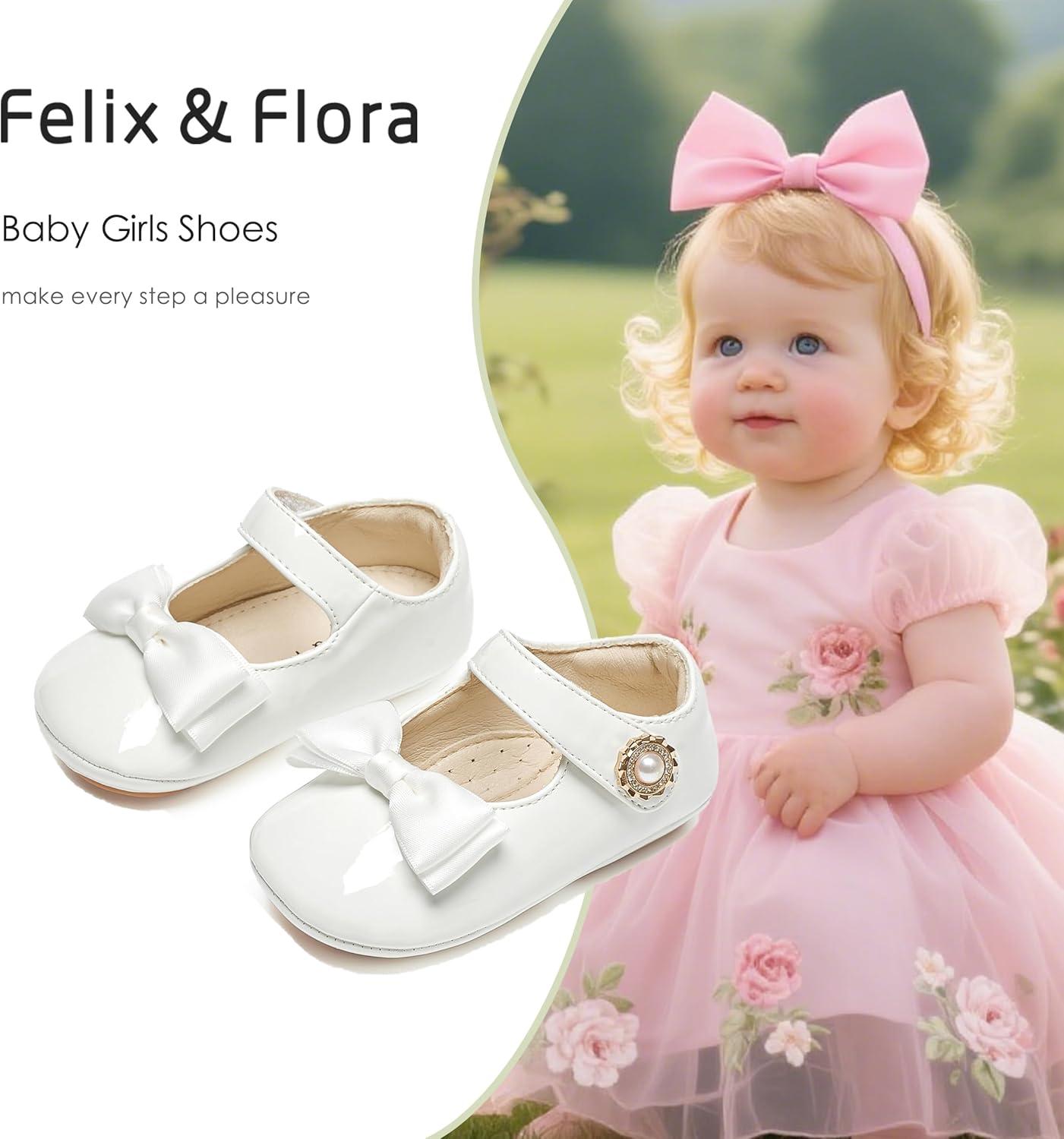 Felix & Flora Baby Dress Shoes – Infant Baby Girls Mary Jane Flats Moccasinss Soft Sole Walking Crib Shoes(Bn35-white)