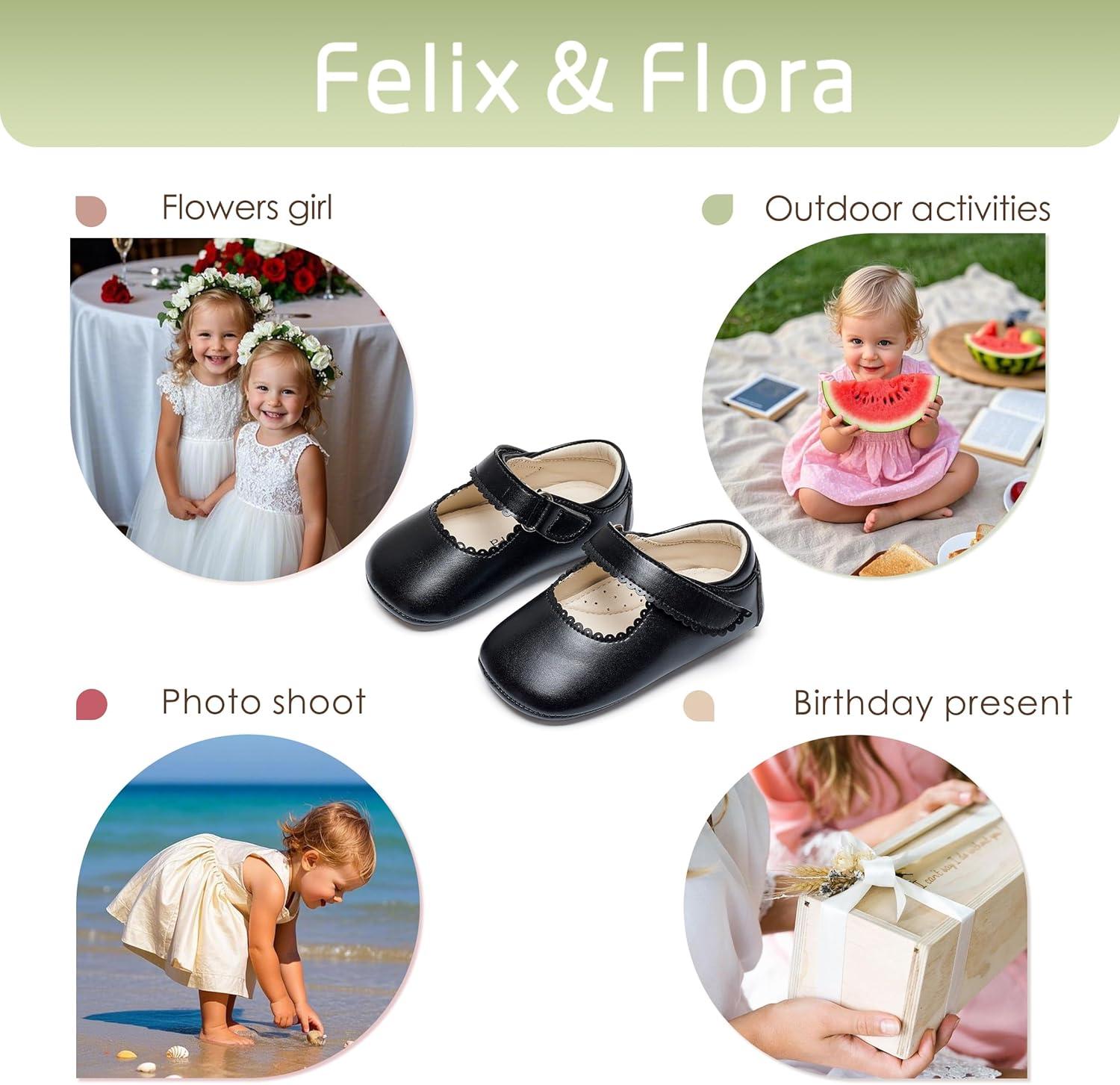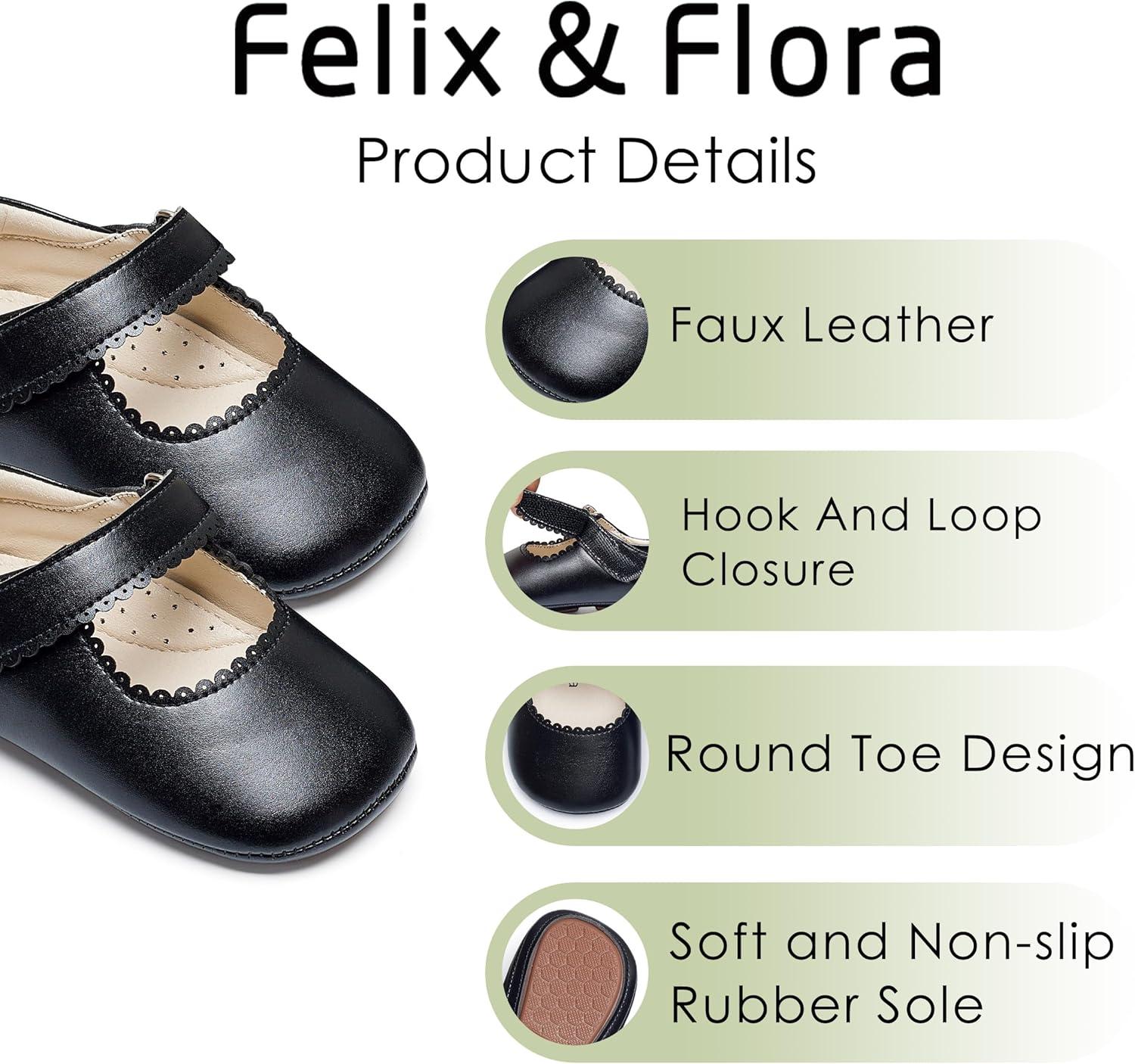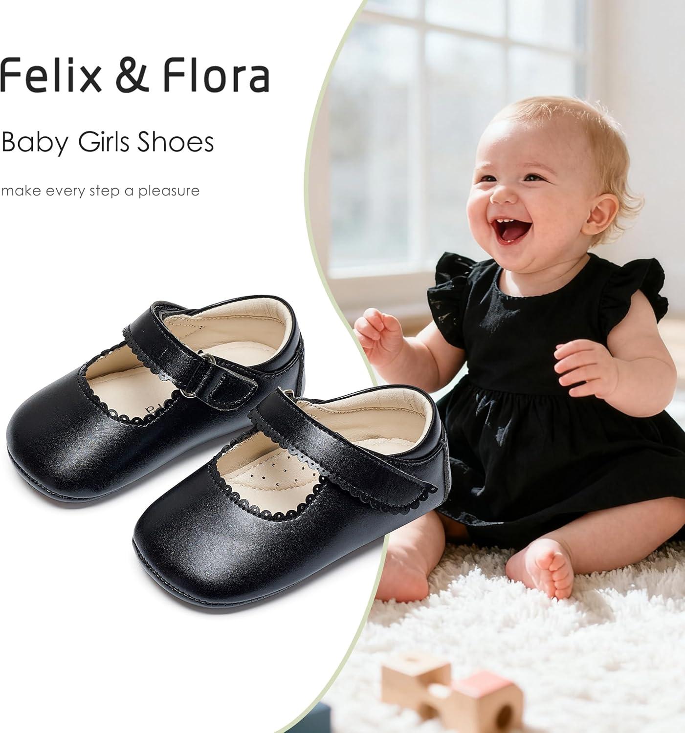 Felix & Flora Baby Dress Shoes – Infant Baby Girls Mary Jane Flats Moccasinss Soft Sole Walking Crib Shoes(Bn43-black)