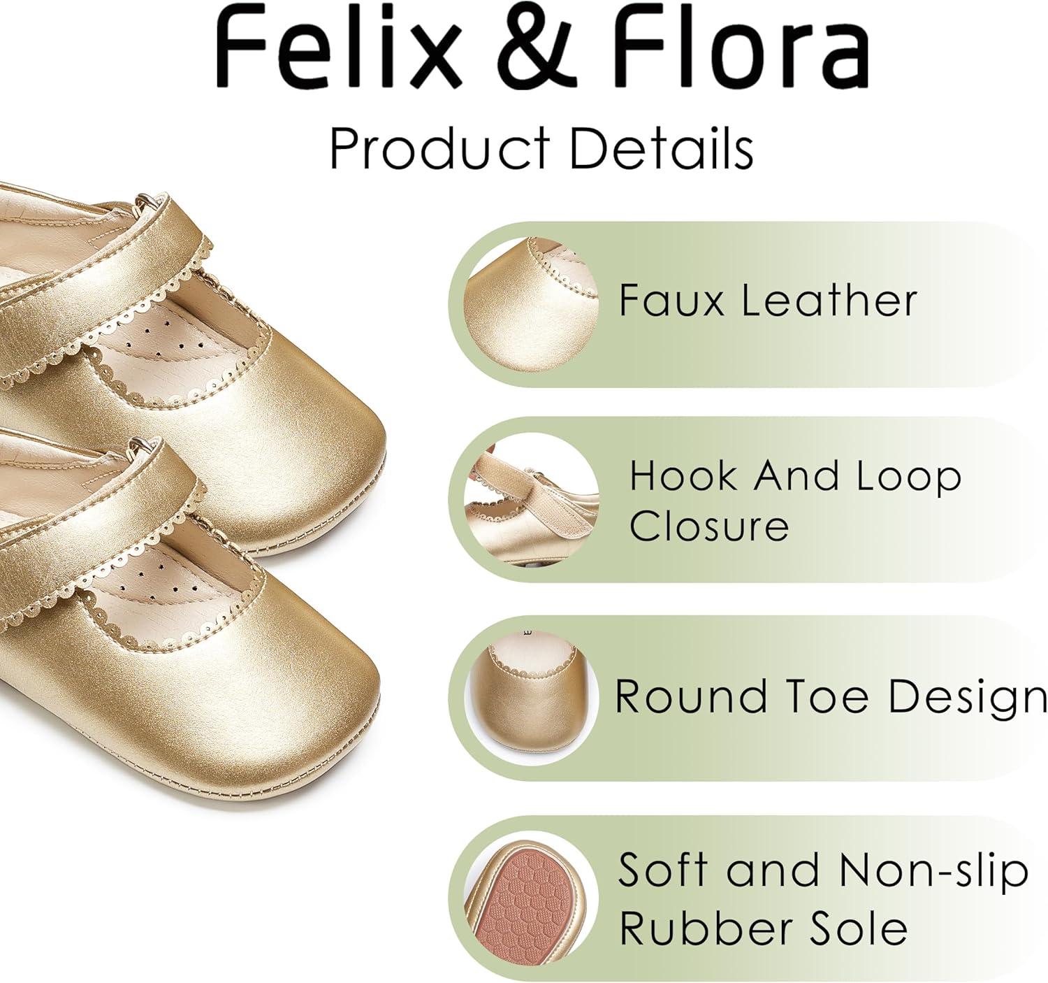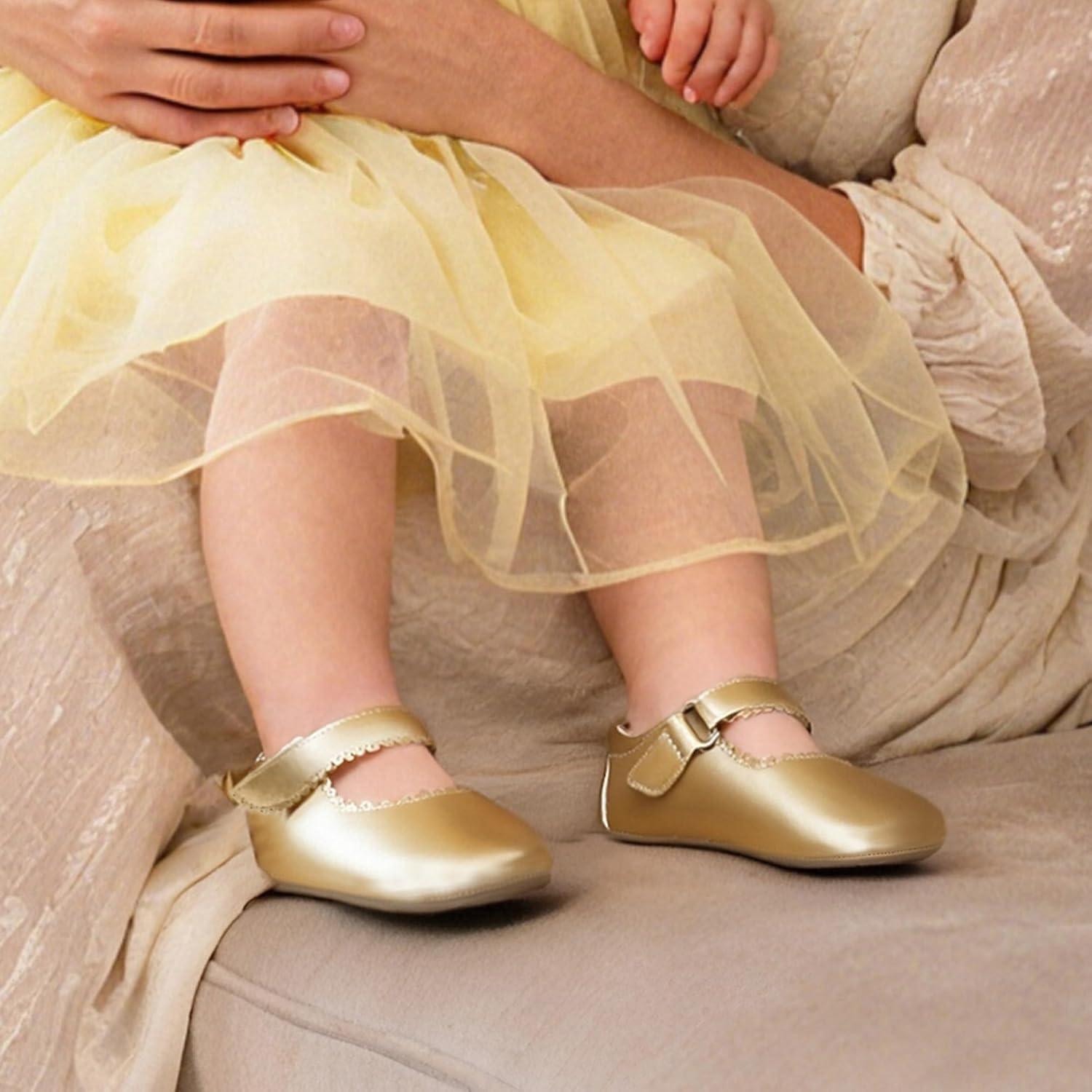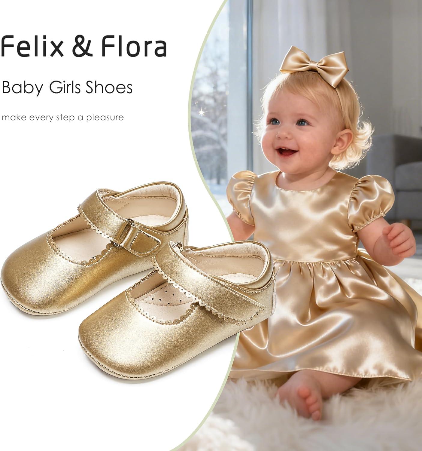 Felix & Flora Baby Dress Shoes – Infant Baby Girls Mary Jane Flats Moccasinss Soft Sole Walking Crib Shoes(Bn43-gold)