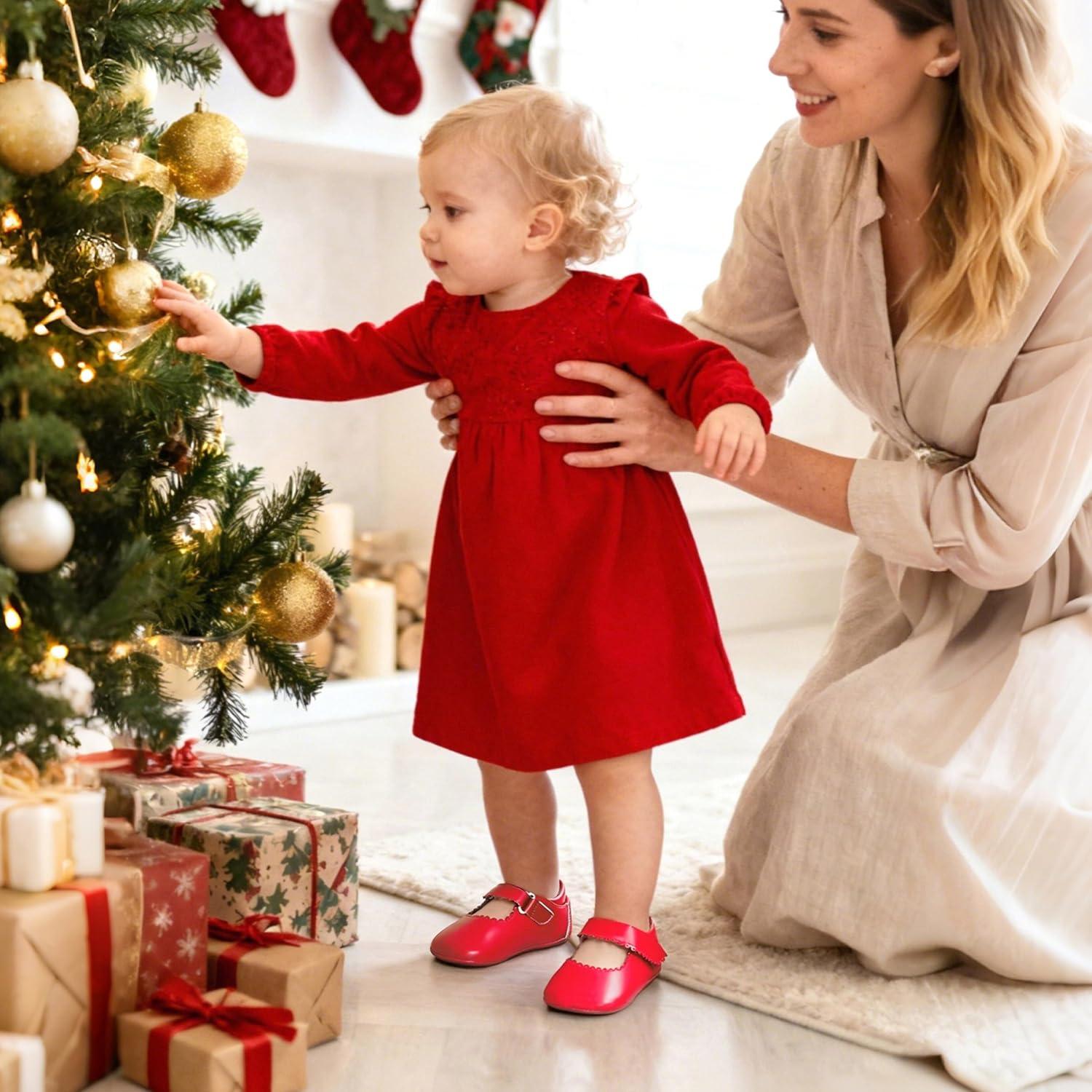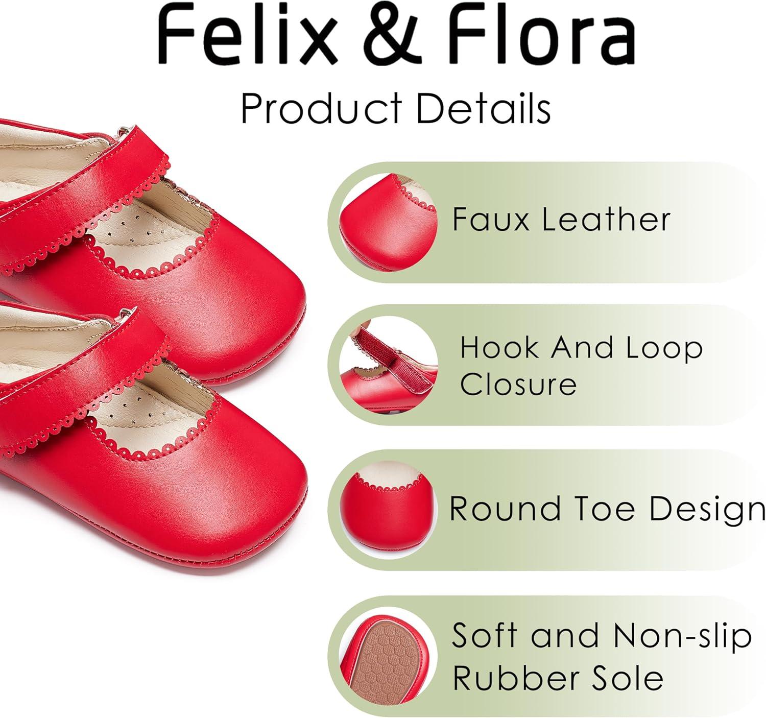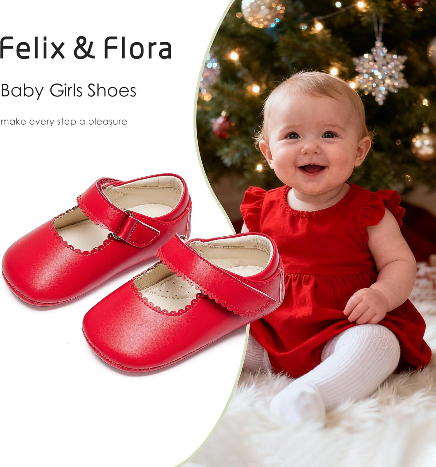 Felix & Flora Baby Dress Shoes – Infant Baby Girls Mary Jane Flats Moccasinss Soft Sole Walking Crib Shoes(Bn43-red)