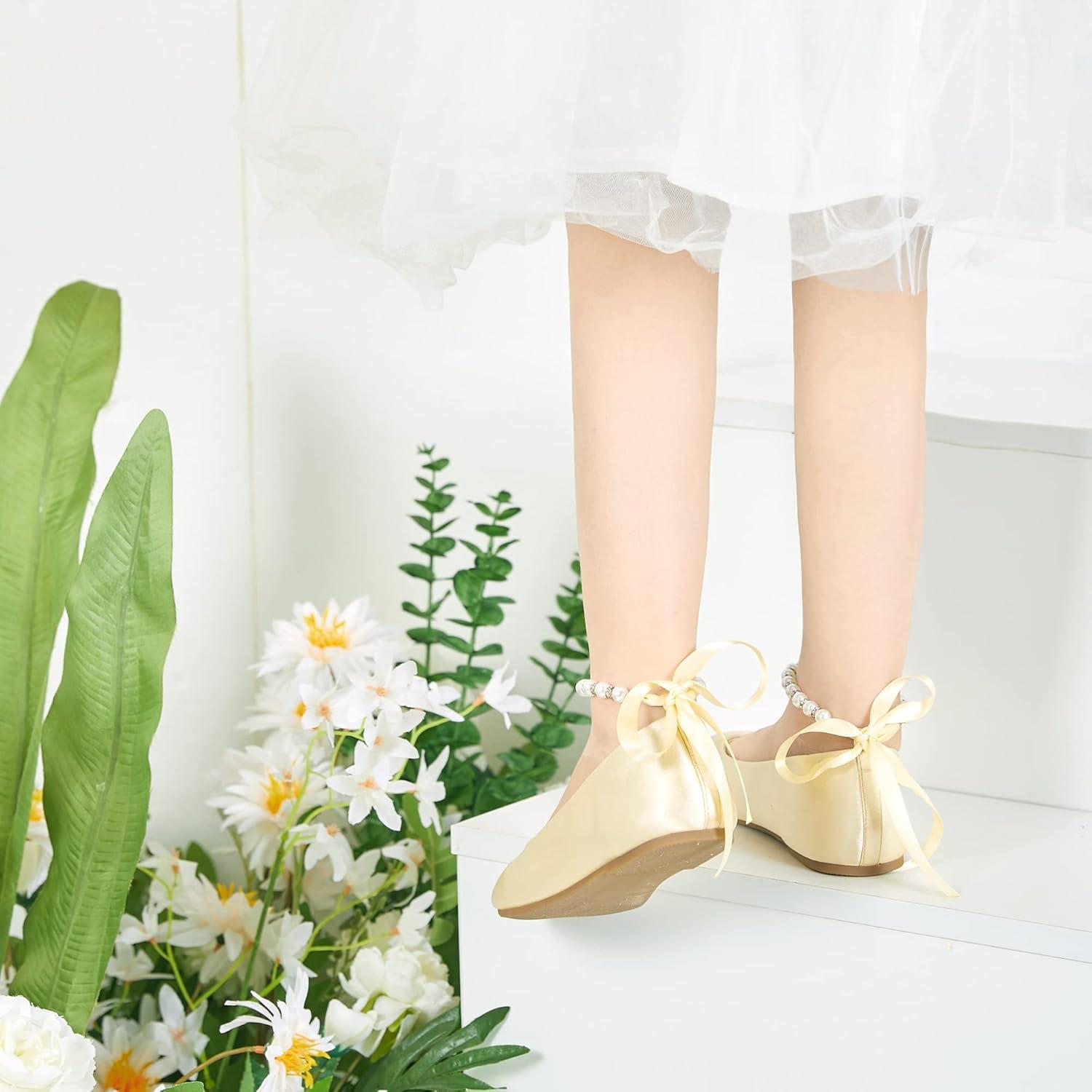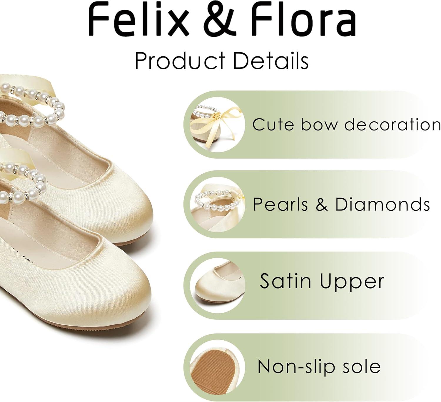 Felix & Flora Girls Toddler Little Ballet Shoes – Flower Girls Mary Jane Flats Dress Shoes Party Wedding(B836-champagne Gold)
