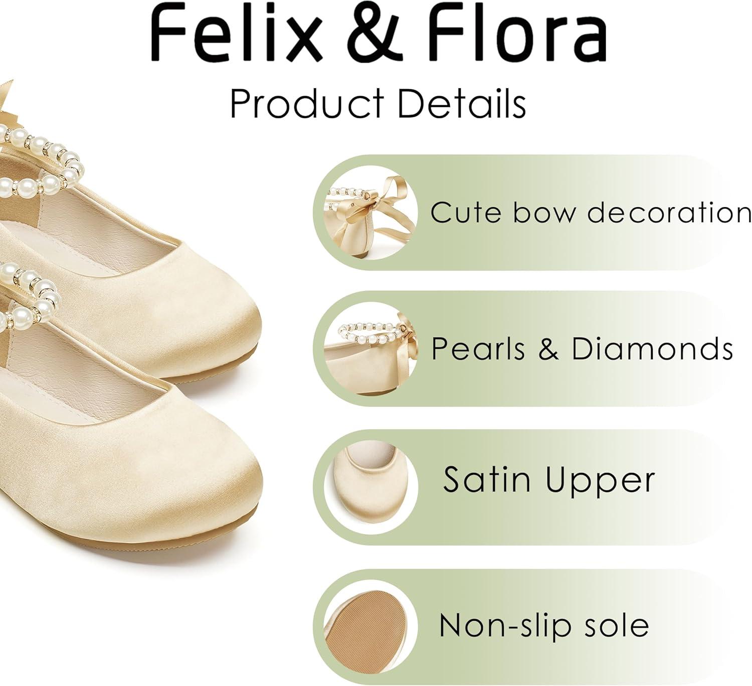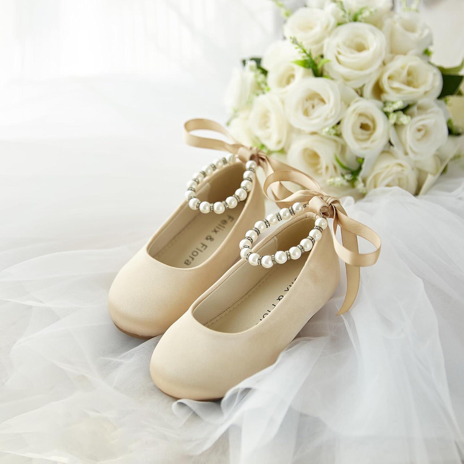 Felix & Flora Girls Toddler Little Ballet Shoes – Flower Girls Mary Jane Flats Dress Shoes Party Wedding(B836-champagne)