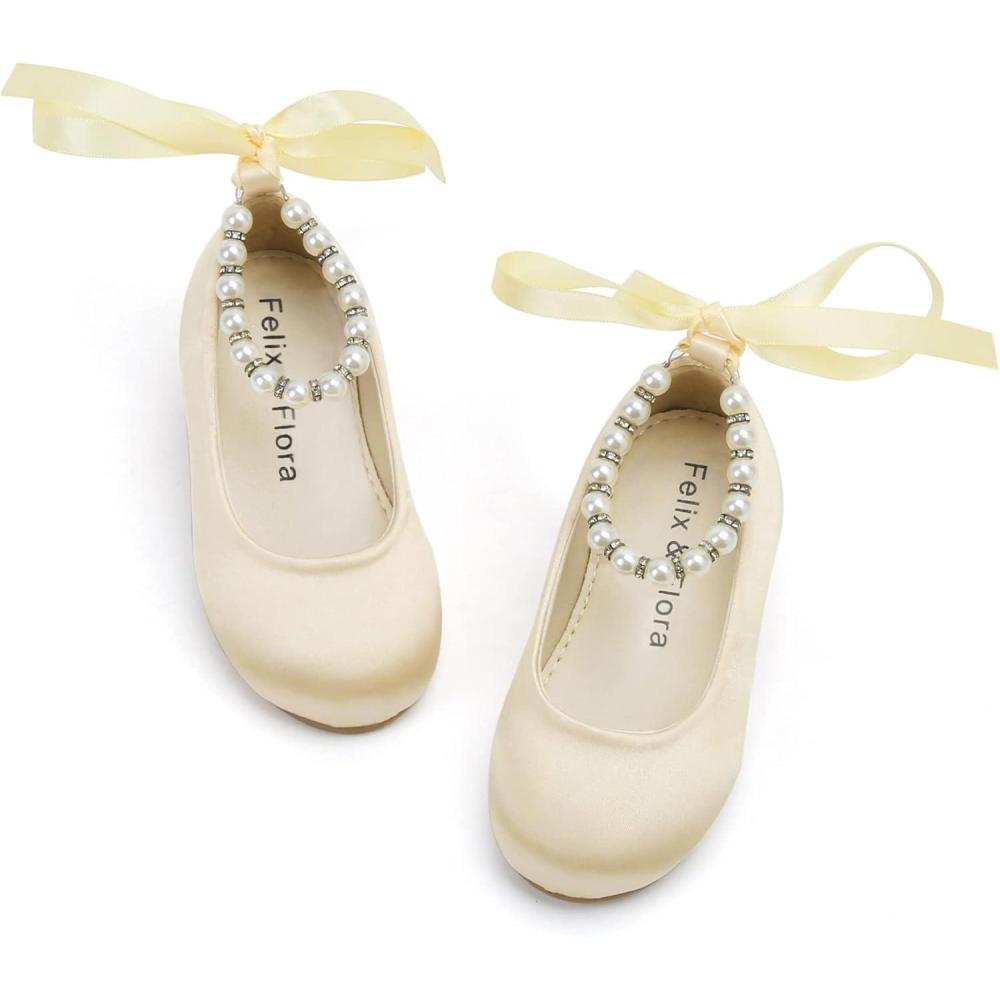 Felix & Flora Girls Toddler Little Ballet Shoes – Flower Girls Mary Jane Flats Dress Shoes Party Wedding(B836-gold)