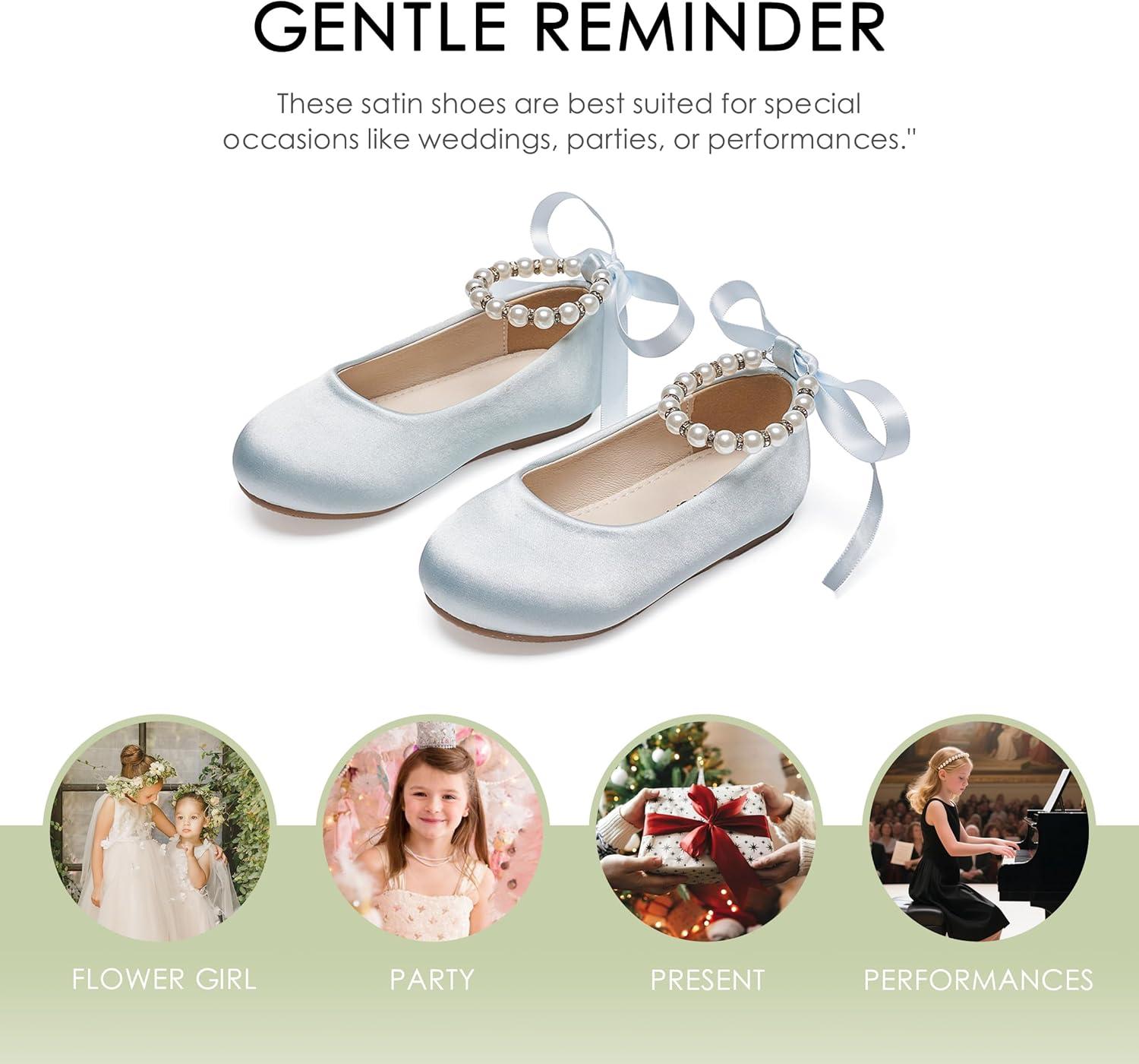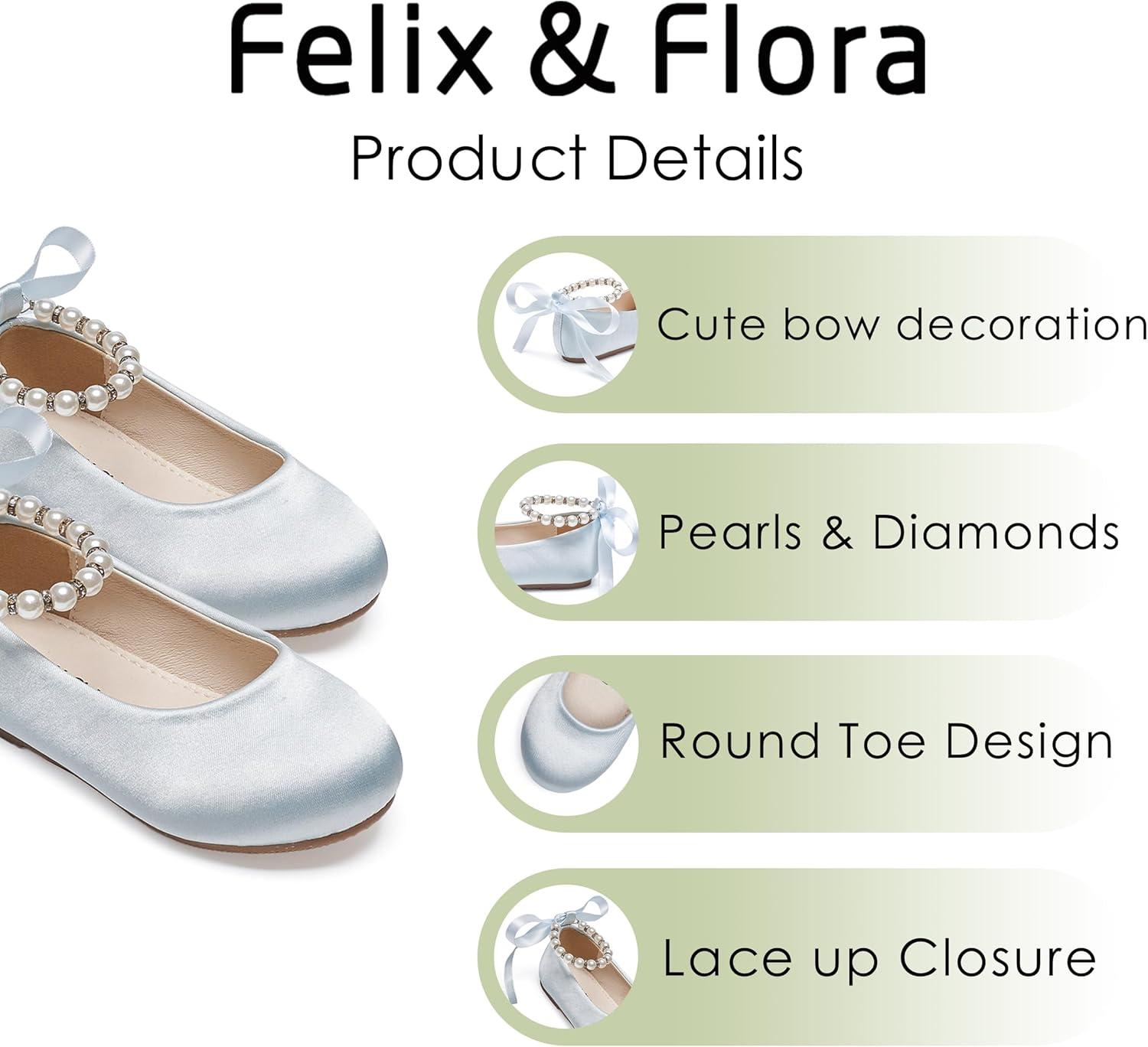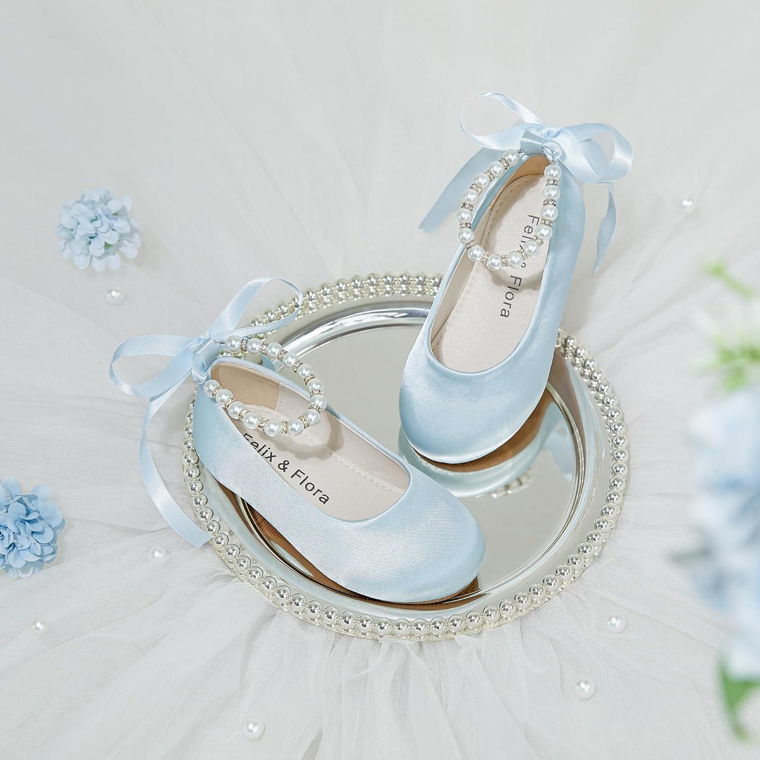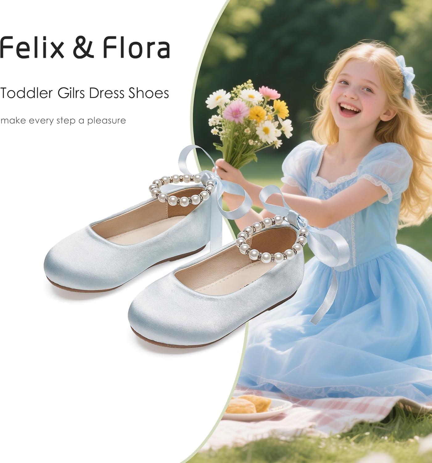 Felix & Flora Girls Toddler Little Ballet Shoes – Flower Girls Mary Jane Flats Dress Shoes Party Wedding(B836-light Blue)