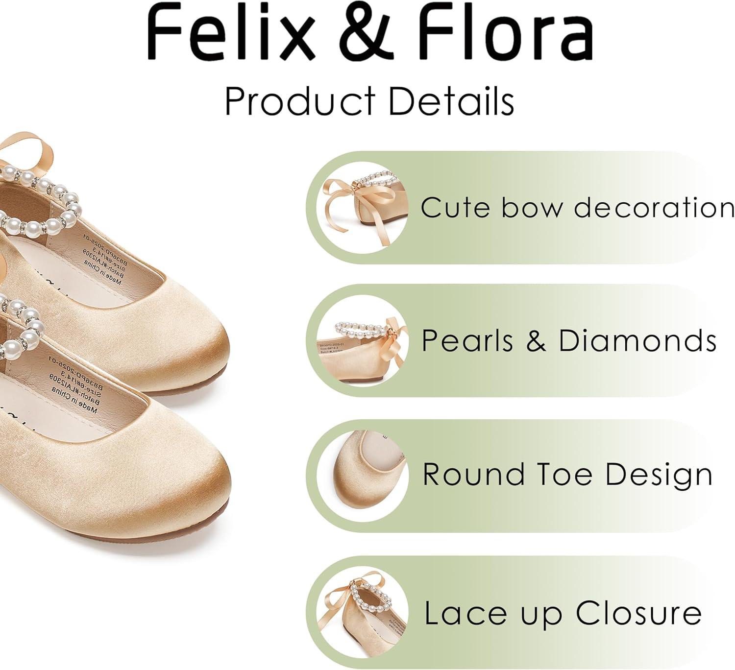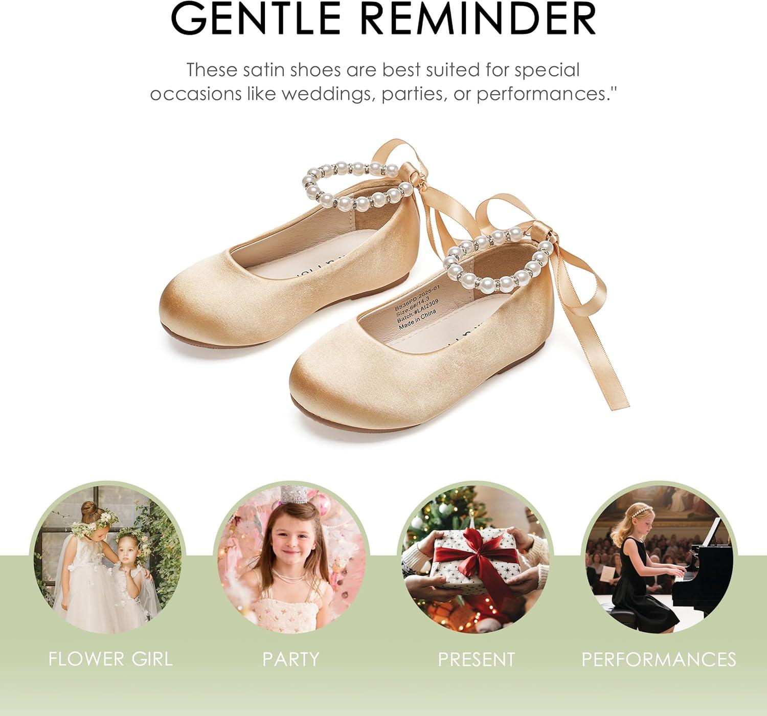 Felix & Flora Girls Toddler Little Ballet Shoes – Flower Girls Mary Jane Flats Dress Shoes Party Wedding(B836-light Gold)