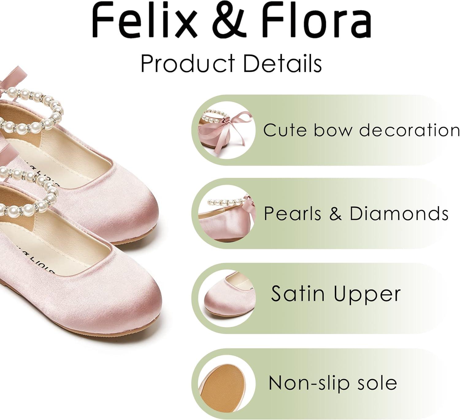 Felix & Flora Girls Toddler Little Ballet Shoes – Flower Girls Mary Jane Flats Dress Shoes Party Wedding(B836-pink)