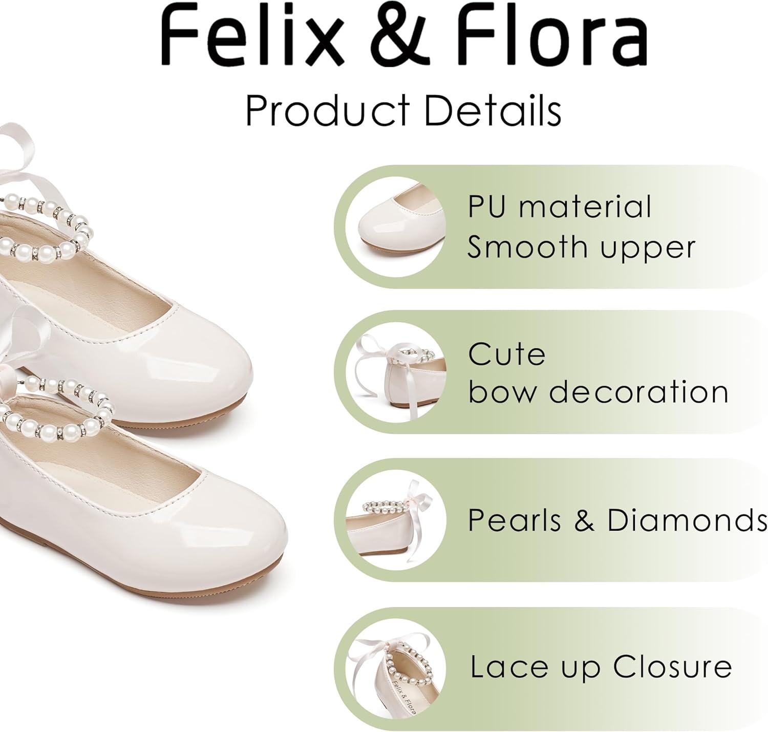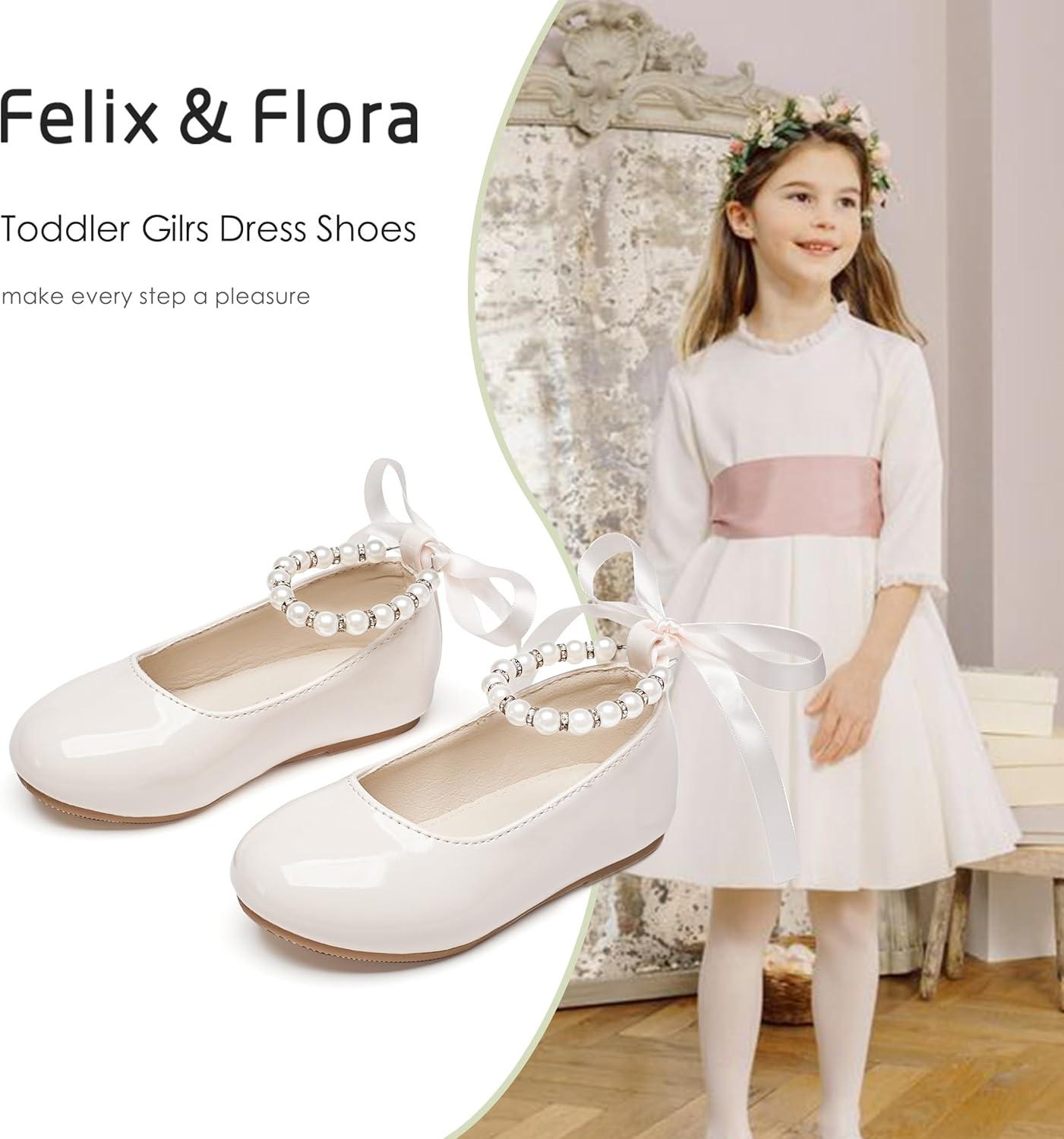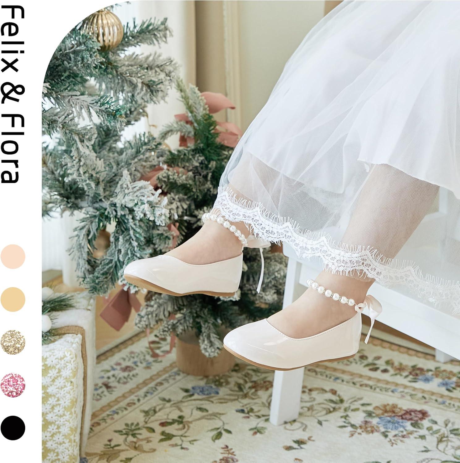 Felix & Flora Girls Toddler Little Ballet Shoes – Flower Girls Mary Jane Flats Dress Shoes Party Wedding(B836-pl Beige)