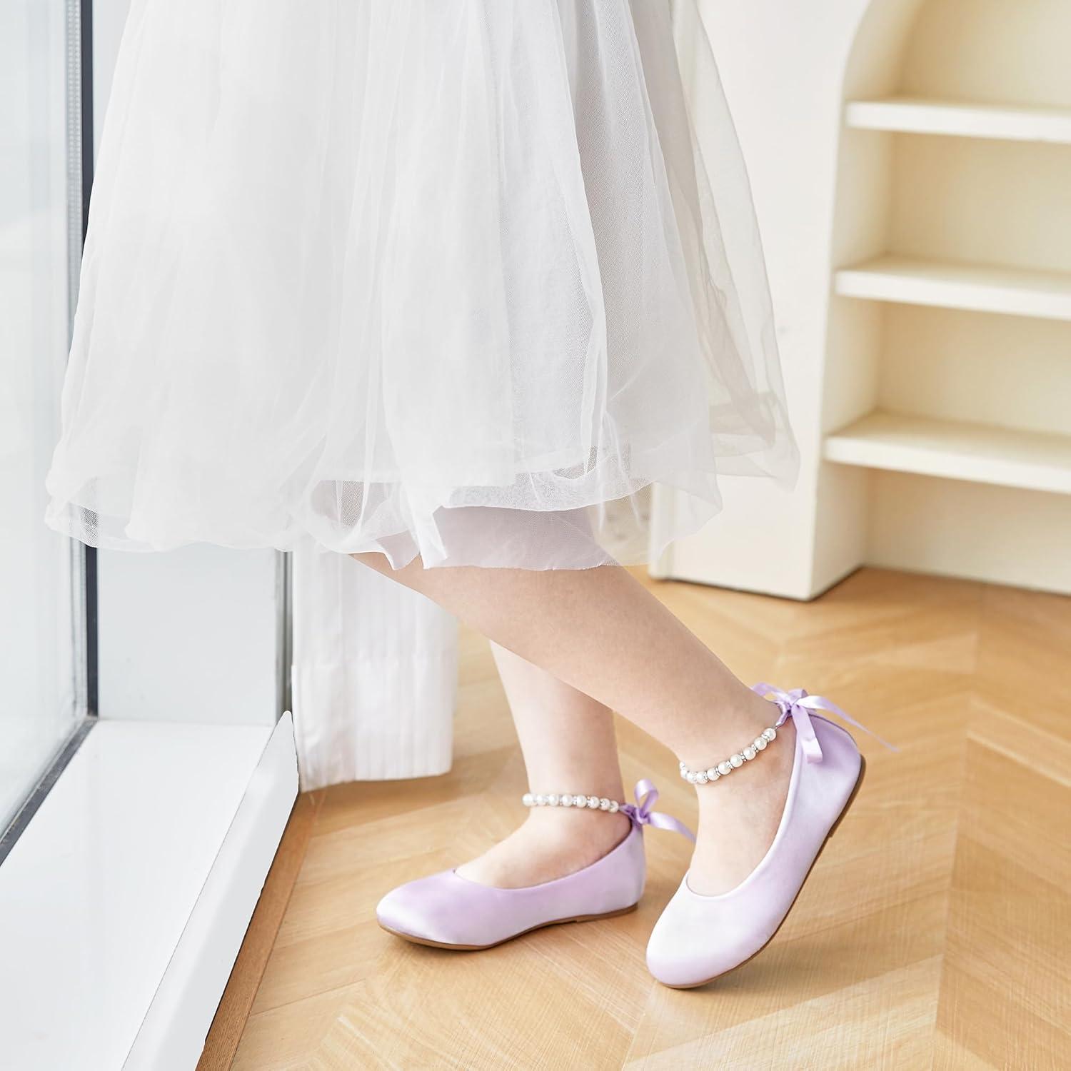 Felix & Flora Girls Toddler Little Ballet Shoes – Flower Girls Mary Jane Flats Dress Shoes Party Wedding(B836-purple)