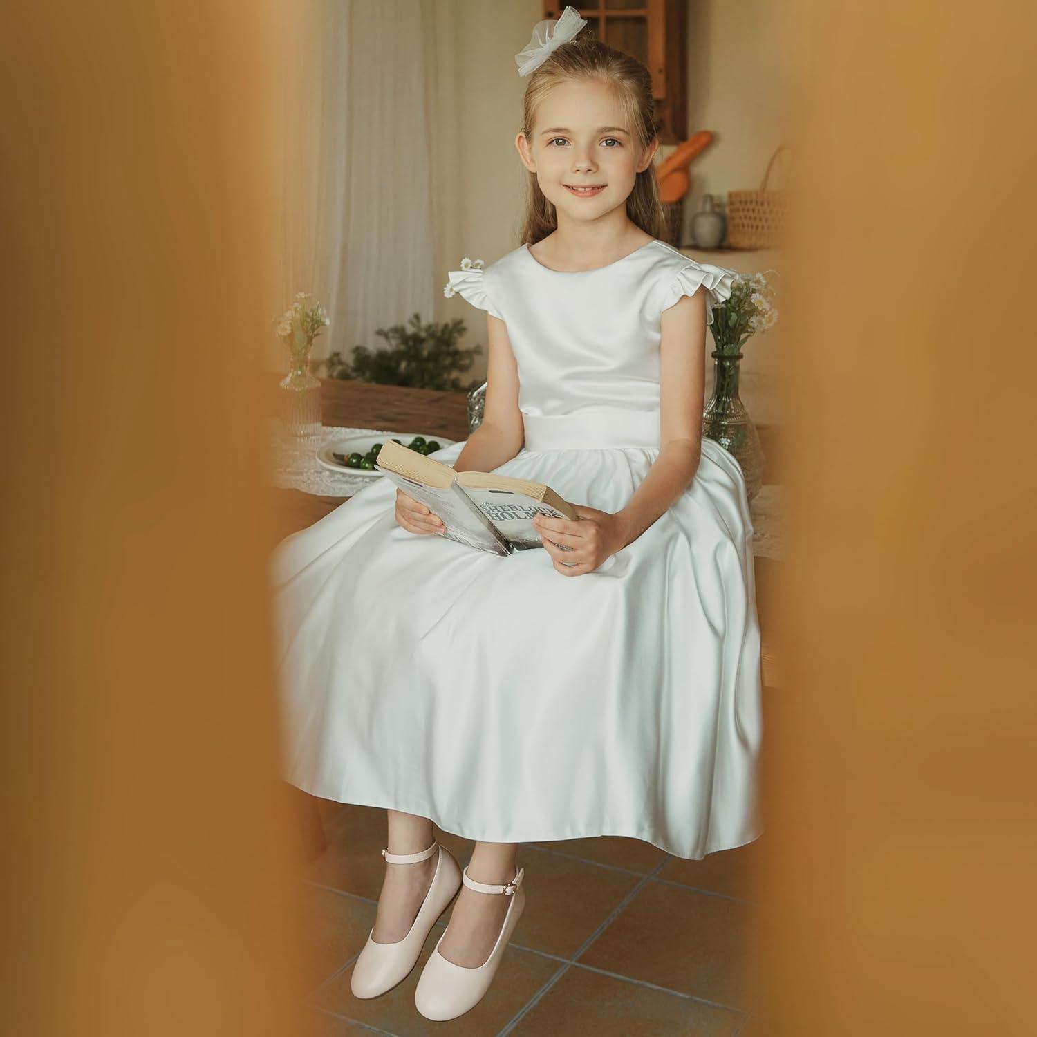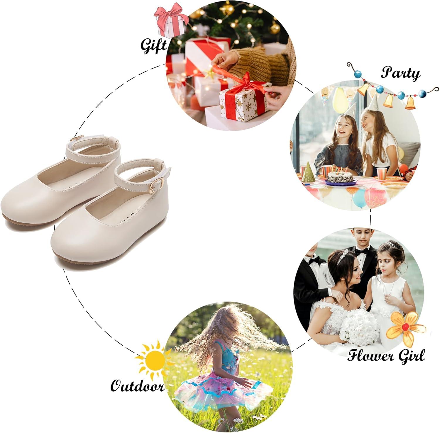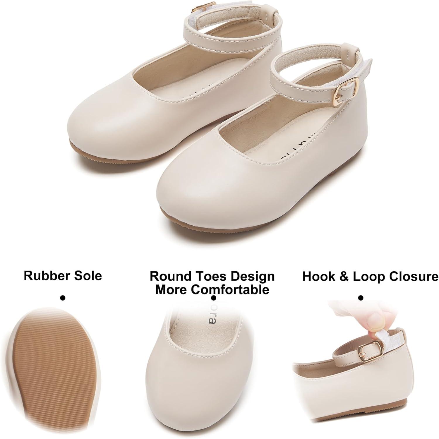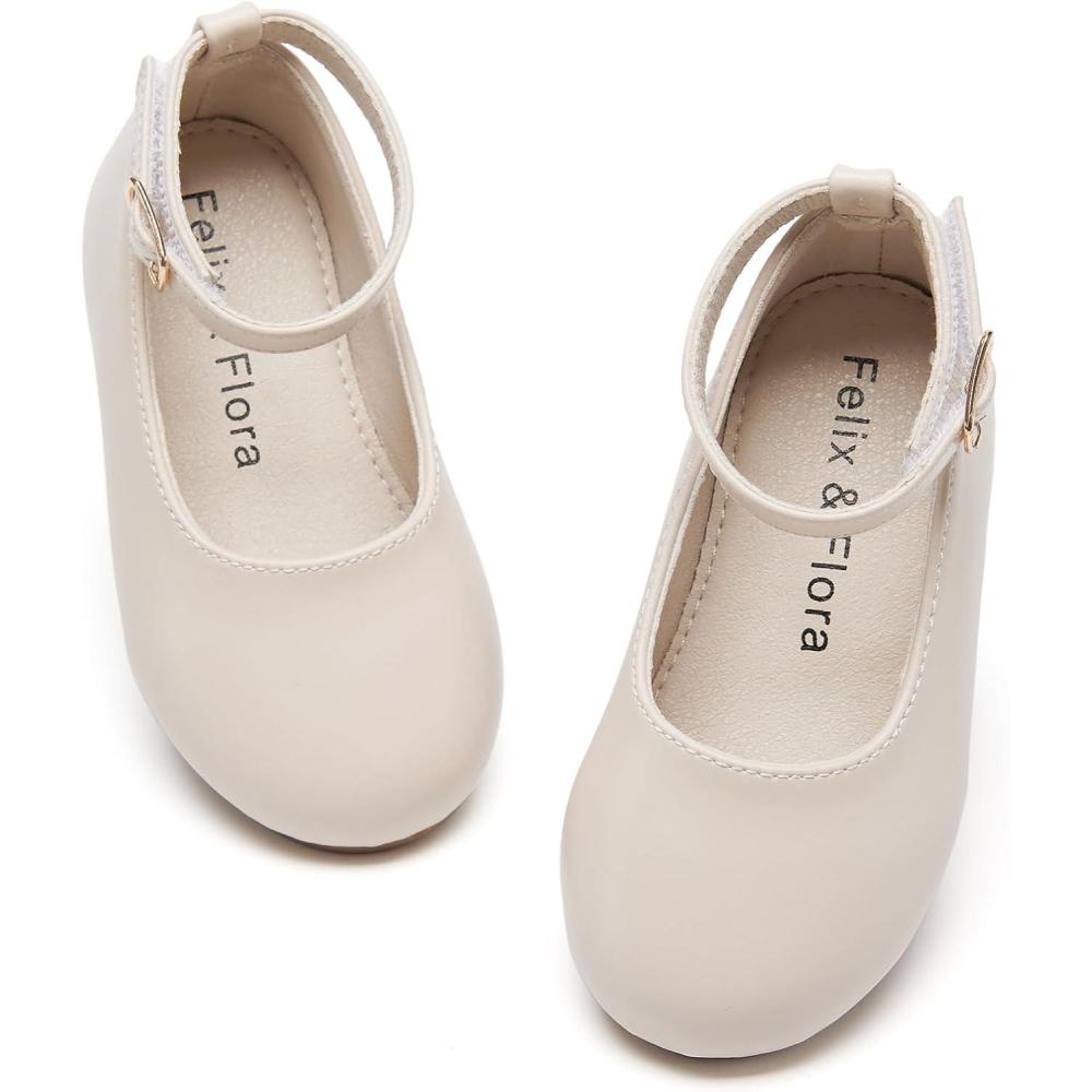 Felix & Flora Girls Toddler Little Ballet Shoes – Flower Girls Mary Jane Flats Dress Shoes Party Wedding(B842-fl Beige)
