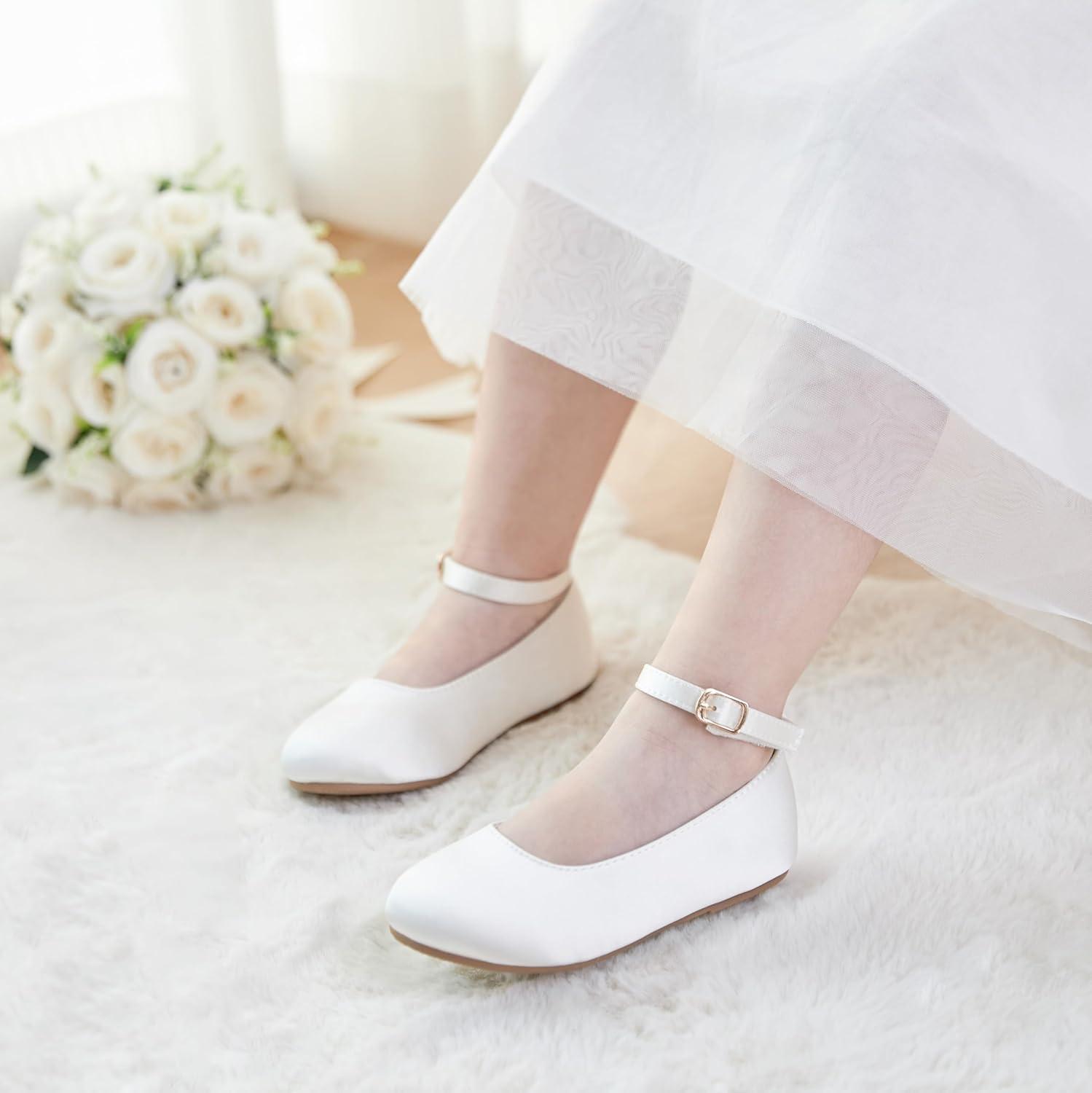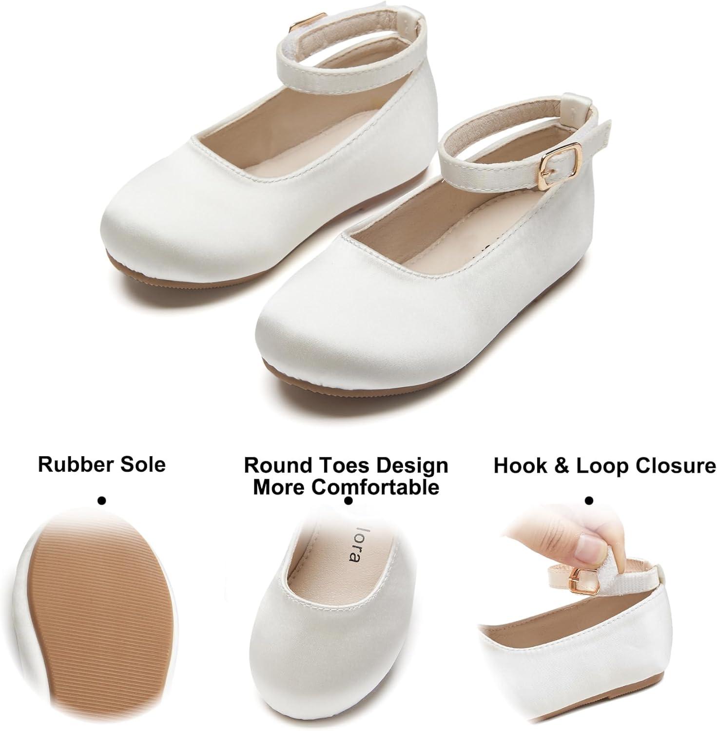 Felix & Flora Girls Toddler Little Ballet Shoes – Flower Girls Mary Jane Flats Dress Shoes Party Wedding(B842-s Ivory White)