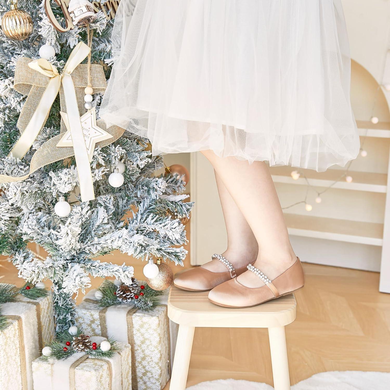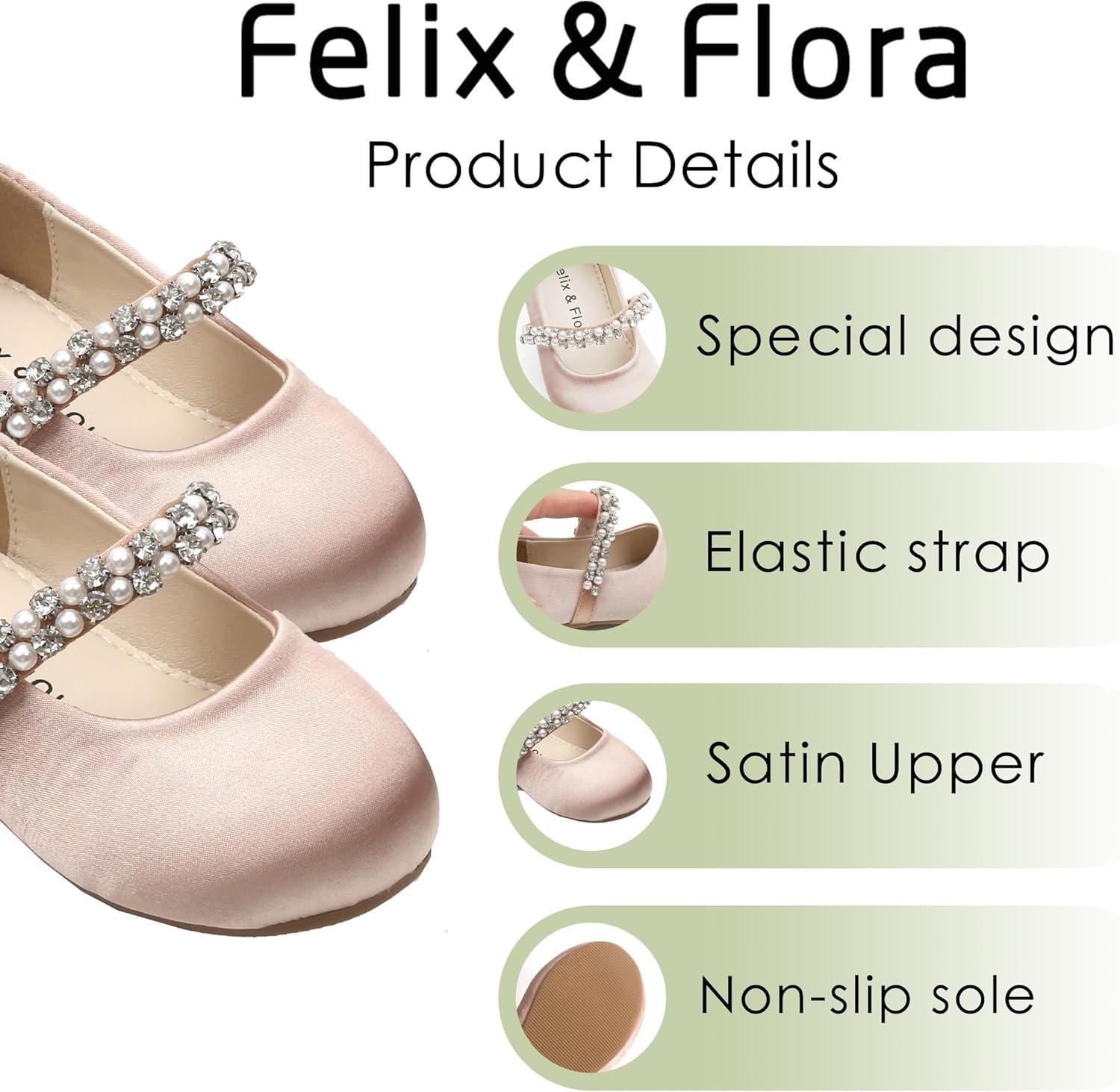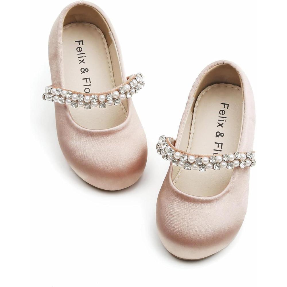 Felix & Flora Girls Toddler Little Ballet Shoes – Flower Girls Mary Jane Flats Dress Shoes Party Wedding(B862-dark Nude)