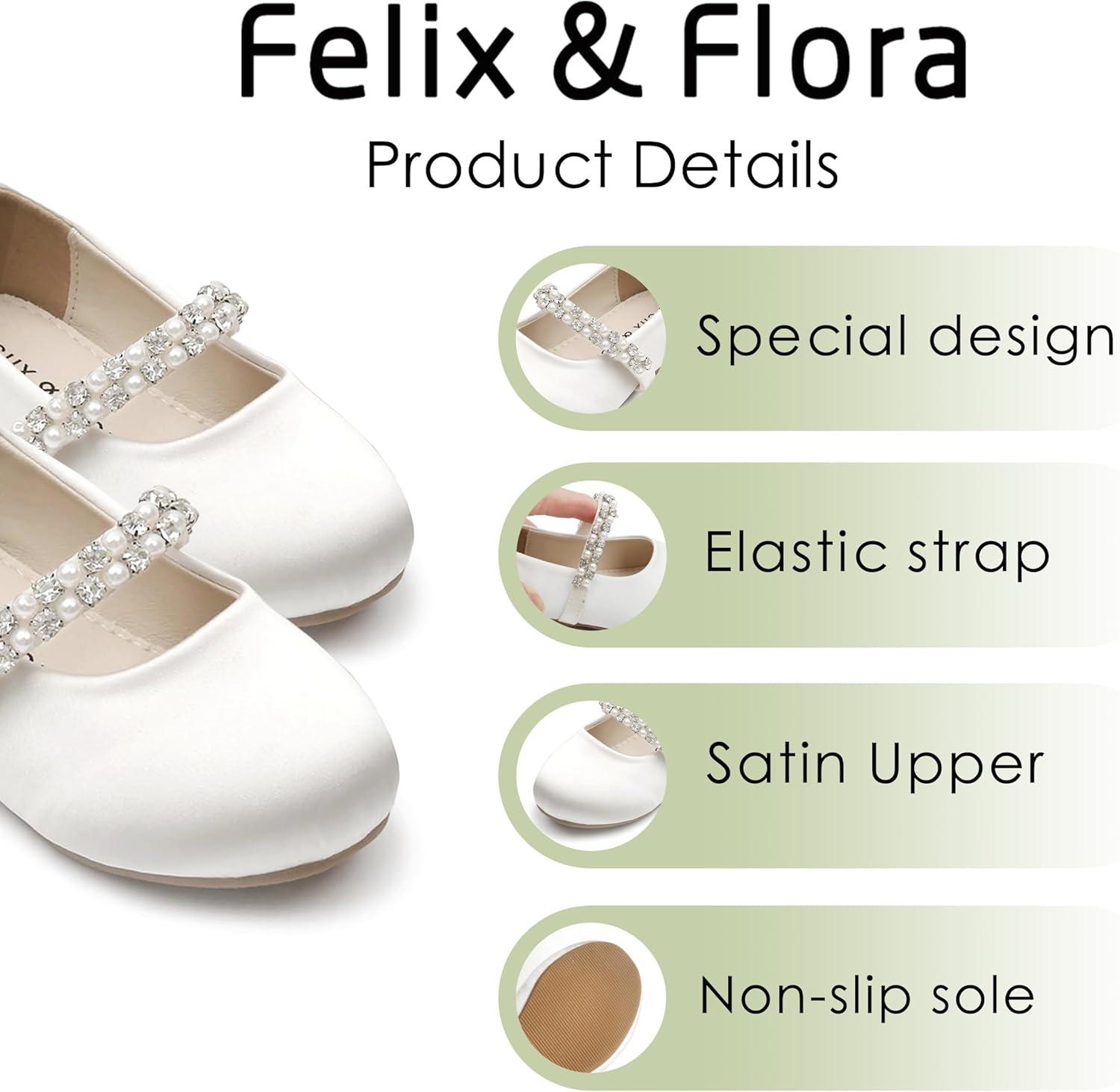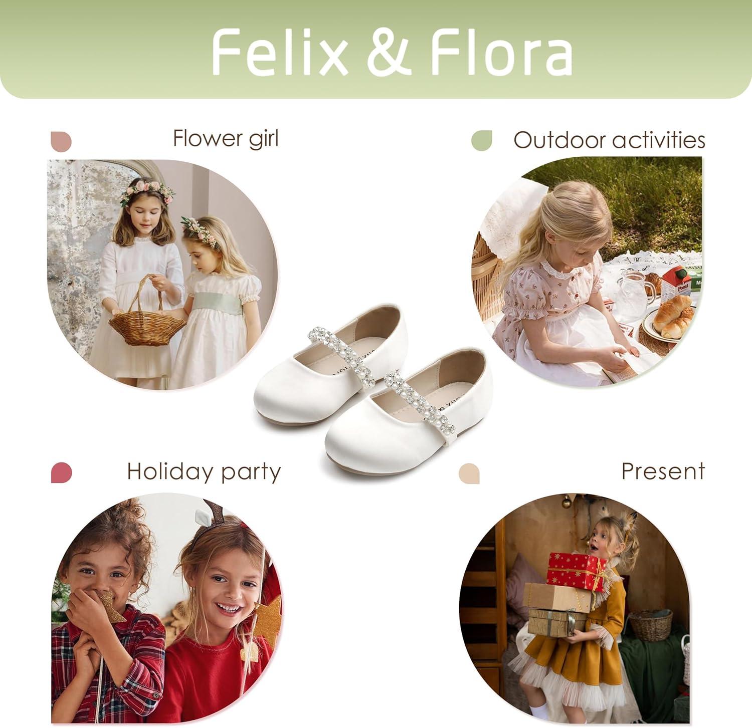 Felix & Flora Girls Toddler Little Ballet Shoes – Flower Girls Mary Jane Flats Dress Shoes Party Wedding(B862-ivory)