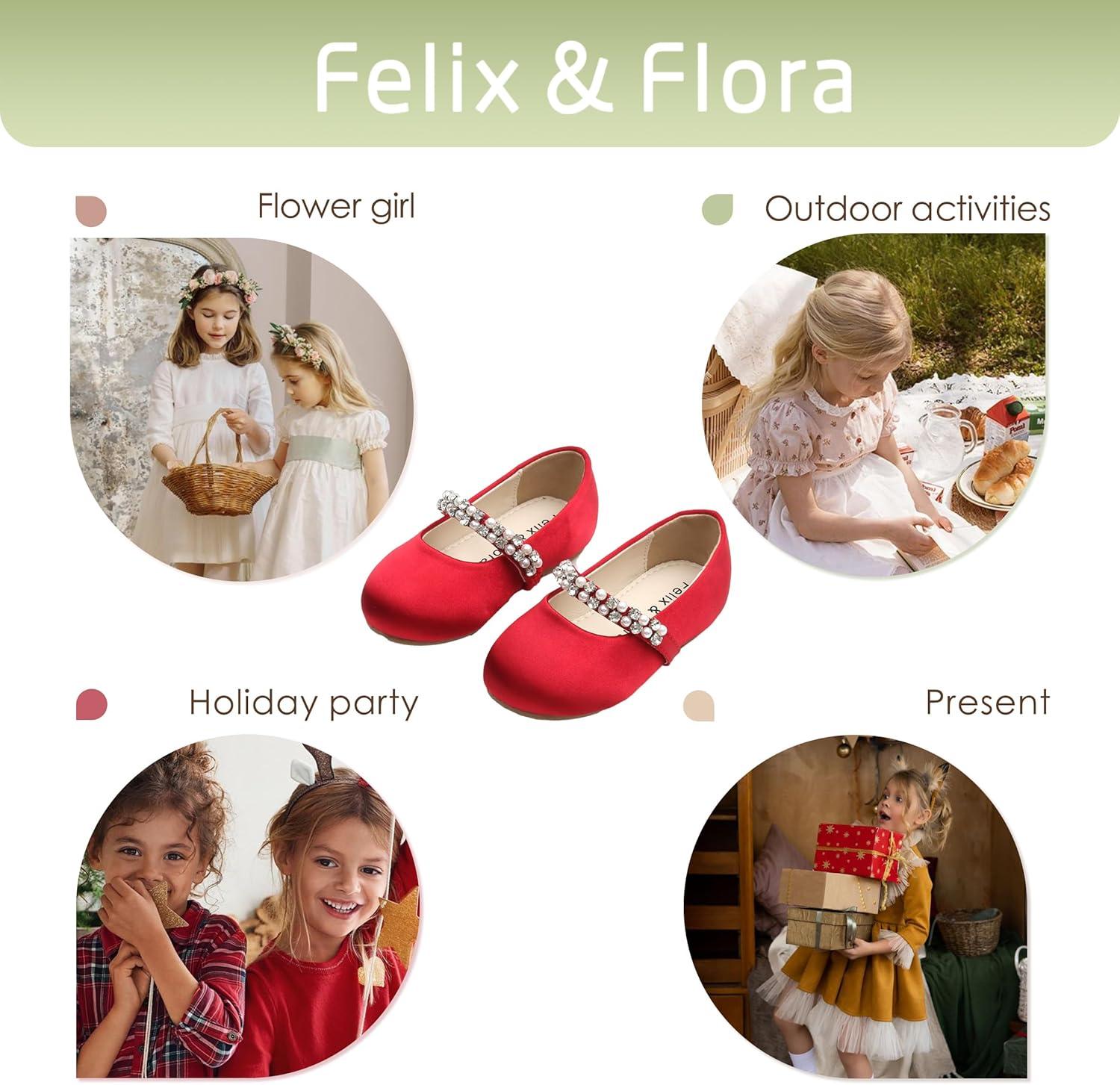 Felix & Flora Girls Toddler Little Ballet Shoes – Flower Girls Mary Jane Flats Dress Shoes Party Wedding(B862-red)