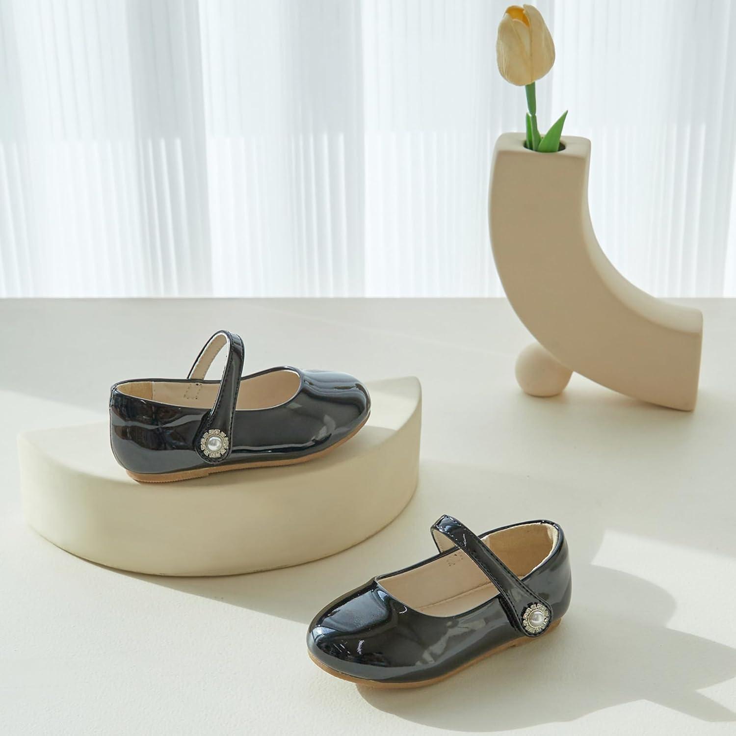 Felix & Flora Girls Toddler Little Ballet Shoes – Flower Girls Mary Jane Flats Dress Shoes Party Wedding(B883-black)