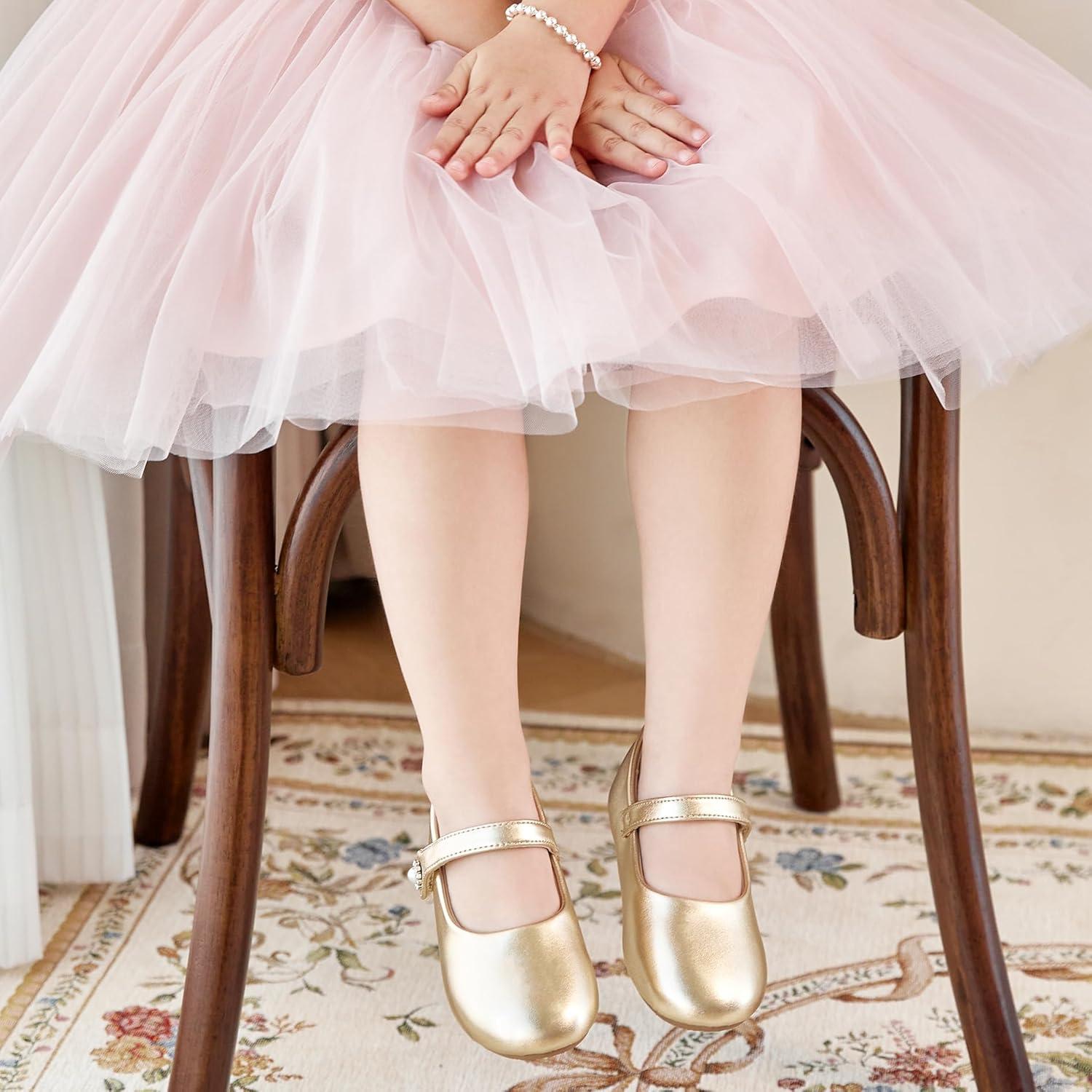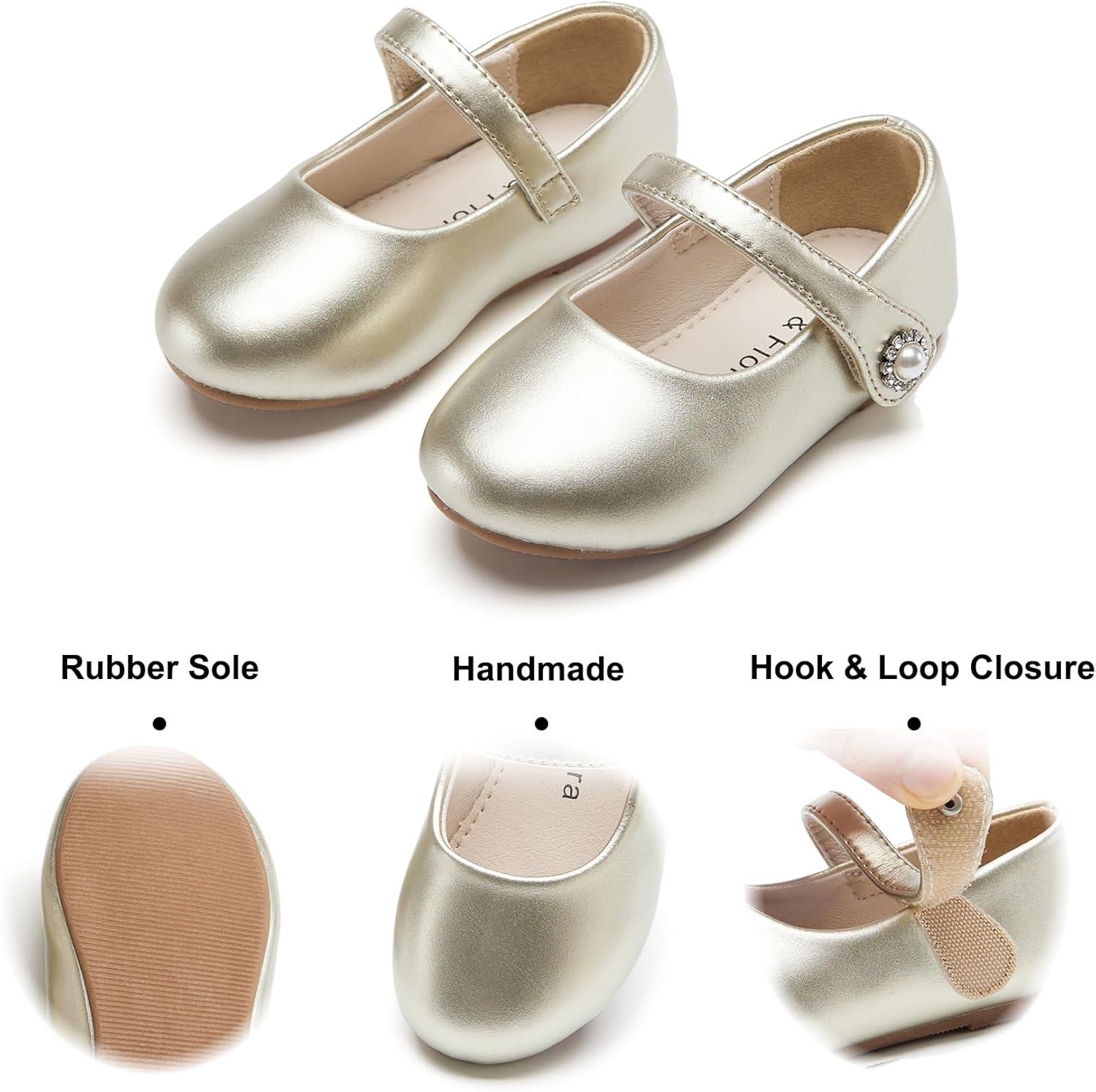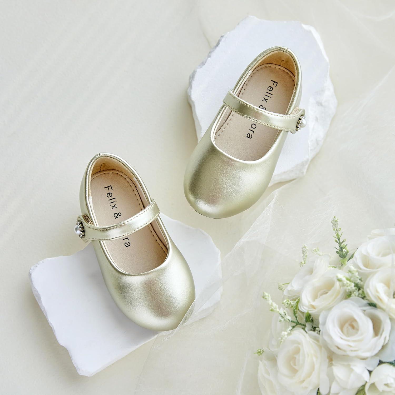 Felix & Flora Girls Toddler Little Ballet Shoes – Flower Girls Mary Jane Flats Dress Shoes Party Wedding(B883-fl Gold)