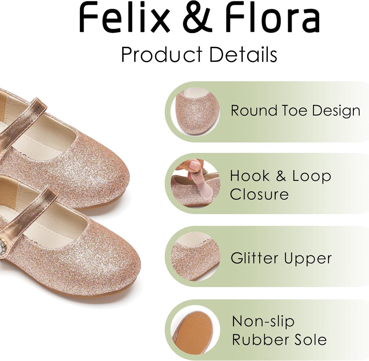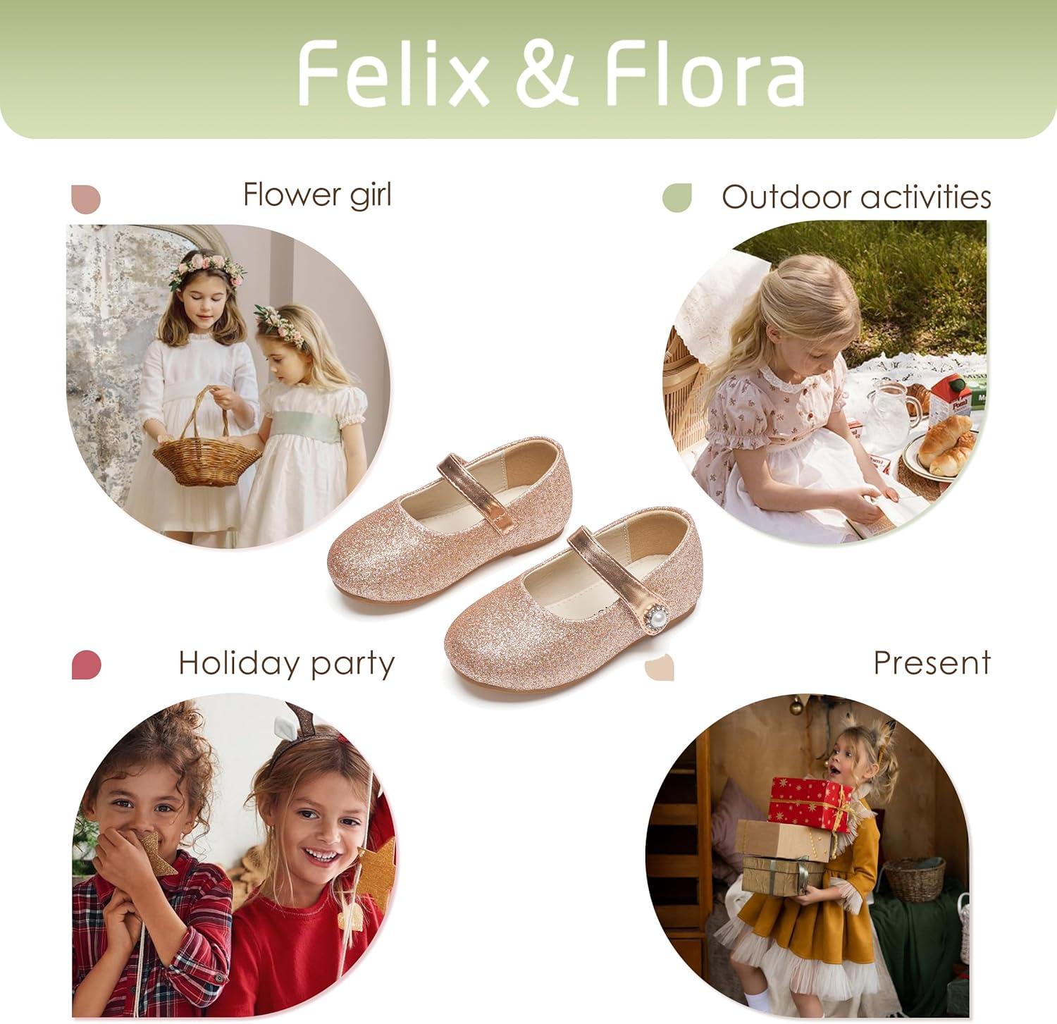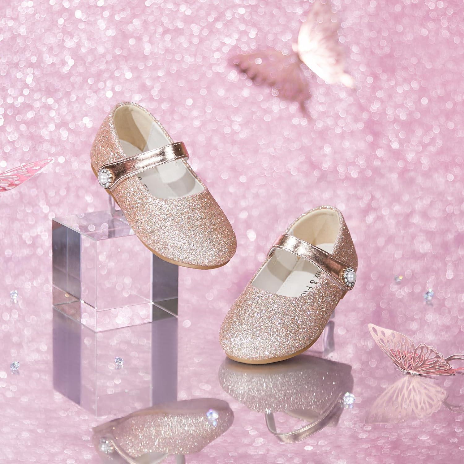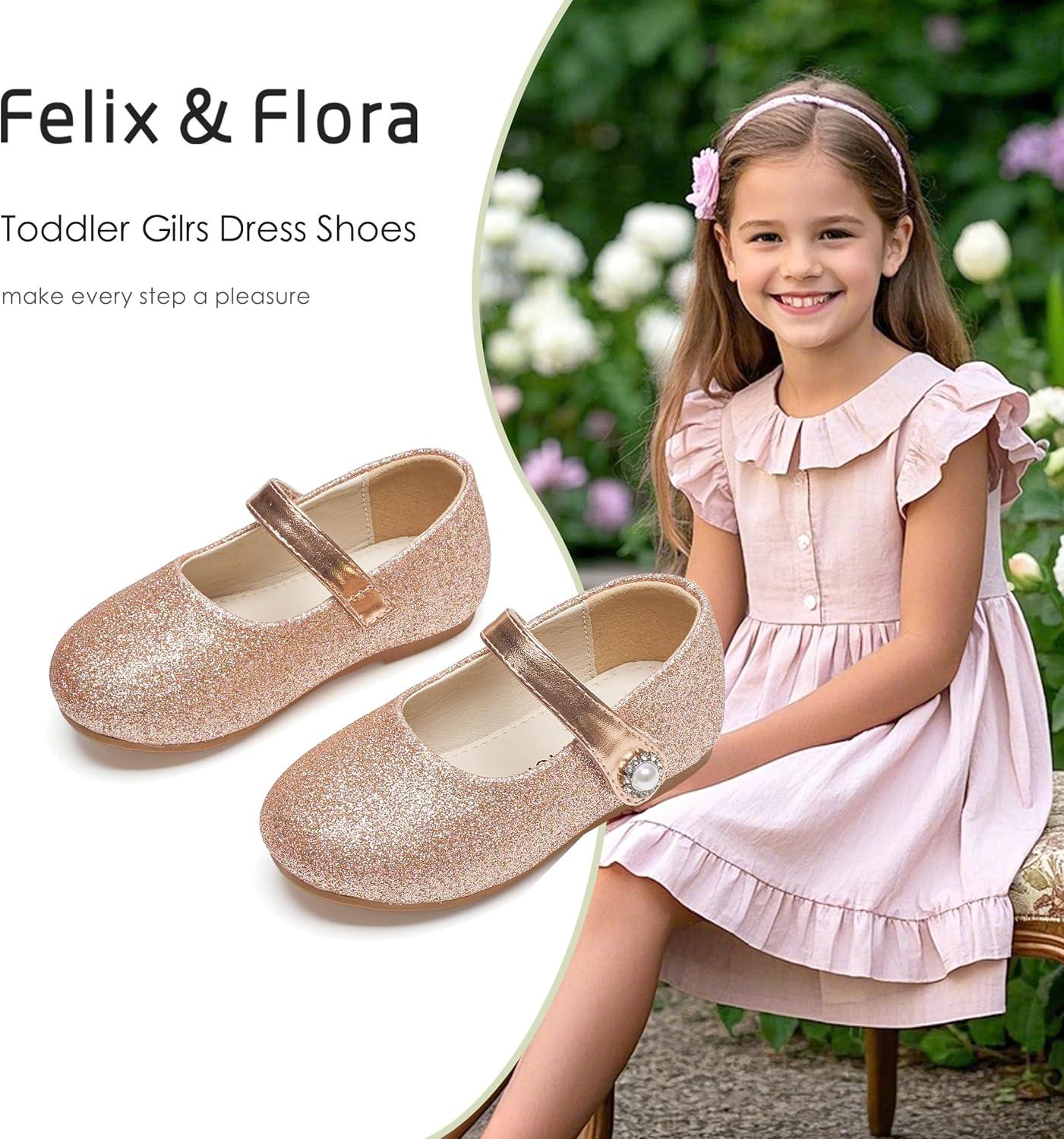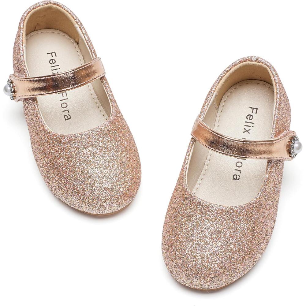 Felix & Flora Girls Toddler Little Ballet Shoes – Flower Girls Mary Jane Flats Dress Shoes Party Wedding(B883-glitter Pink)