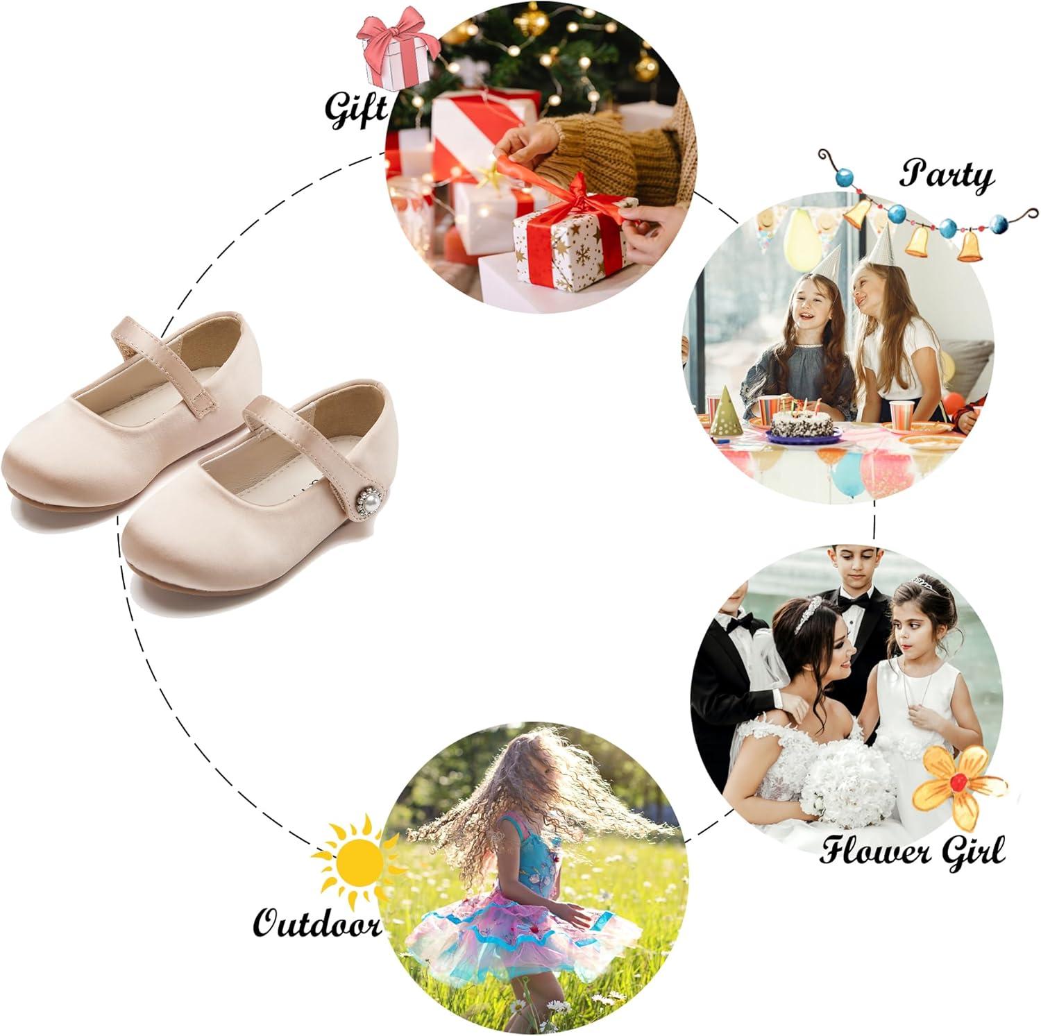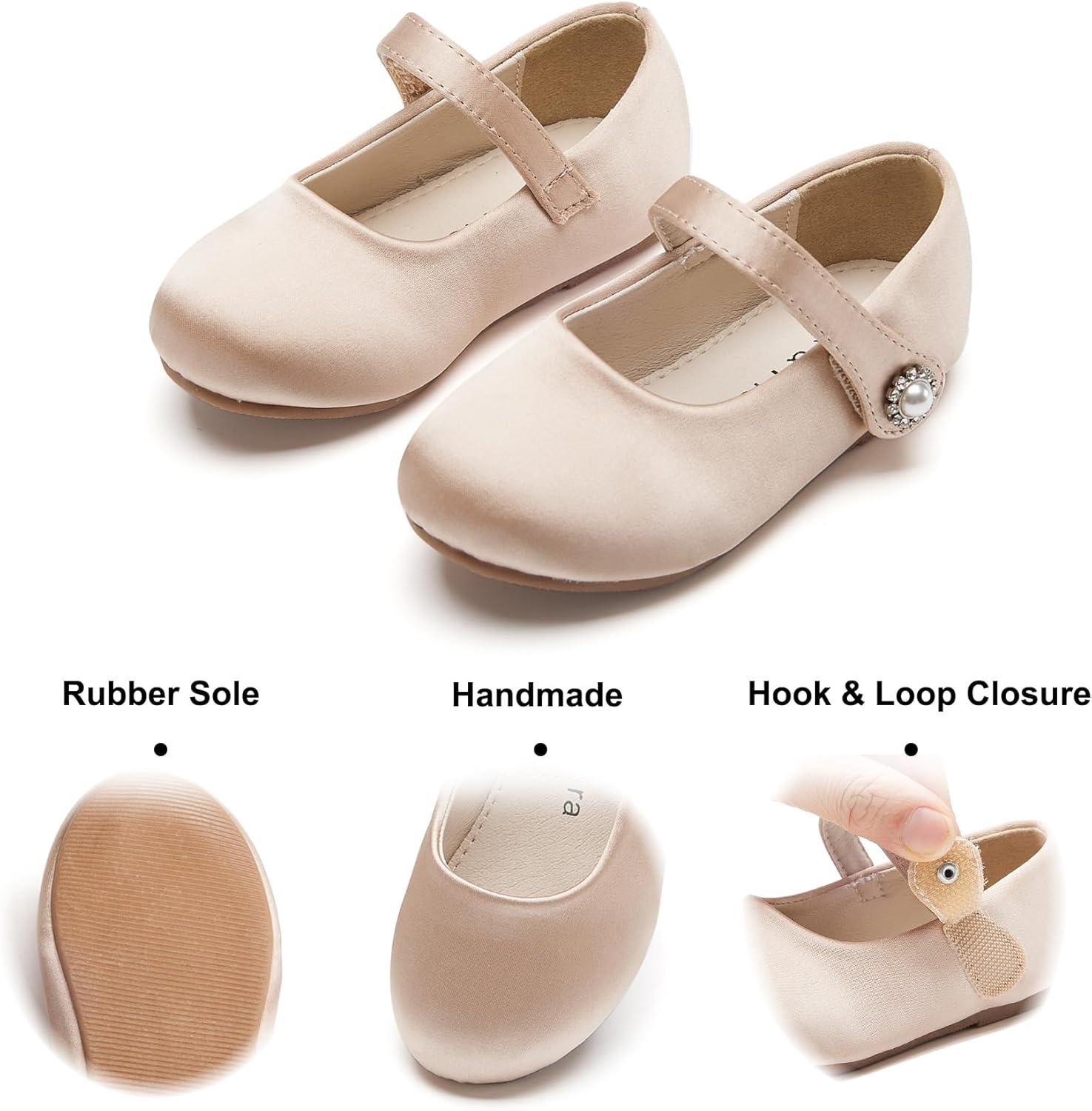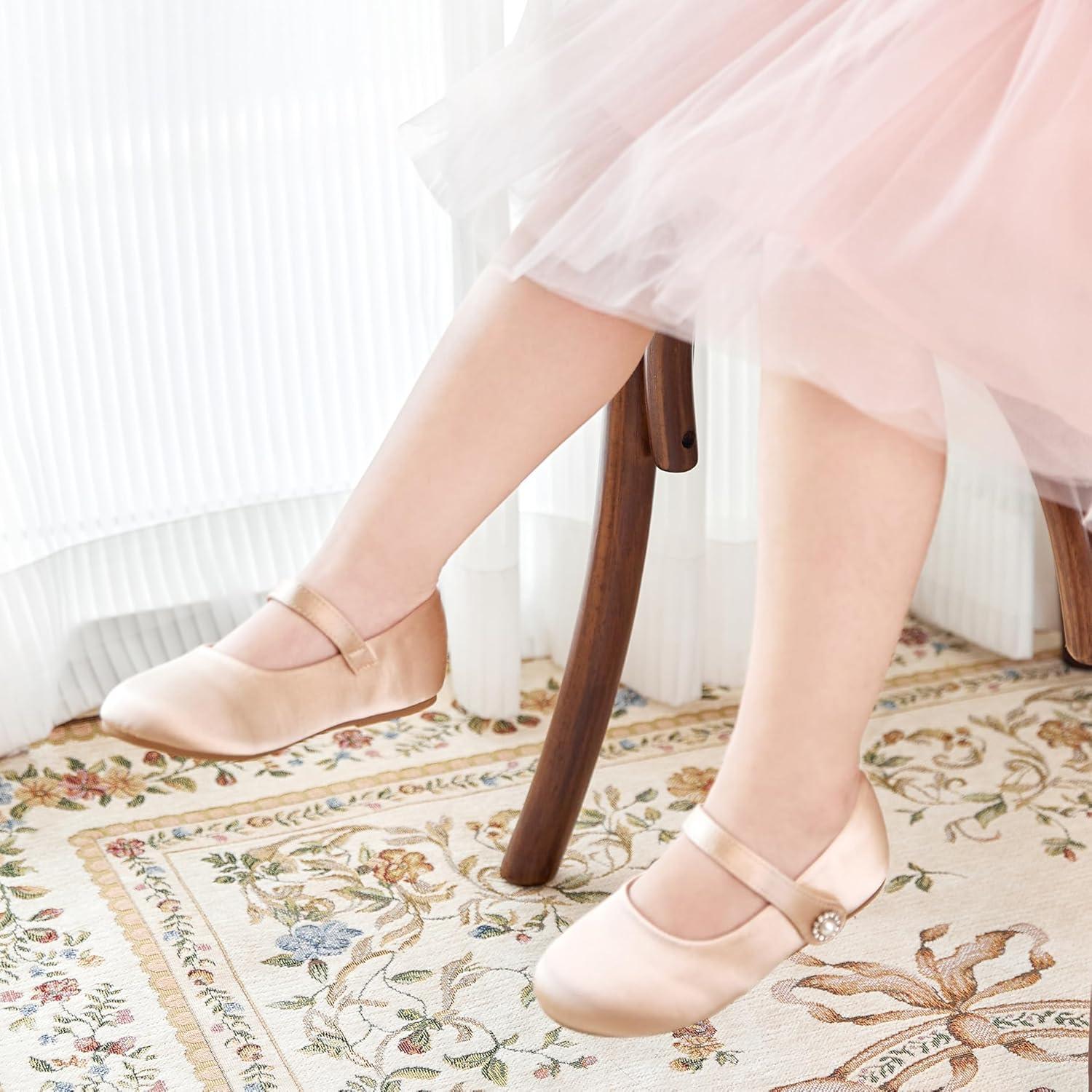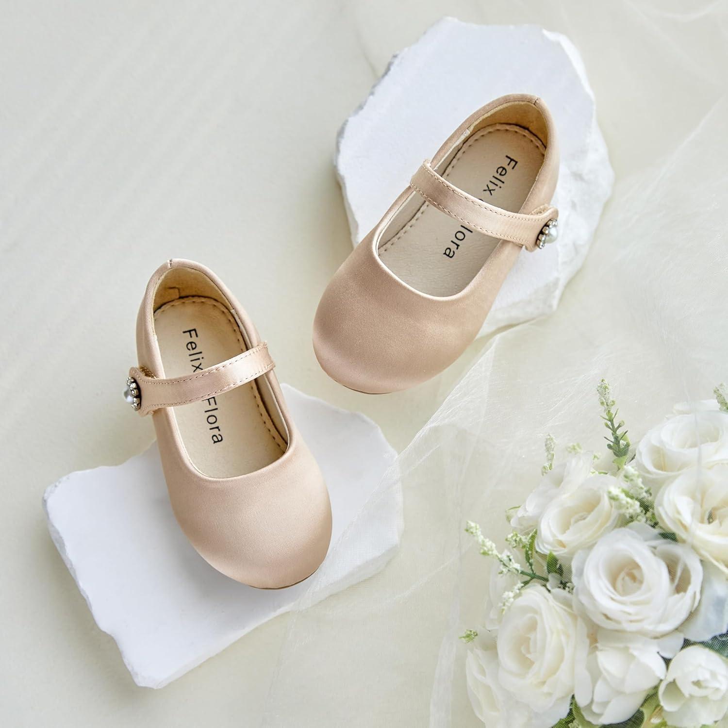 Felix & Flora Girls Toddler Little Ballet Shoes – Flower Girls Mary Jane Flats Dress Shoes Party Wedding(B883-s Dark Nude)