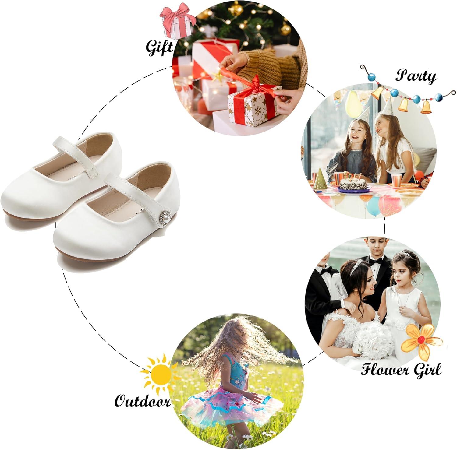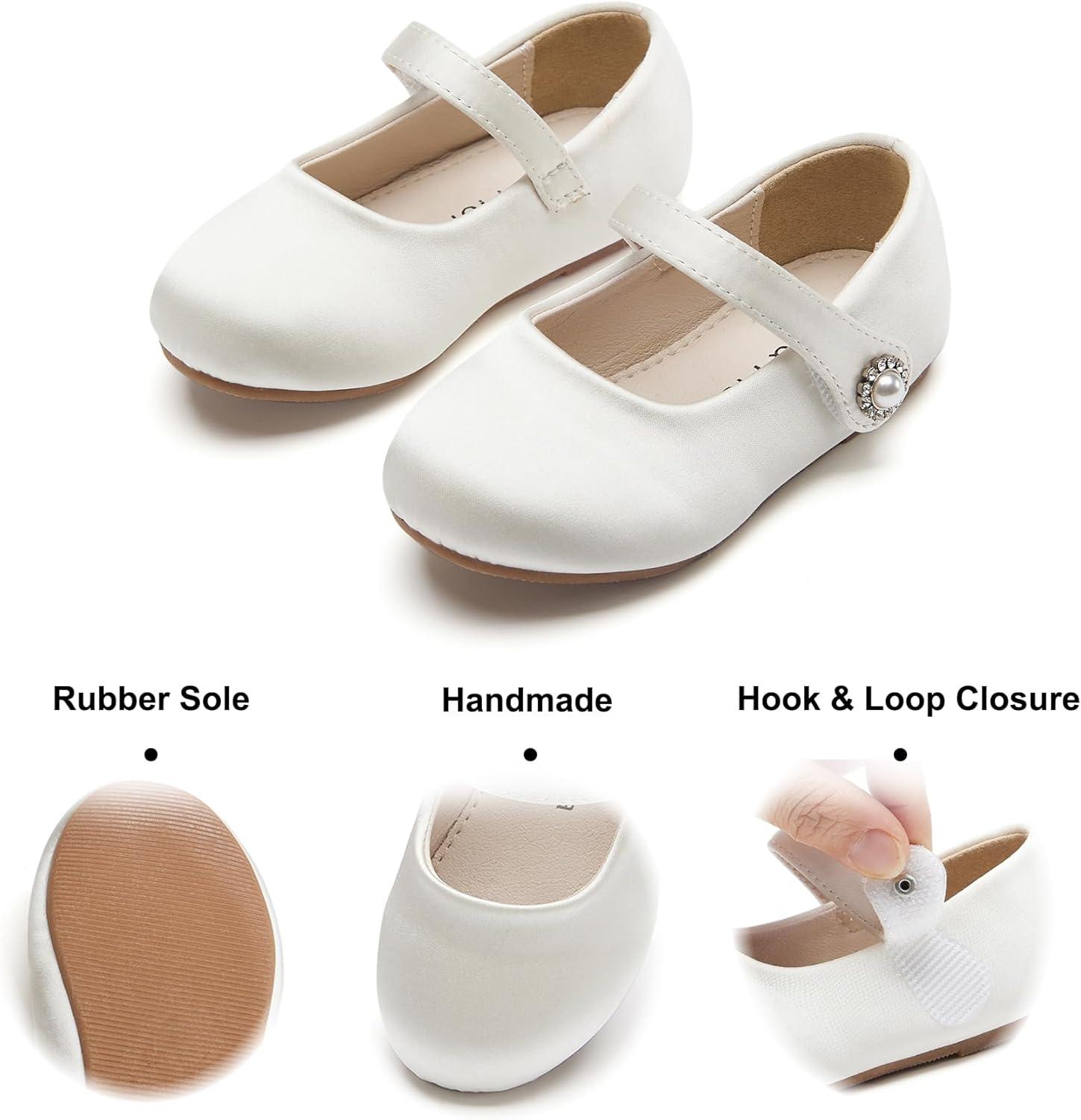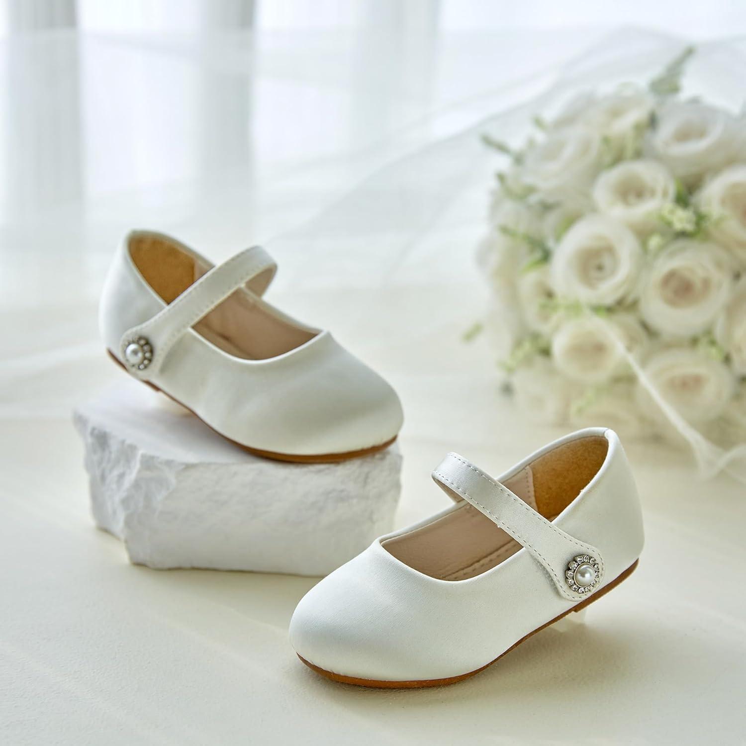 Felix & Flora Girls Toddler Little Ballet Shoes – Flower Girls Mary Jane Flats Dress Shoes Party Wedding(B883-s Ivory White)