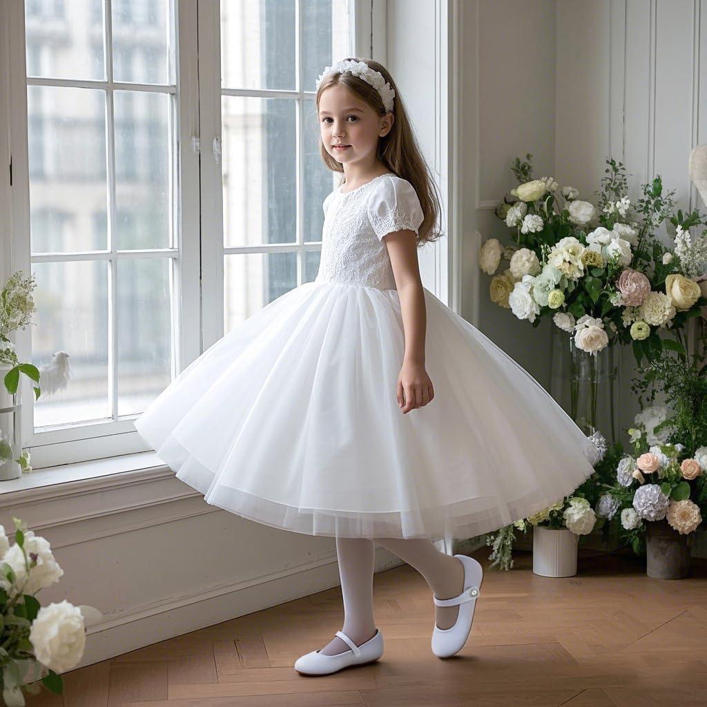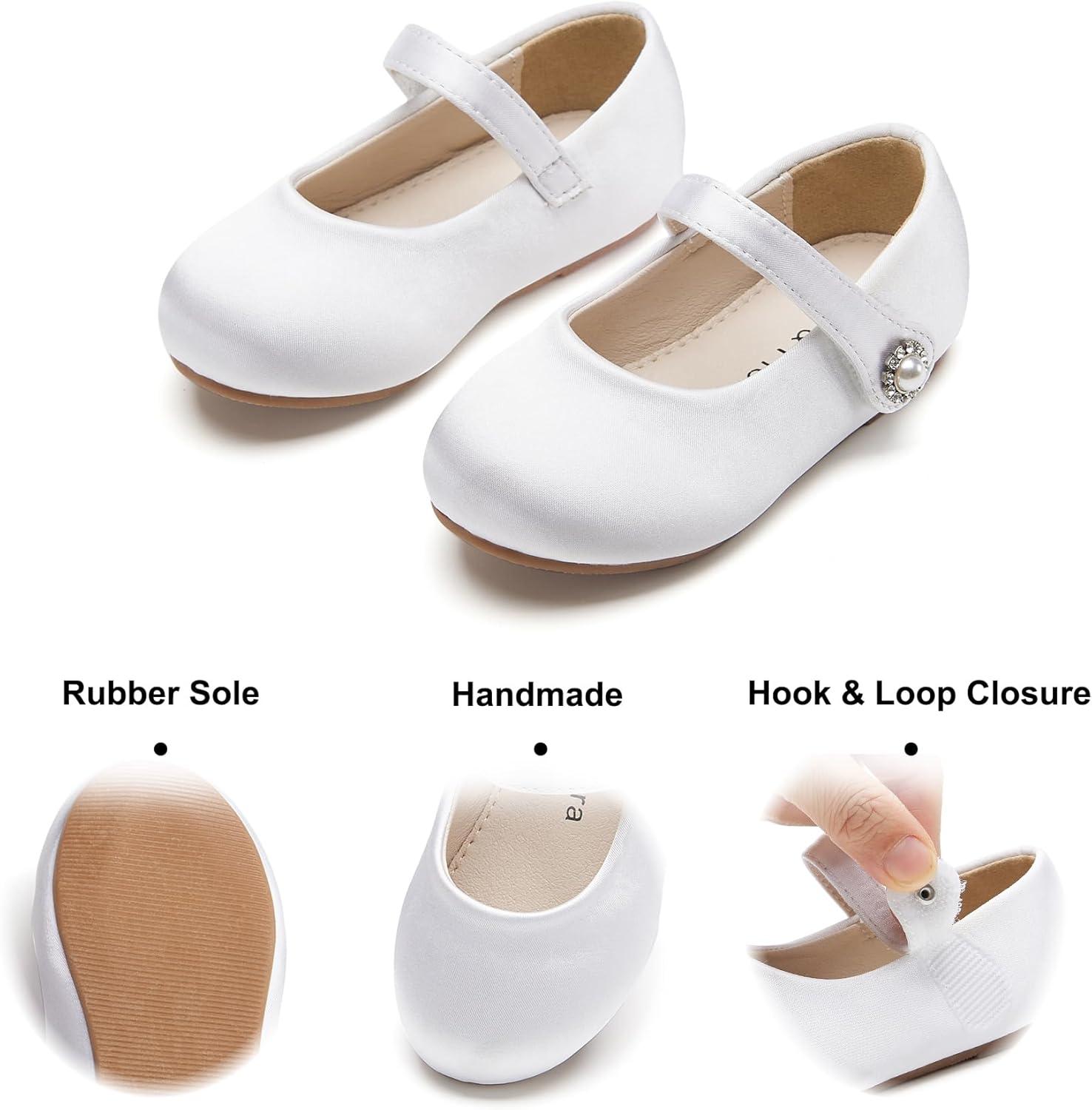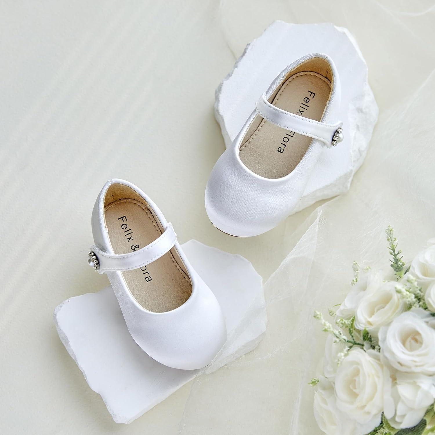 Felix & Flora Girls Toddler Little Ballet Shoes – Flower Girls Mary Jane Flats Dress Shoes Party Wedding(B883-s White)
