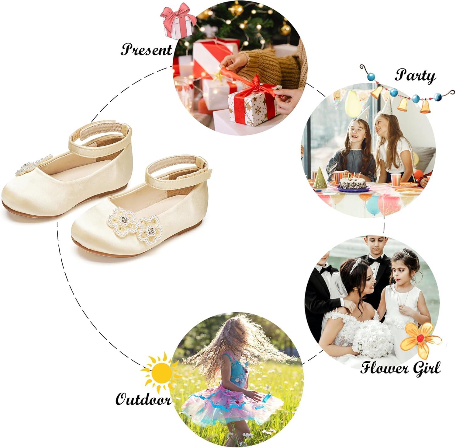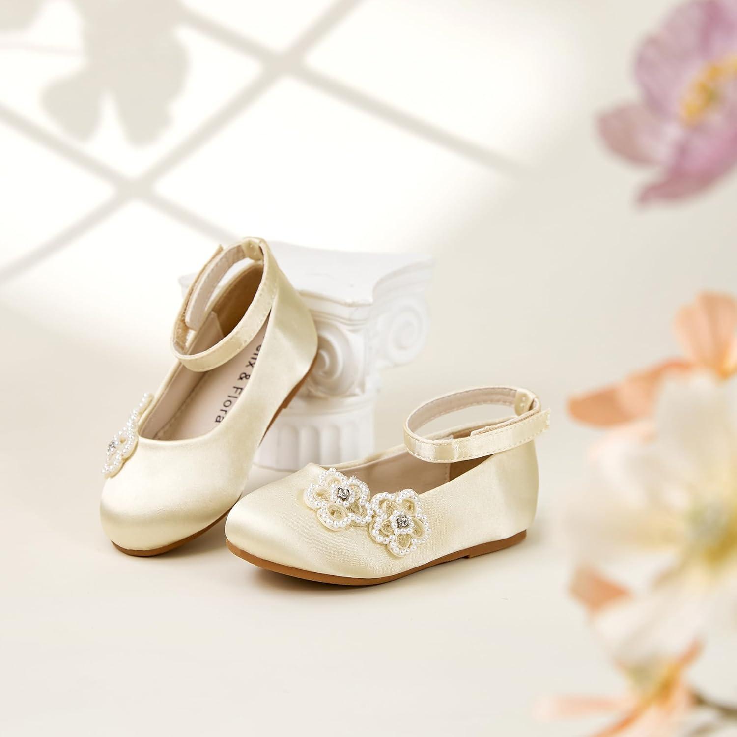 Felix & Flora Girls Toddler Little Ballet Shoes – Flower Girls Mary Jane Flats Dress Shoes Party Wedding(B897-champagne Gold)