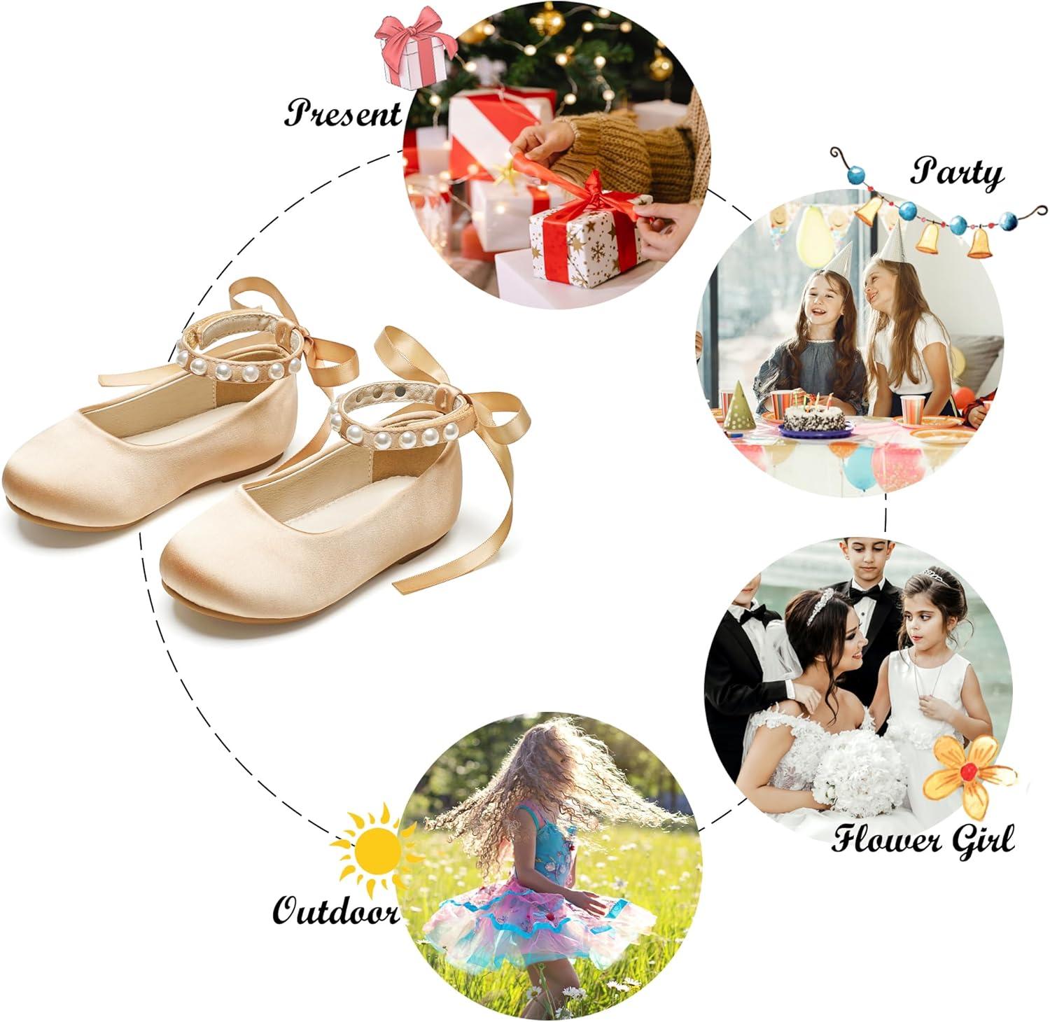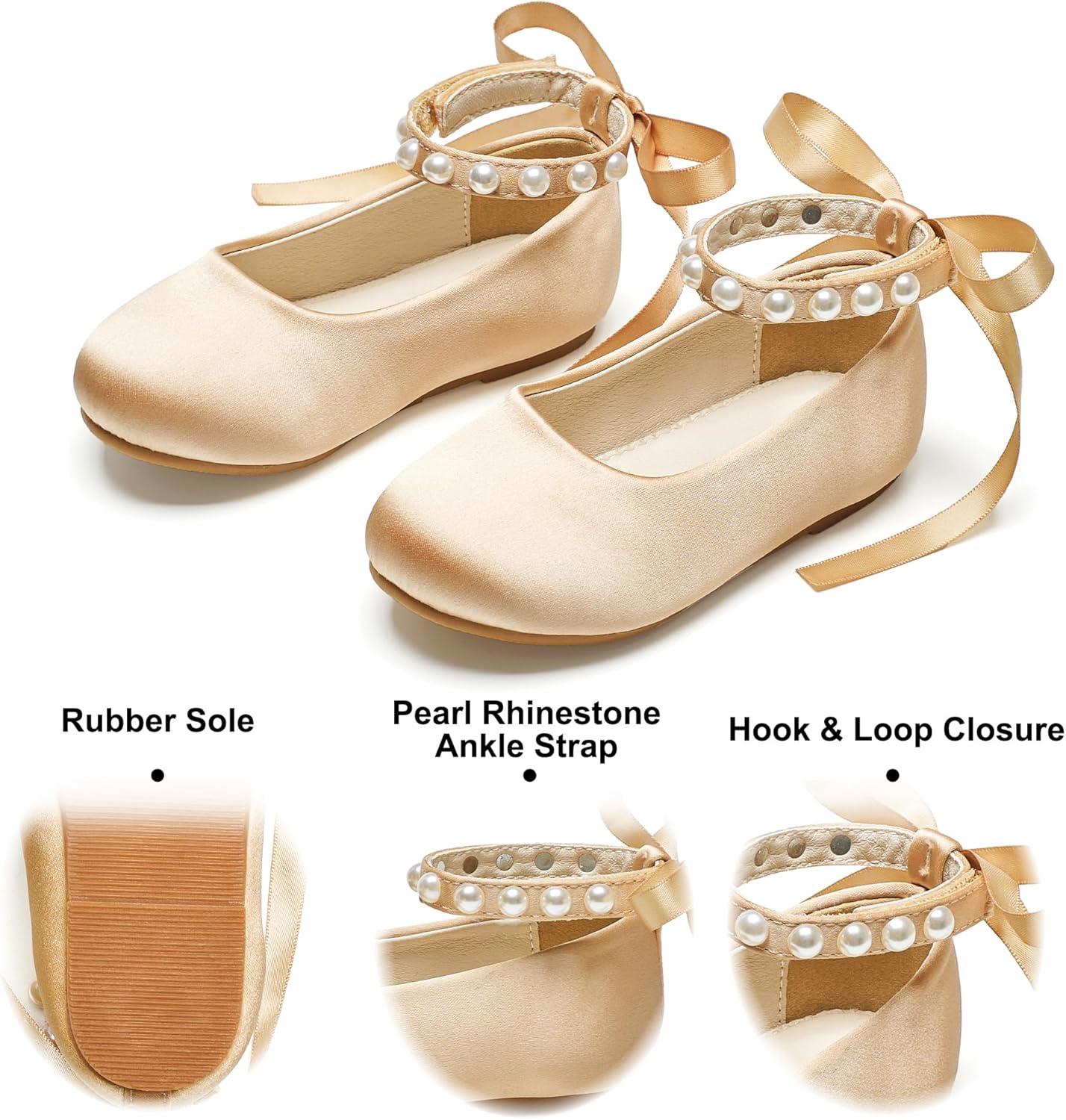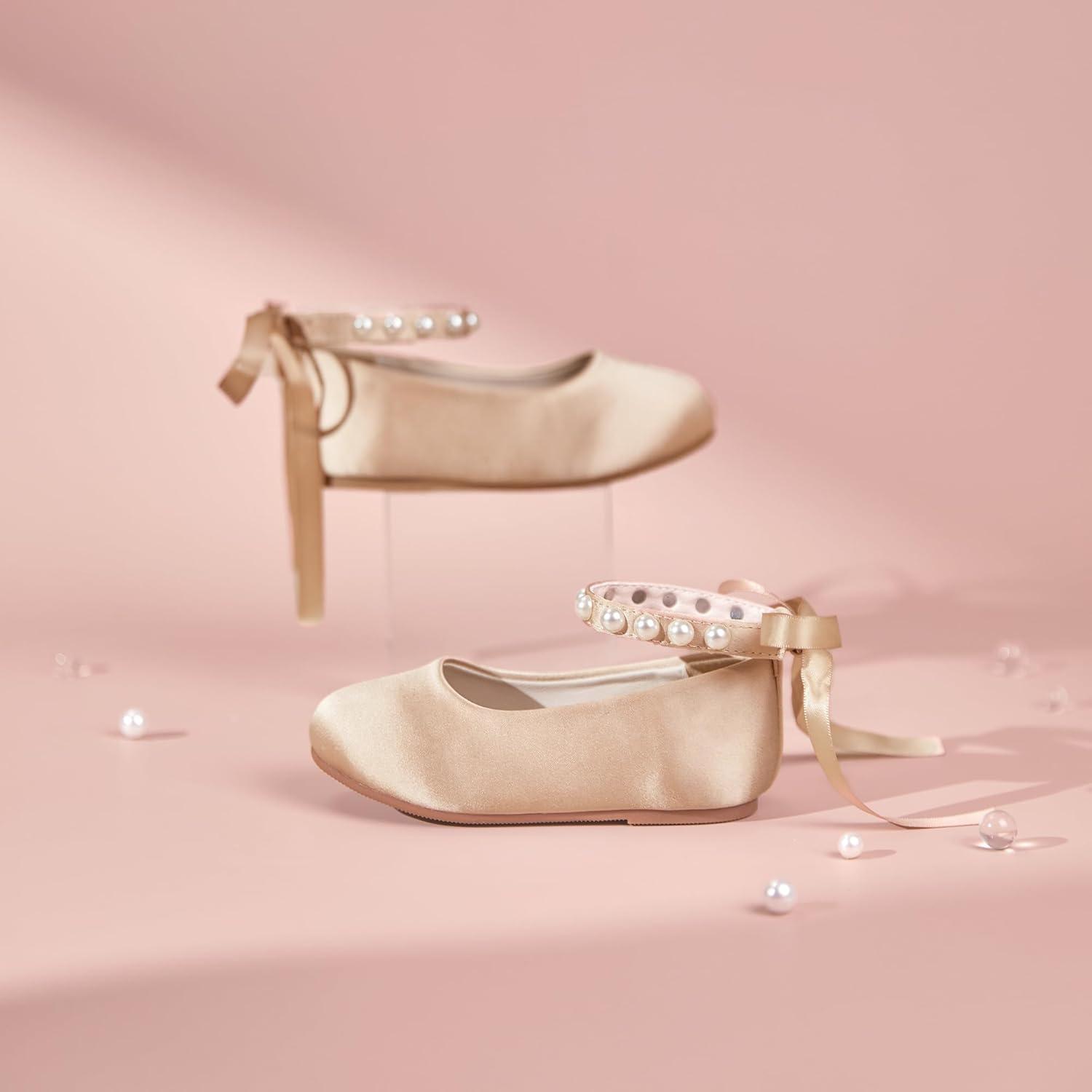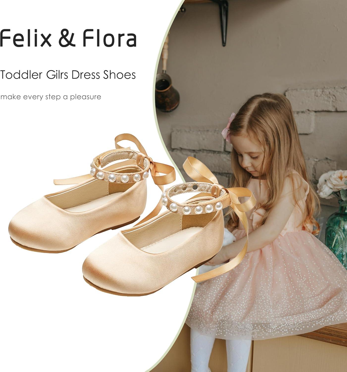 Felix & Flora Girls Toddler Little Ballet Shoes – Flower Girls Mary Jane Flats Dress Shoes Party Wedding(B898-dark Nude)