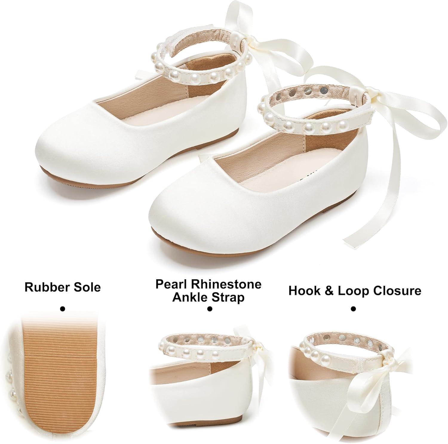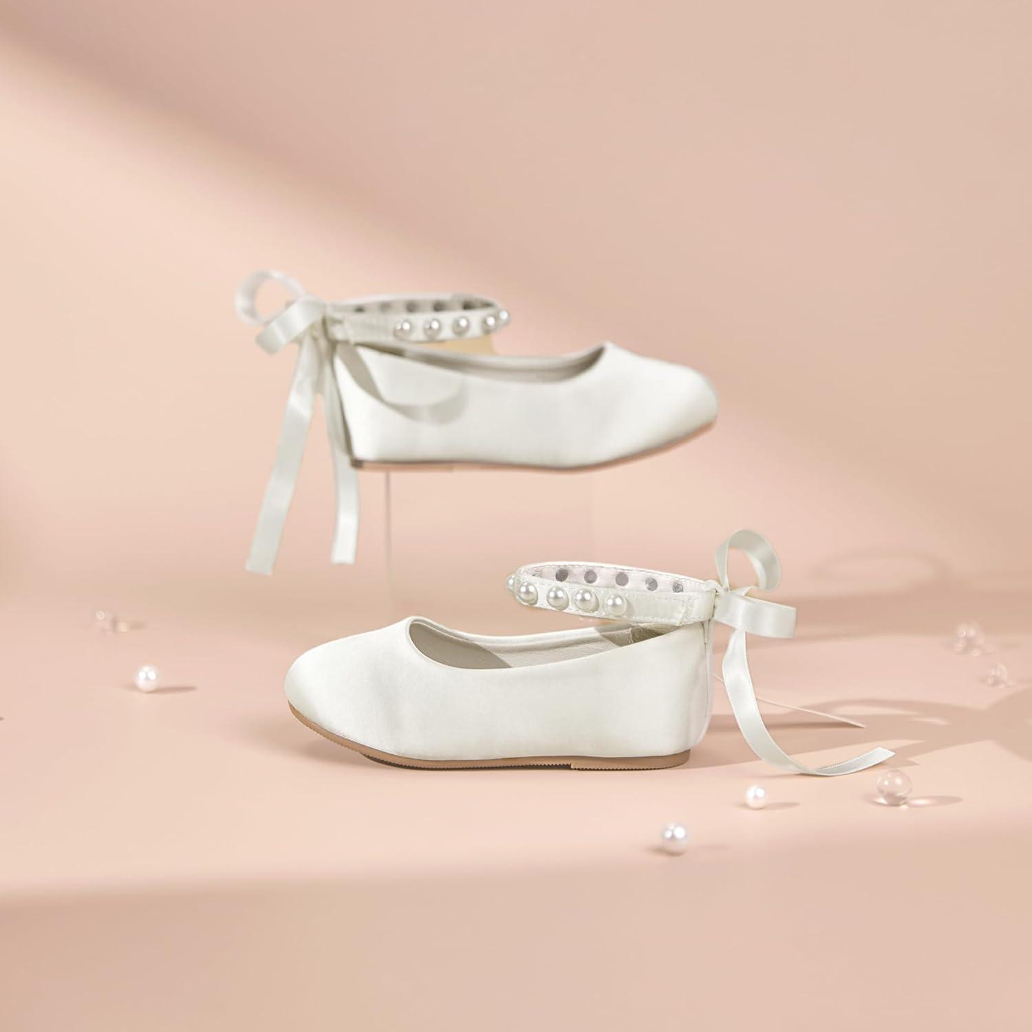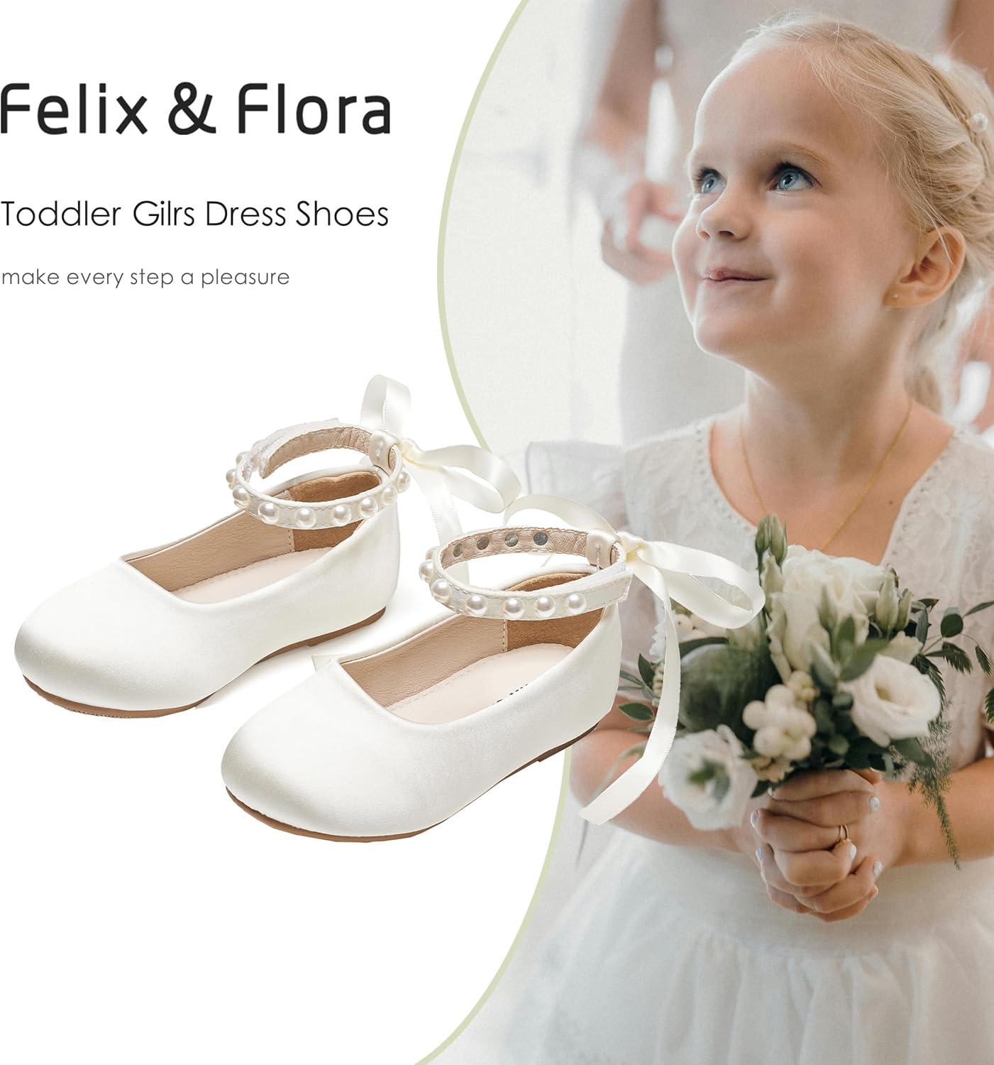Felix & Flora Girls Toddler Little Ballet Shoes – Flower Girls Mary Jane Flats Dress Shoes Party Wedding(B898-ivory White)