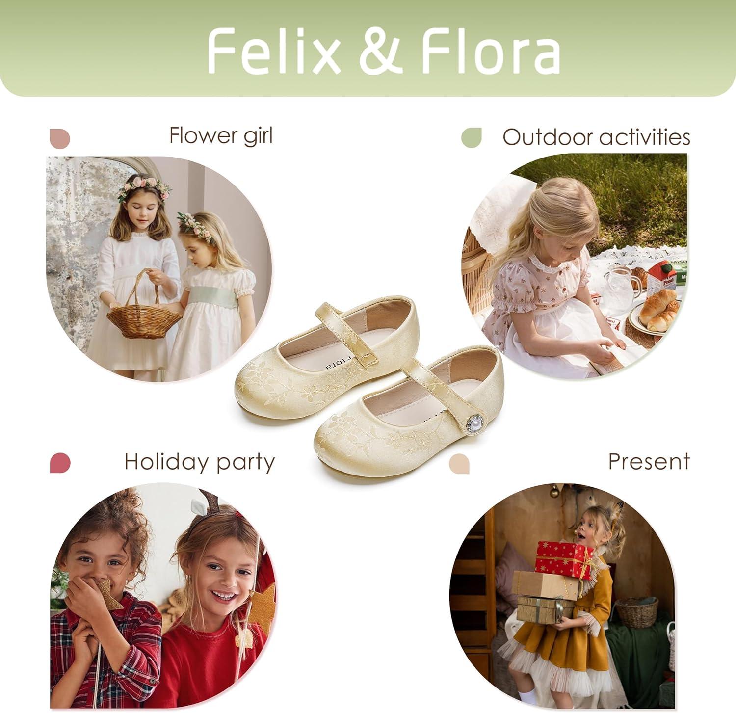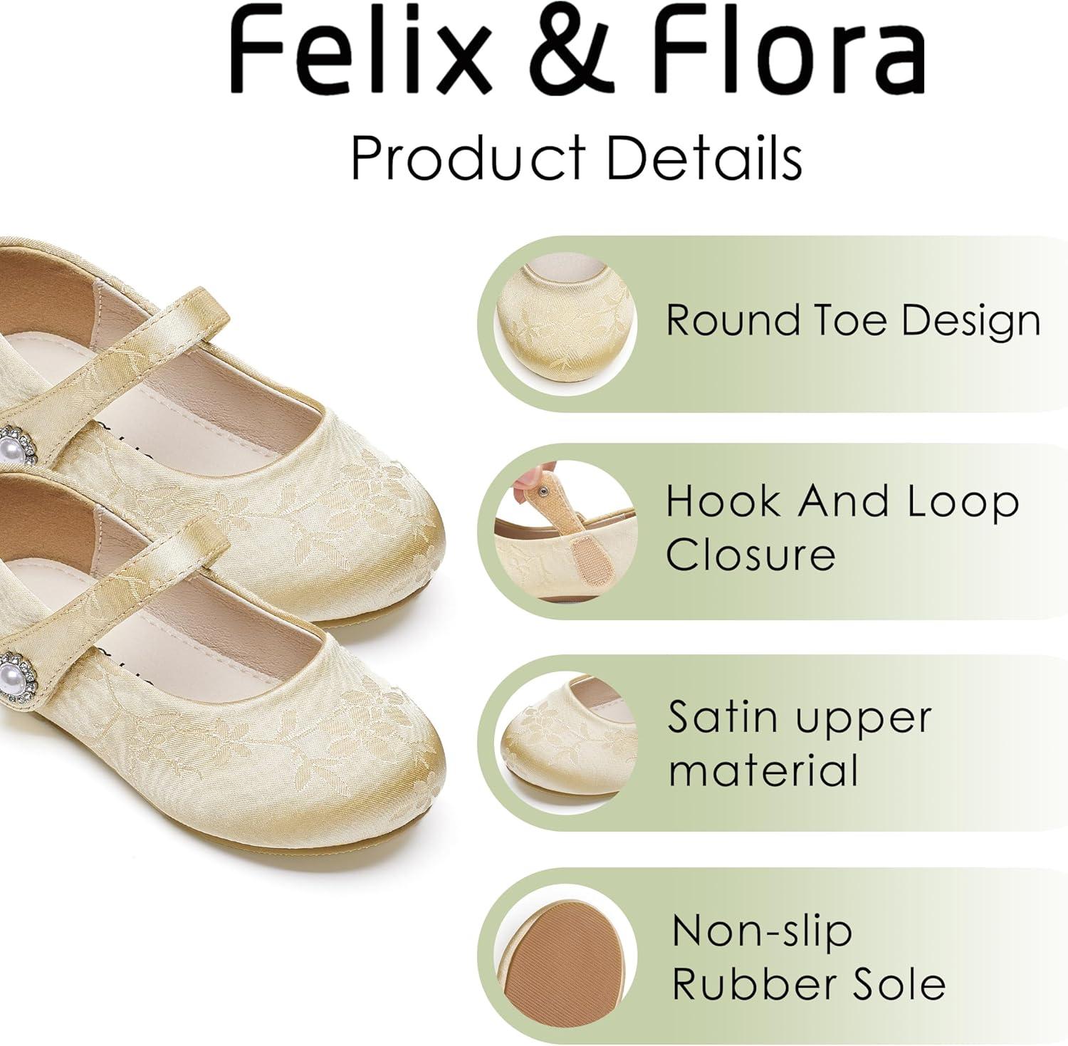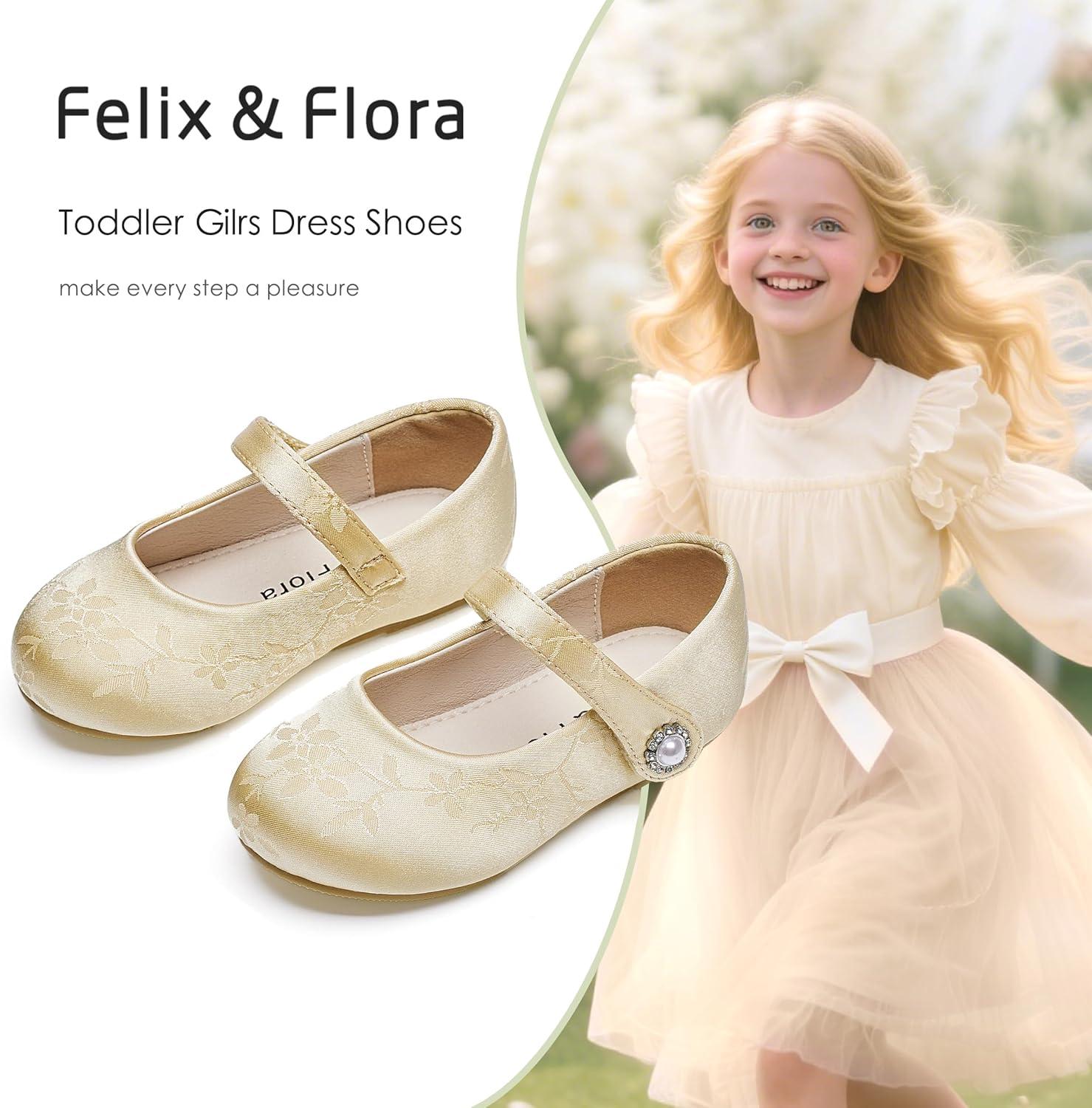 Felix & Flora Girls Toddler Little Ballet Shoes – Flower Girls Mary Jane Flats Dress Shoes Party Wedding(Bf10-nude)