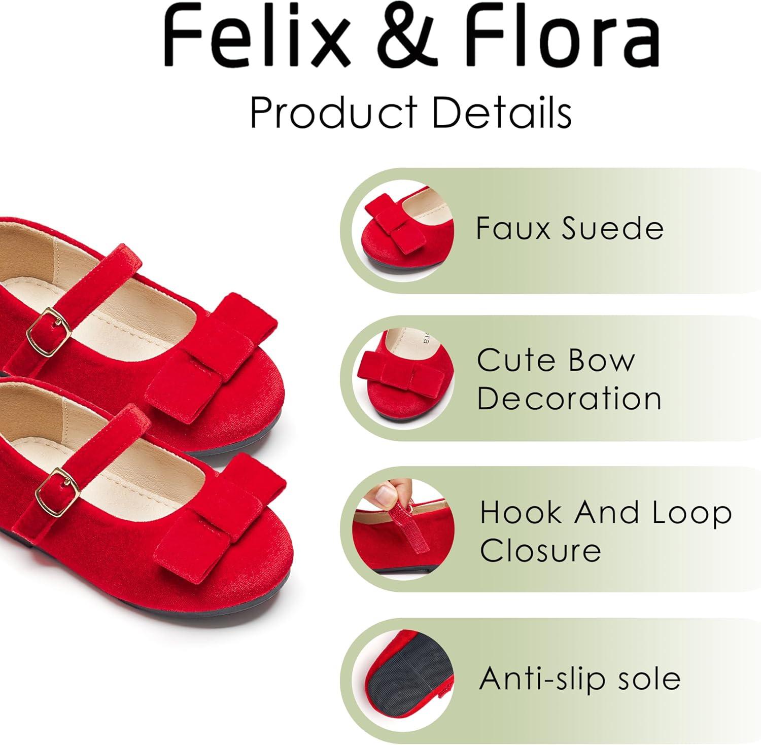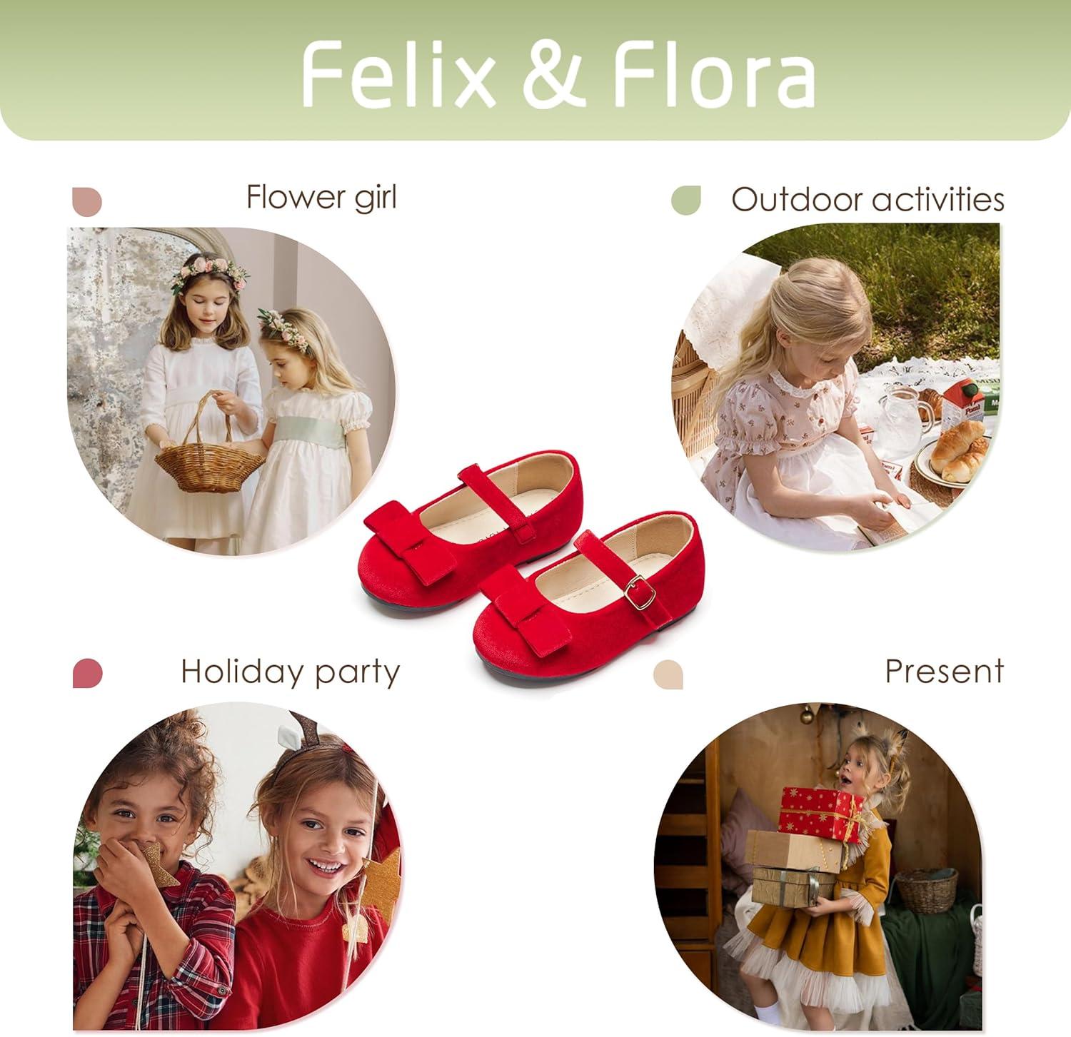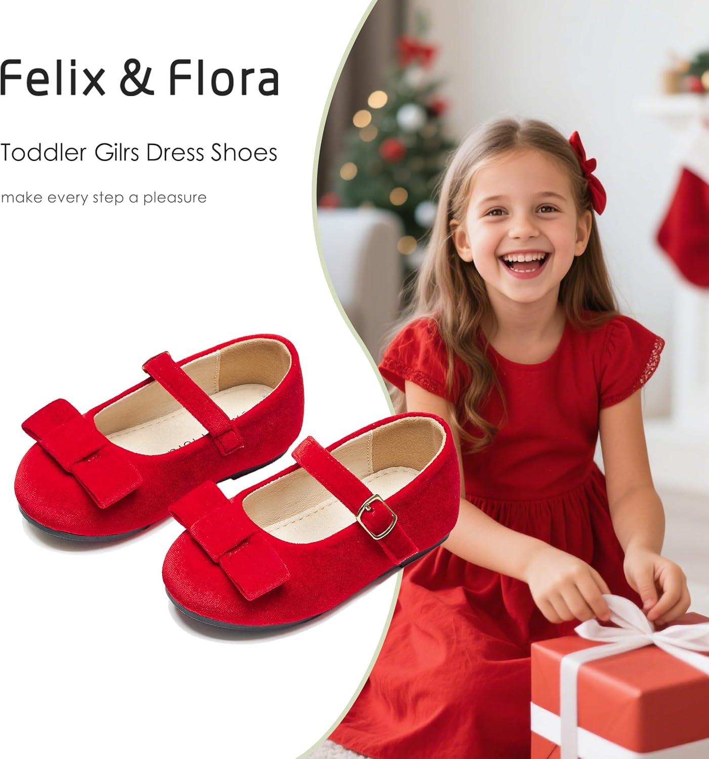 Felix & Flora Girls Toddler Little Ballet Shoes – Flower Girls Mary Jane Flats Dress Shoes Party Wedding(Bf16-red)