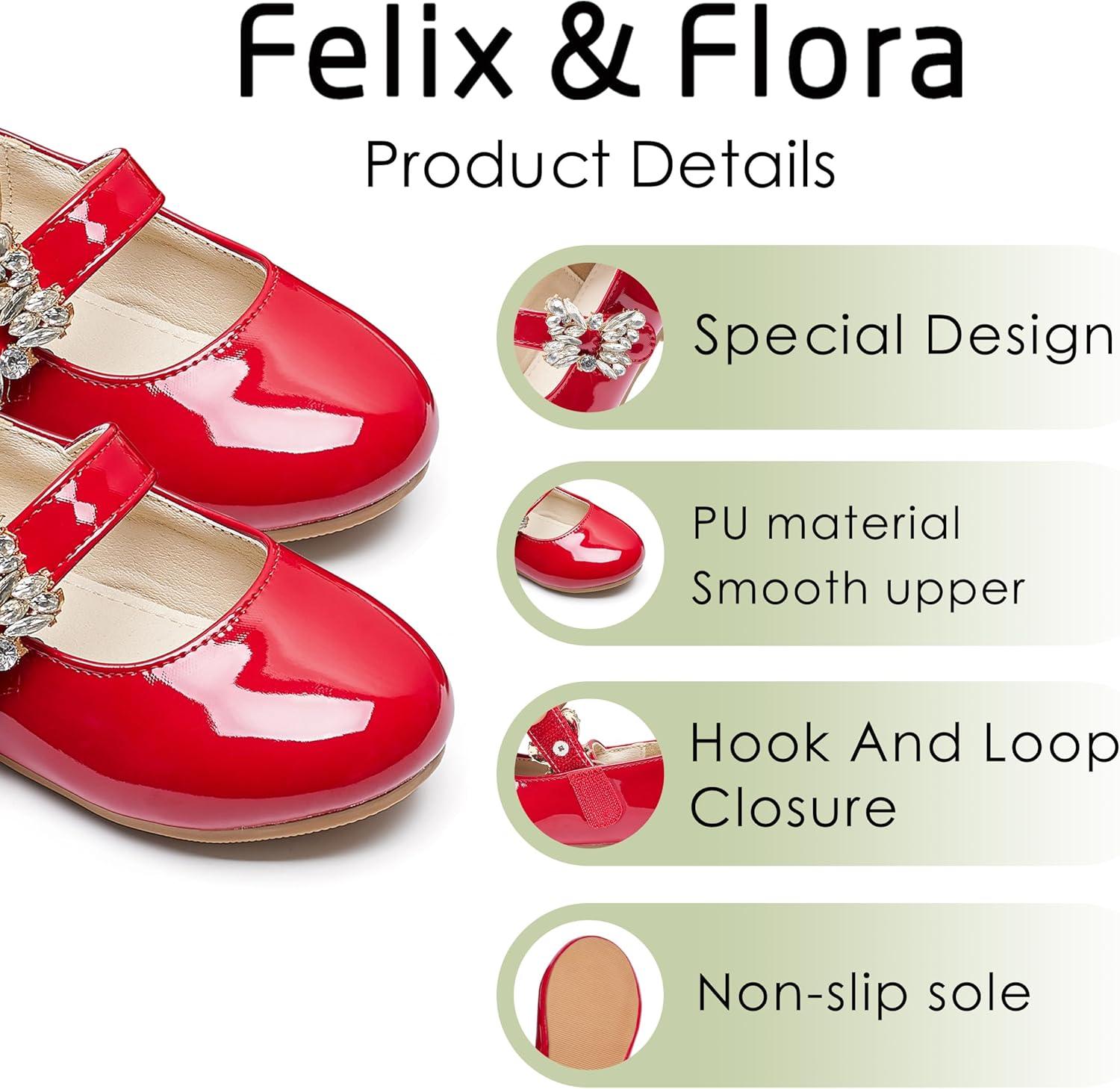 Felix & Flora Girls Toddler Little Ballet Shoes – Flower Girls Mary Jane Flats Dress Shoes Party Wedding(Bf23-pl Red)