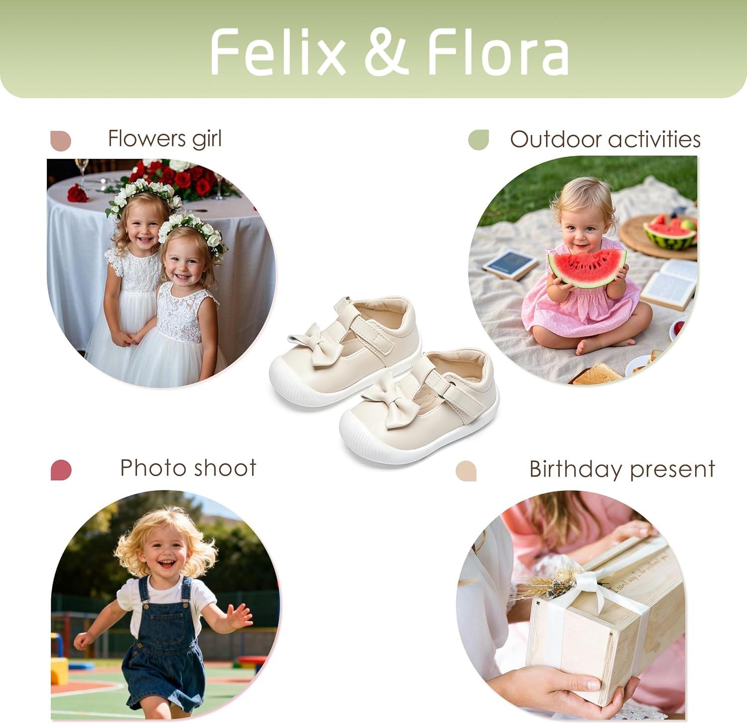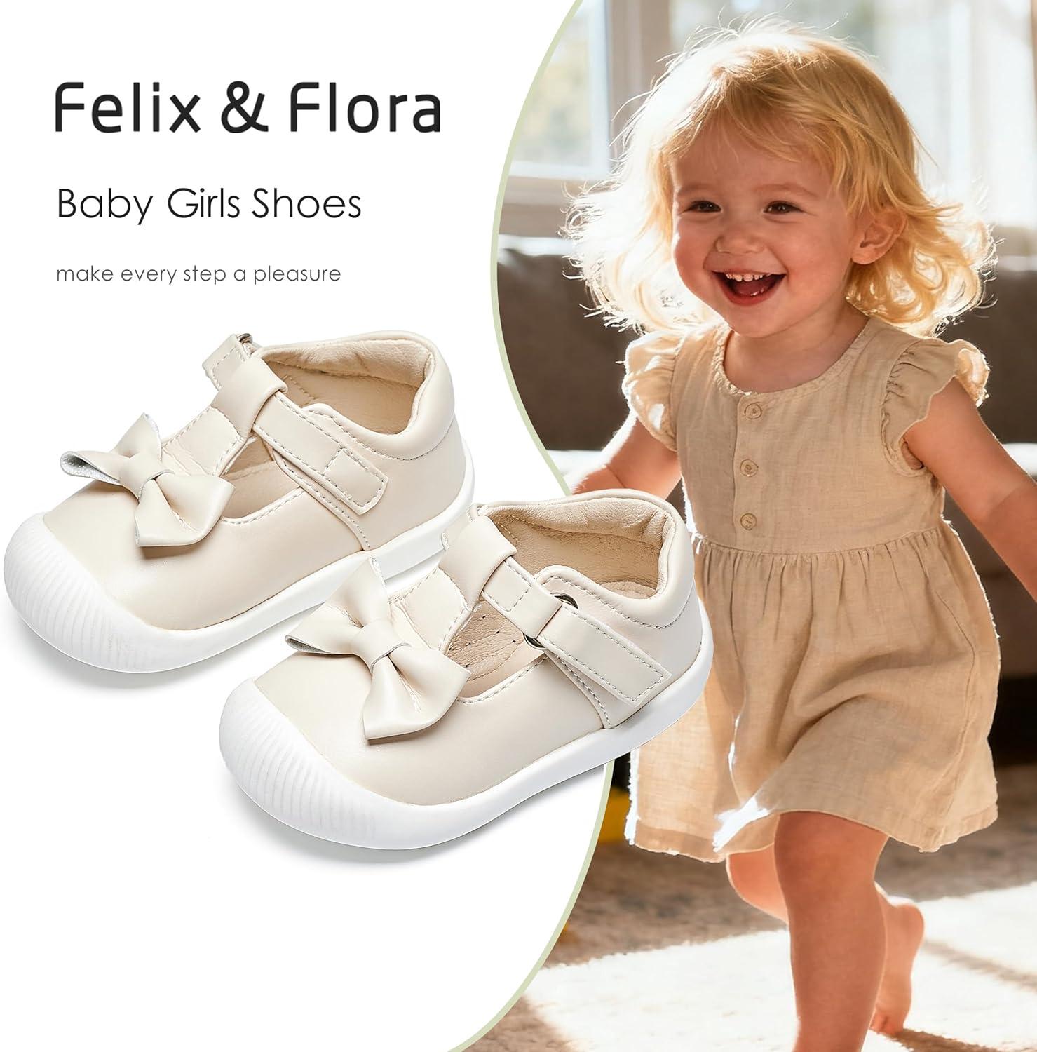 Felix & Flora Soft Sole Baby Dress Shoes – Infant Baby Walking Shoes Moccasinss Rubber Sole Crib Shoes(Byb03-fl Beige)