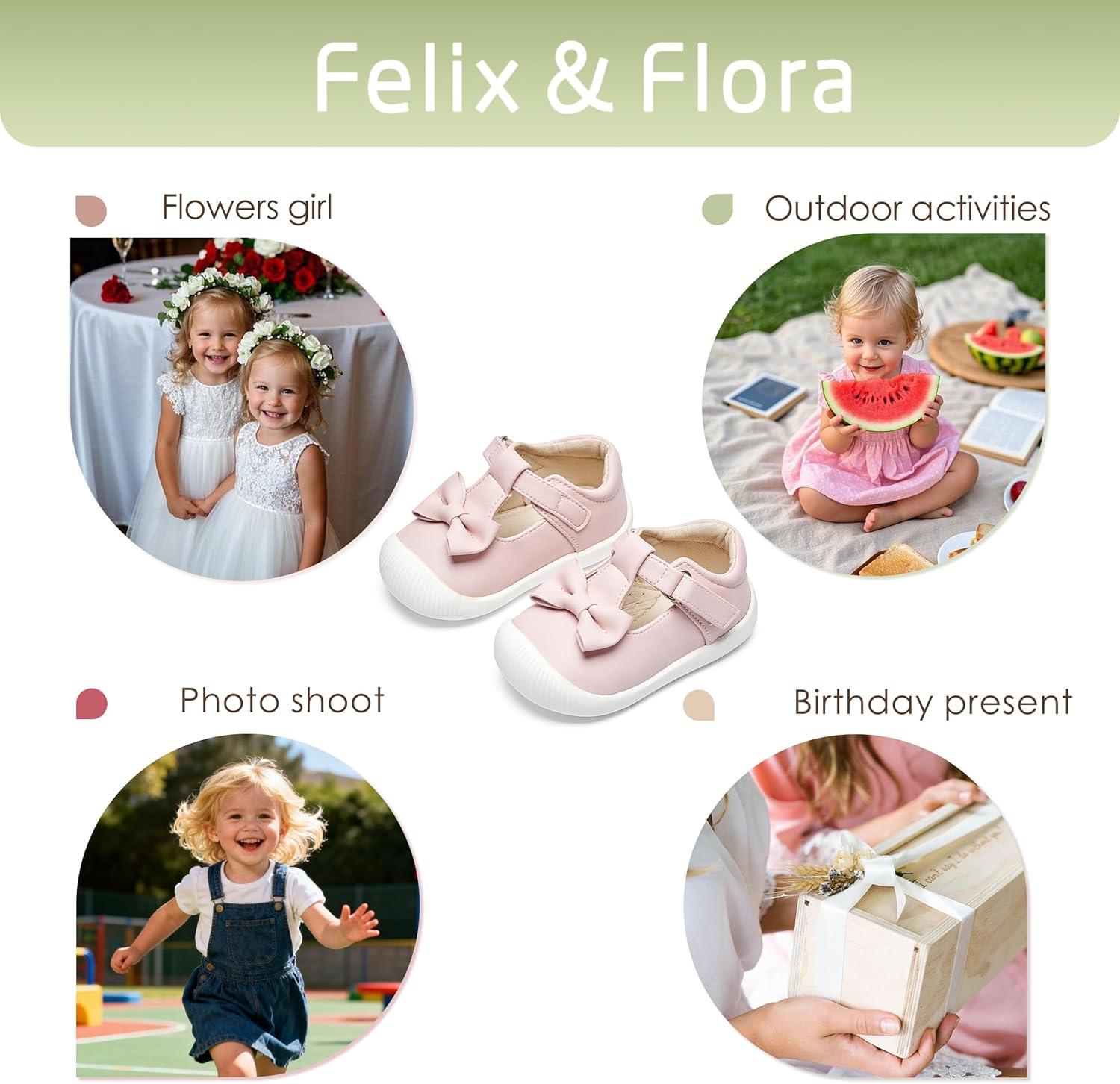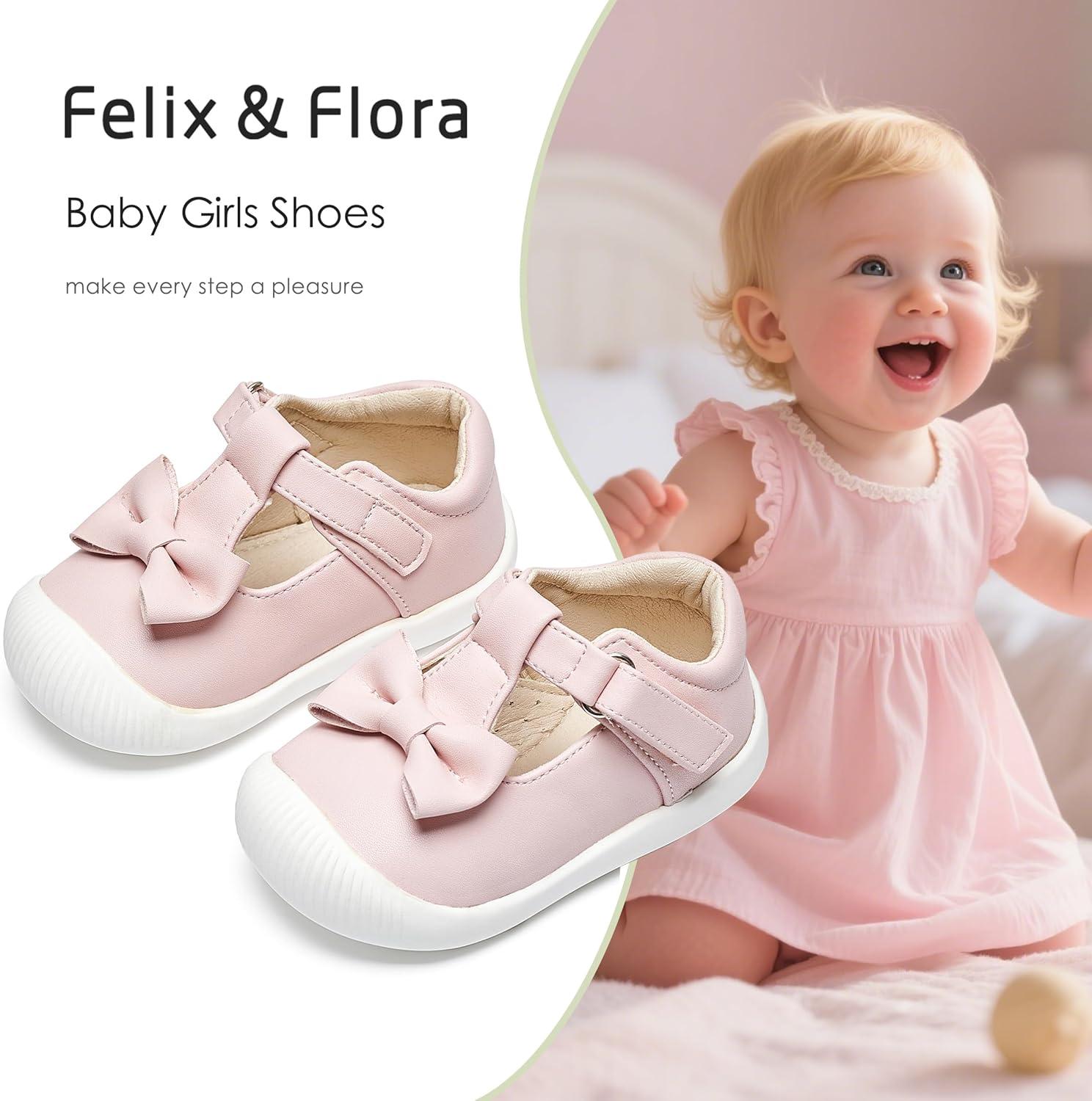 Felix & Flora Soft Sole Baby Dress Shoes – Infant Baby Walking Shoes Moccasinss Rubber Sole Crib Shoes(Byb03-pink)