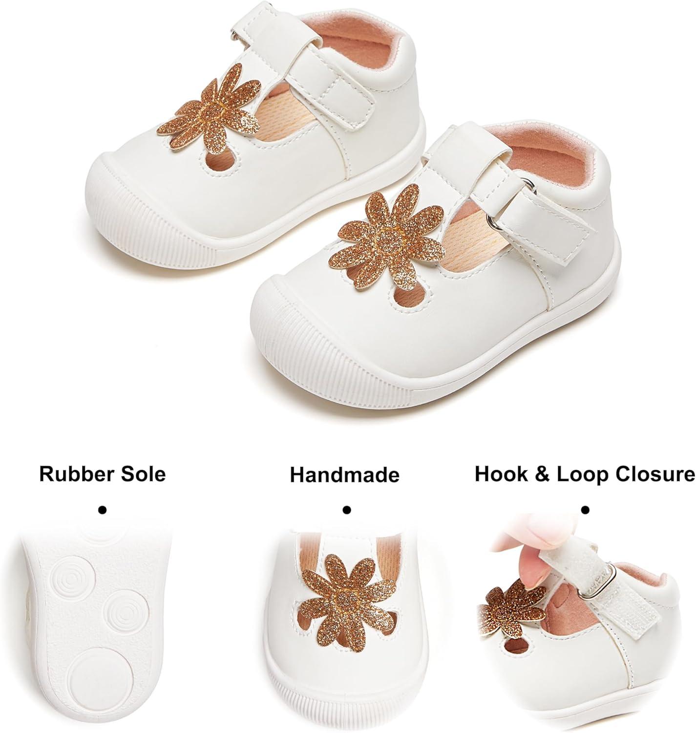 Felix & Flora Soft Sole Baby Dress Shoes – Infant Baby Walking Shoes Moccasinss Rubber Sole Crib Shoes(Byb05-white)