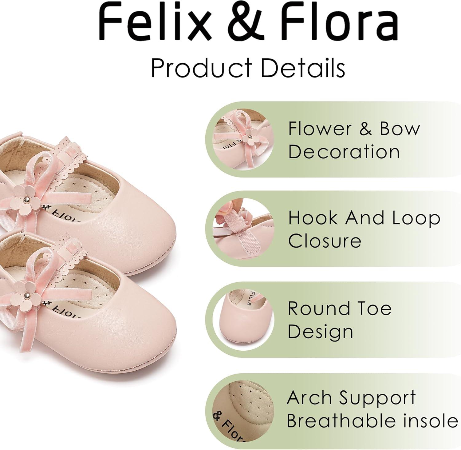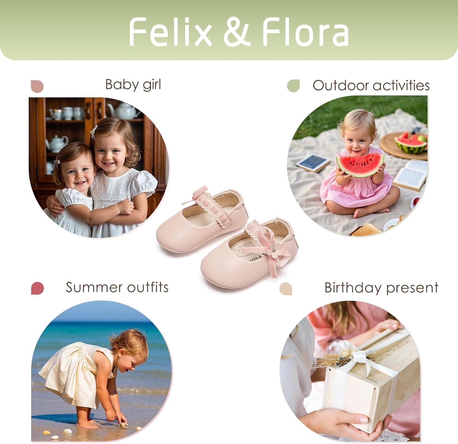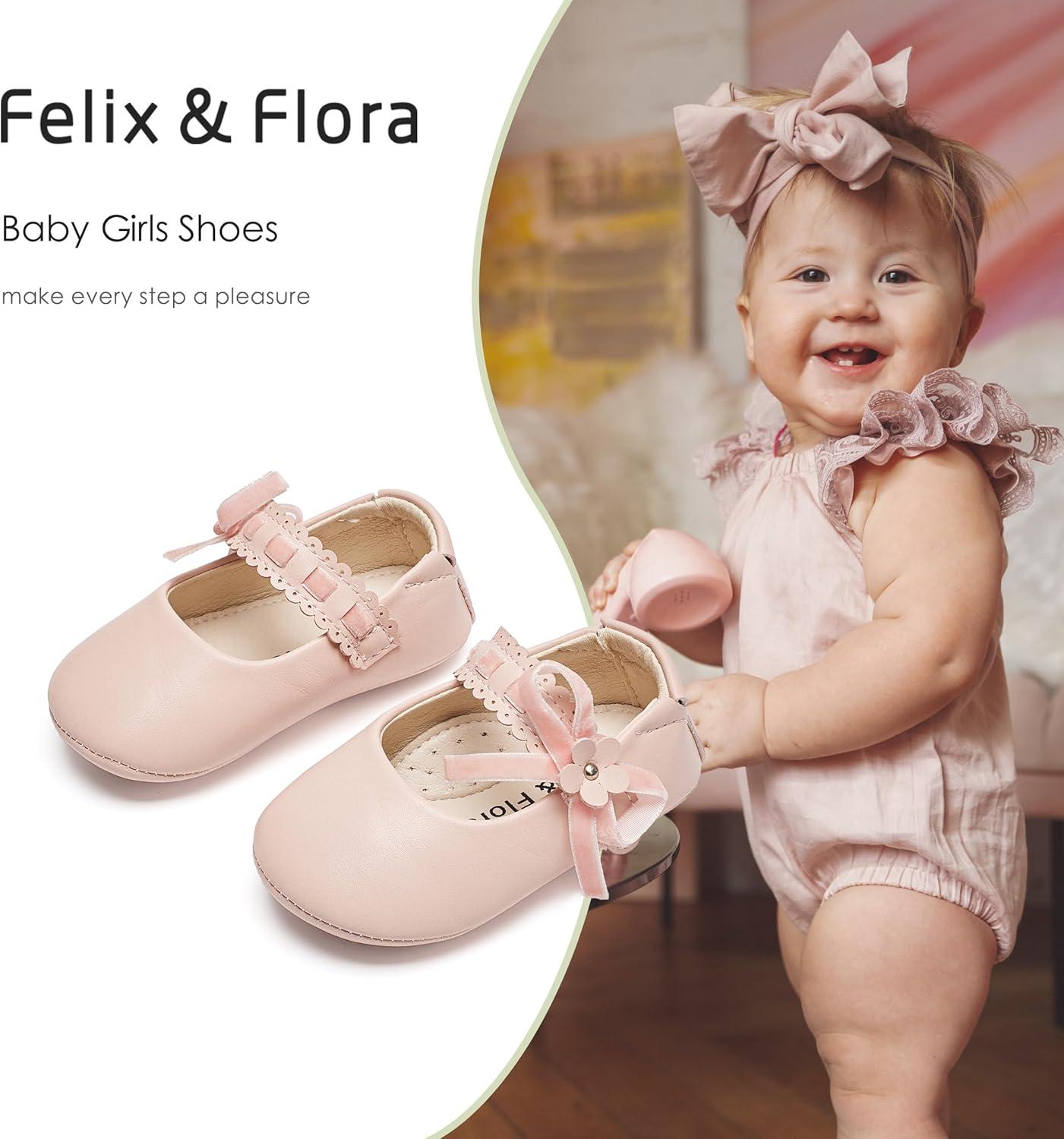Felix & Flora Soft Sole Baby Shoes – Infant Baby Girls Ballet Flats Moccasinss Rubber Sole Walking Crib Shoes(Bn33-pink)