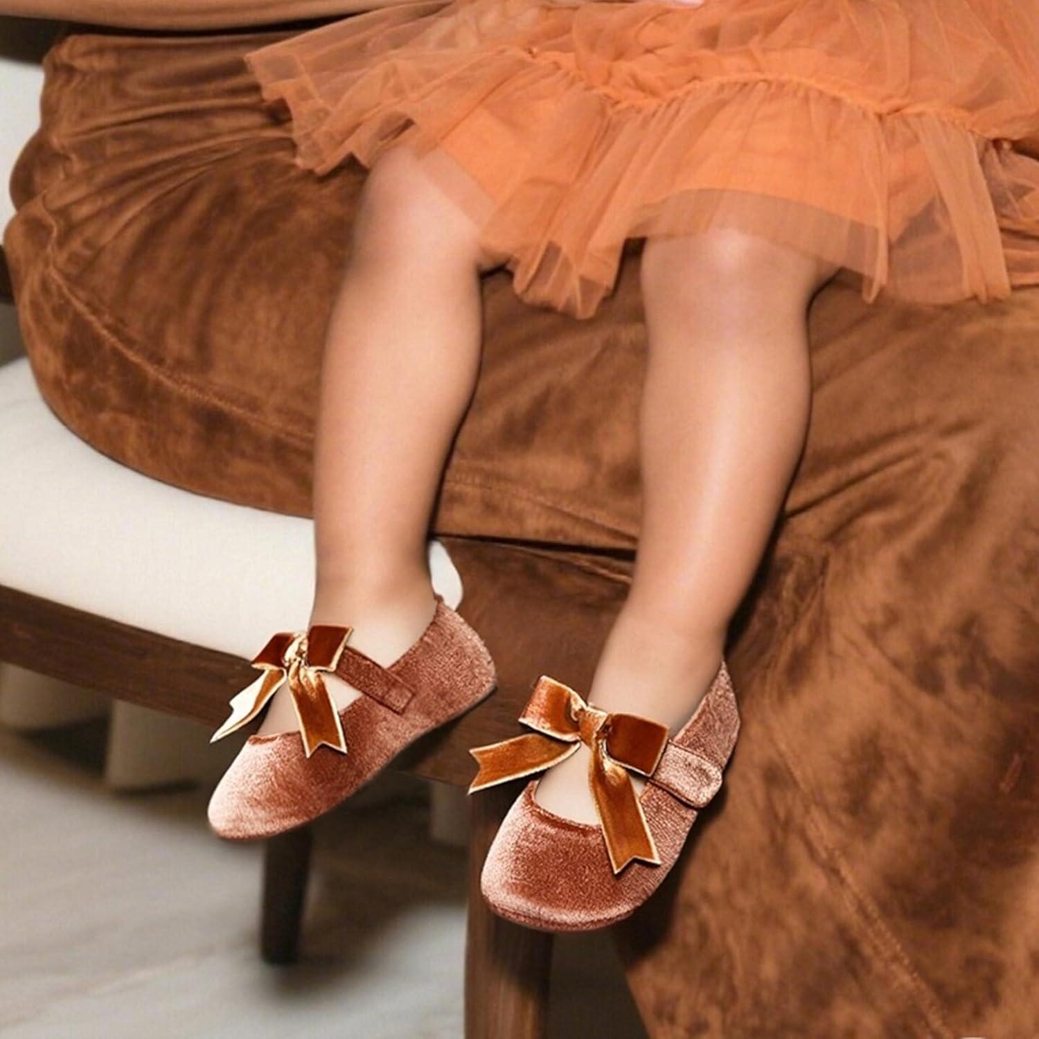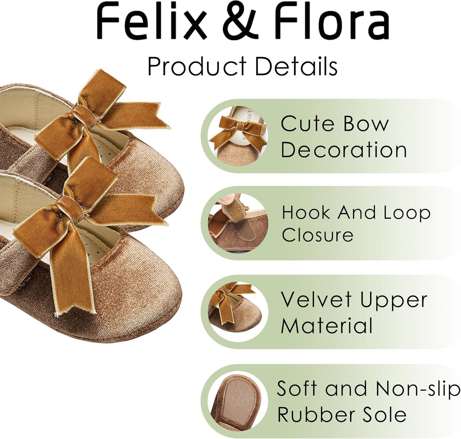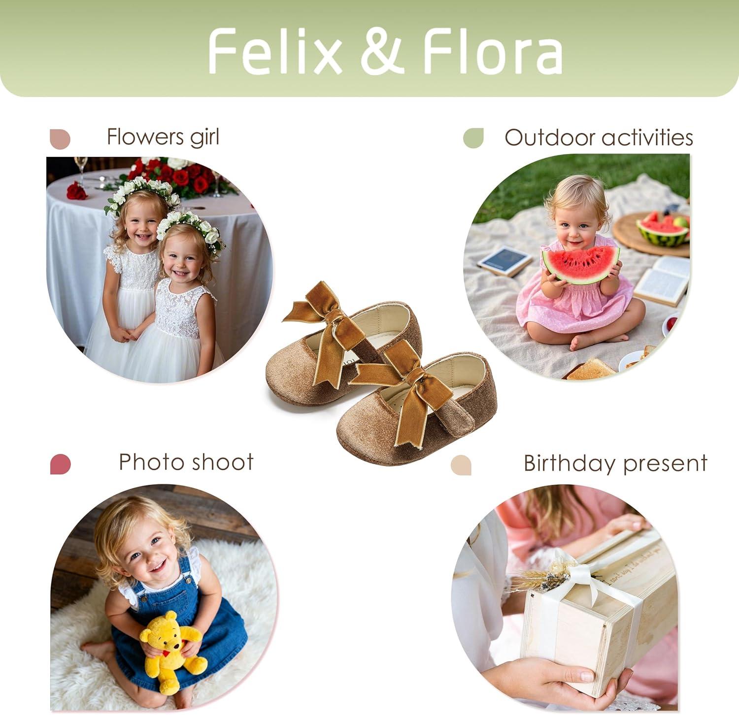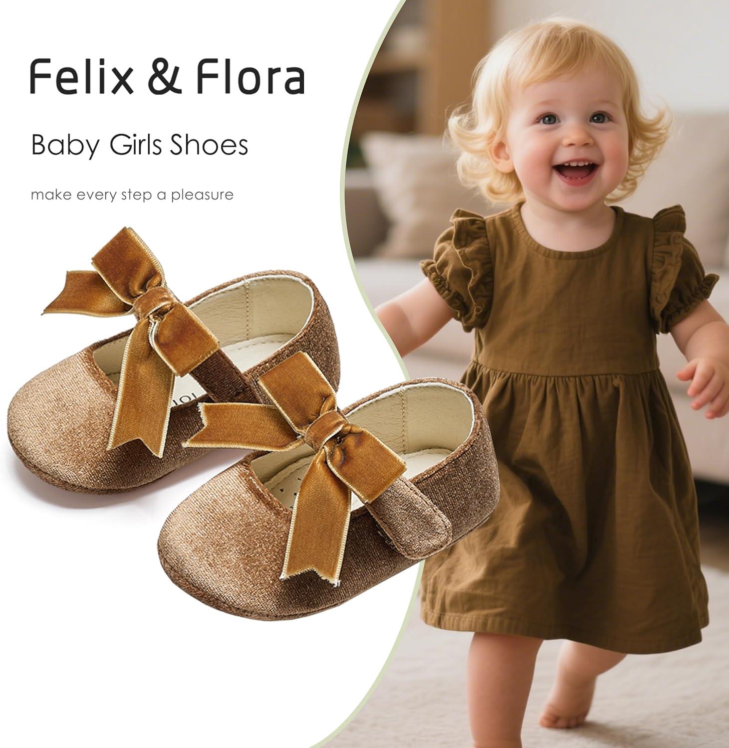 Felix & Flora Soft Sole Baby Shoes – Infant Baby Girls Ballet Flats Moccasinss Rubber Sole Walking Crib Shoes(Bn38-brown)
