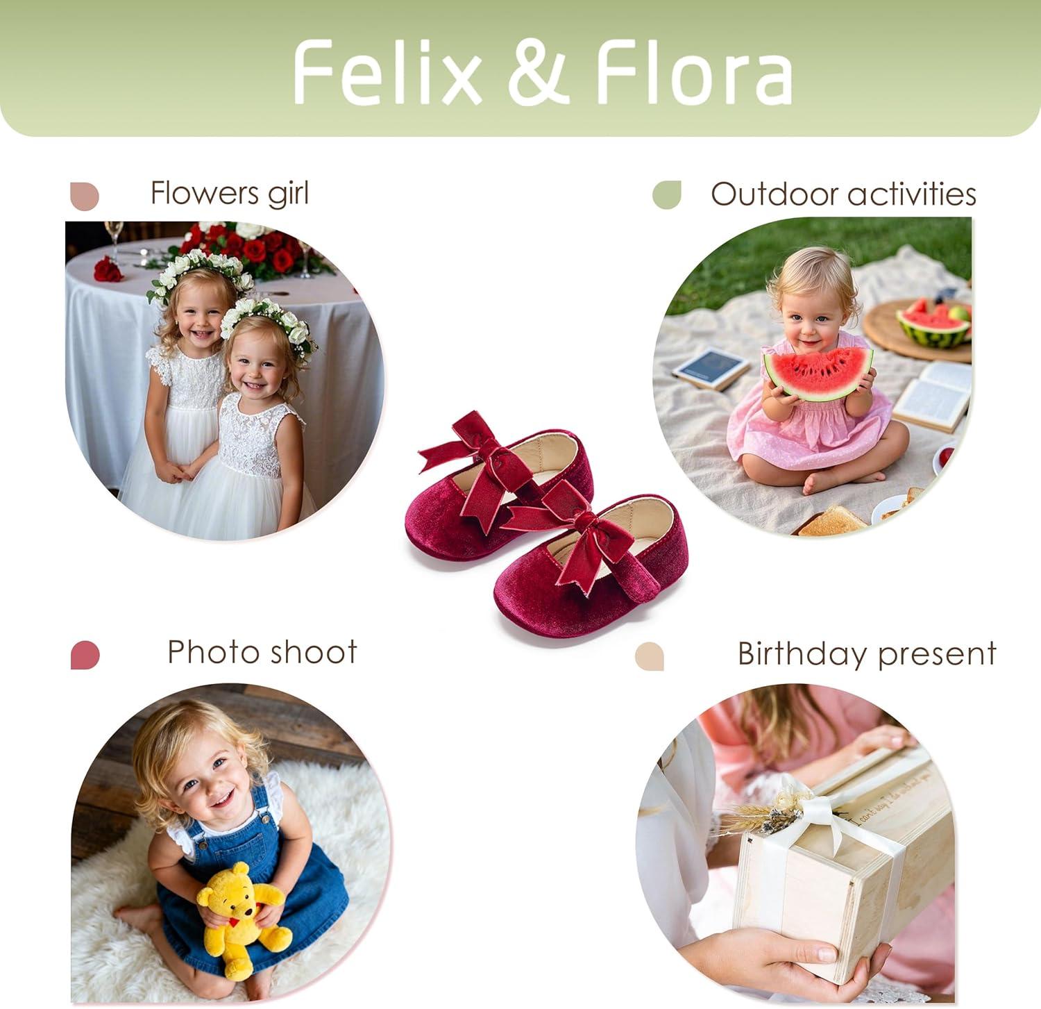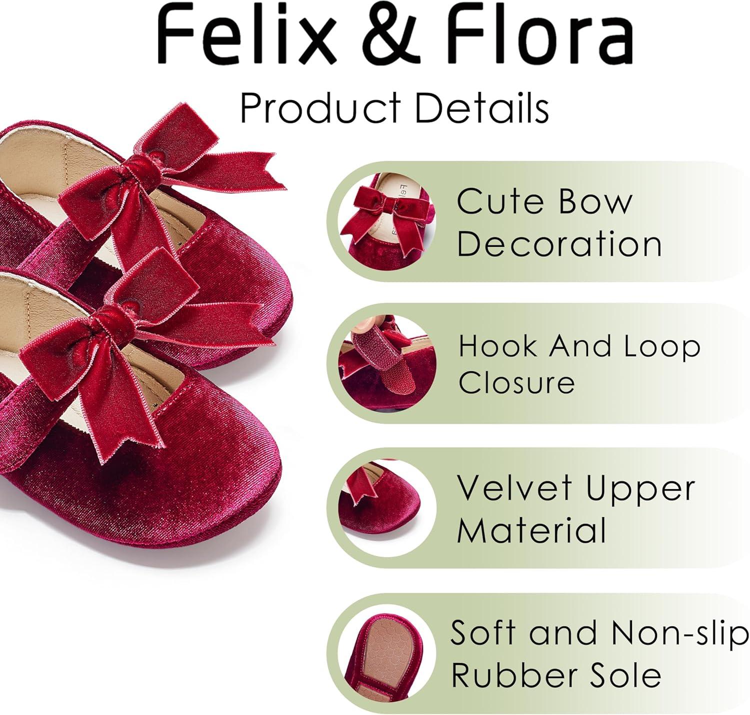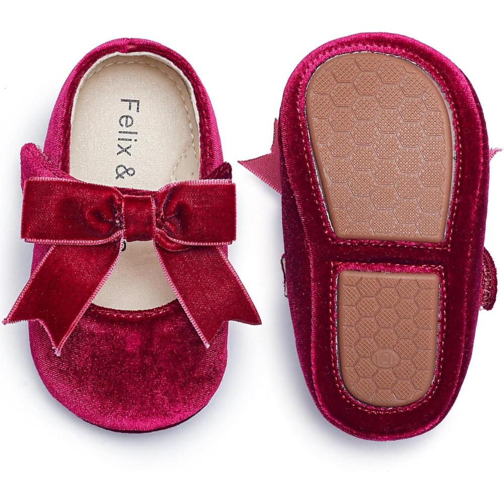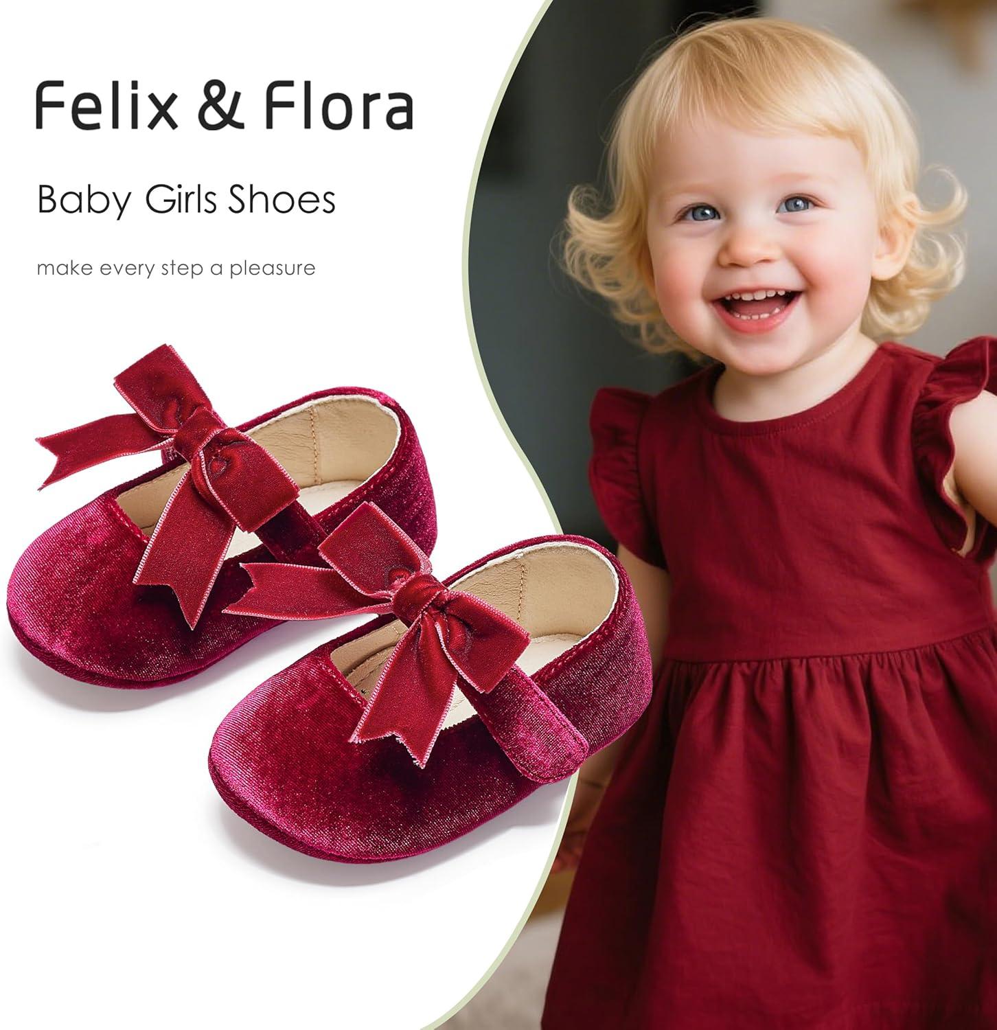 Felix & Flora Soft Sole Baby Shoes – Infant Baby Girls Ballet Flats Moccasinss Rubber Sole Walking Crib Shoes(Bn38-burgundy)