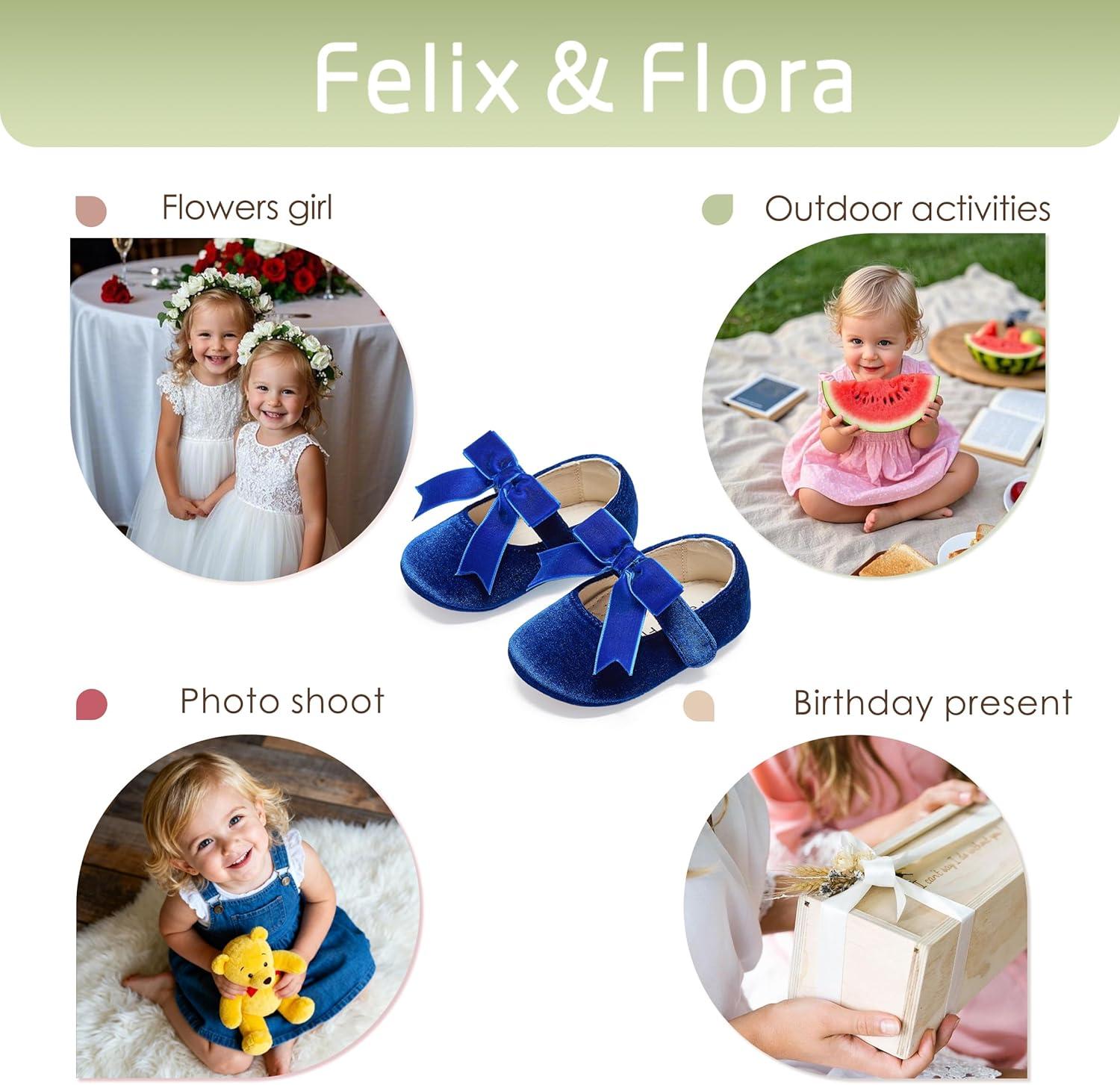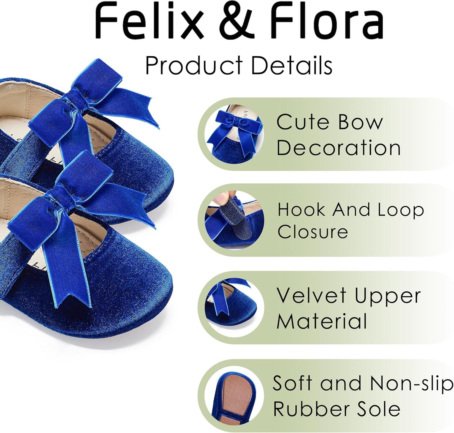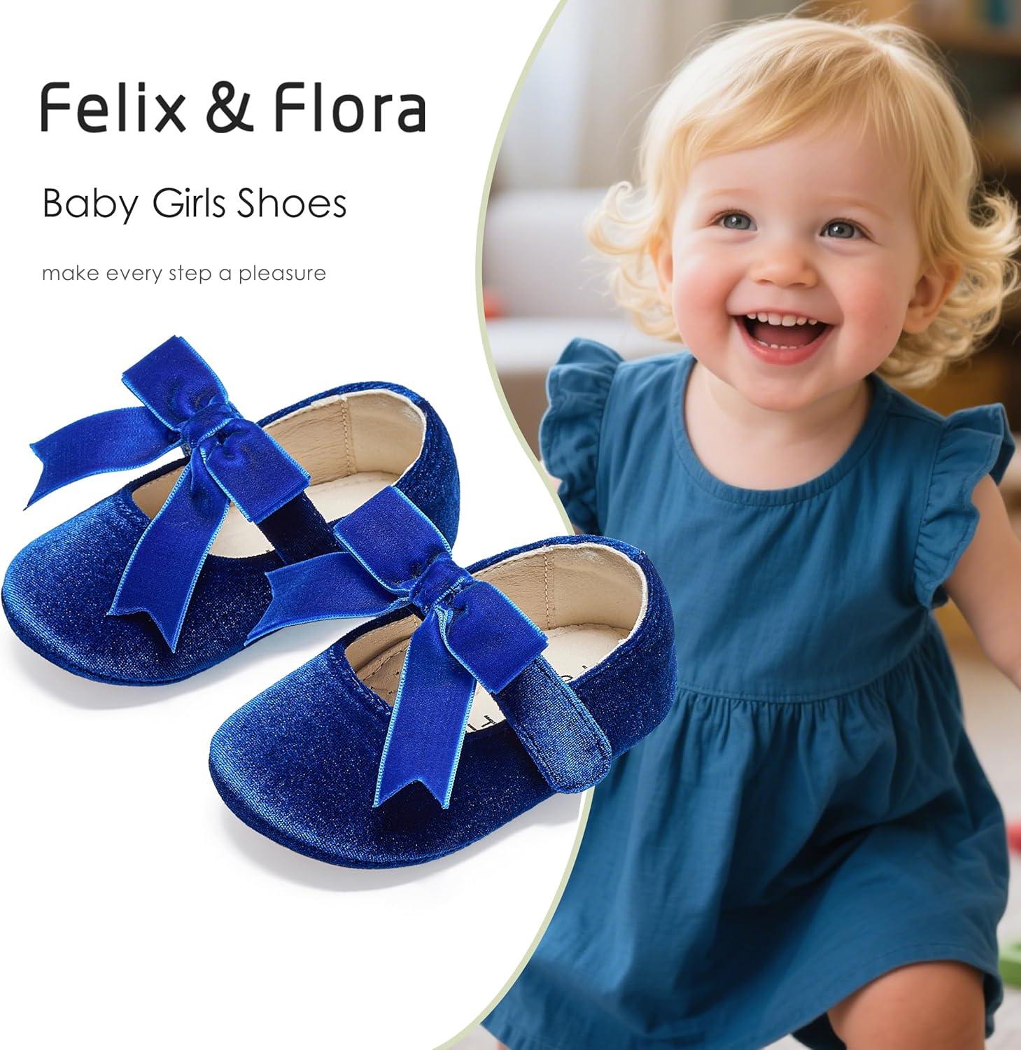 Felix & Flora Soft Sole Baby Shoes – Infant Baby Girls Ballet Flats Moccasinss Rubber Sole Walking Crib Shoes(Bn38-navy Blue)
