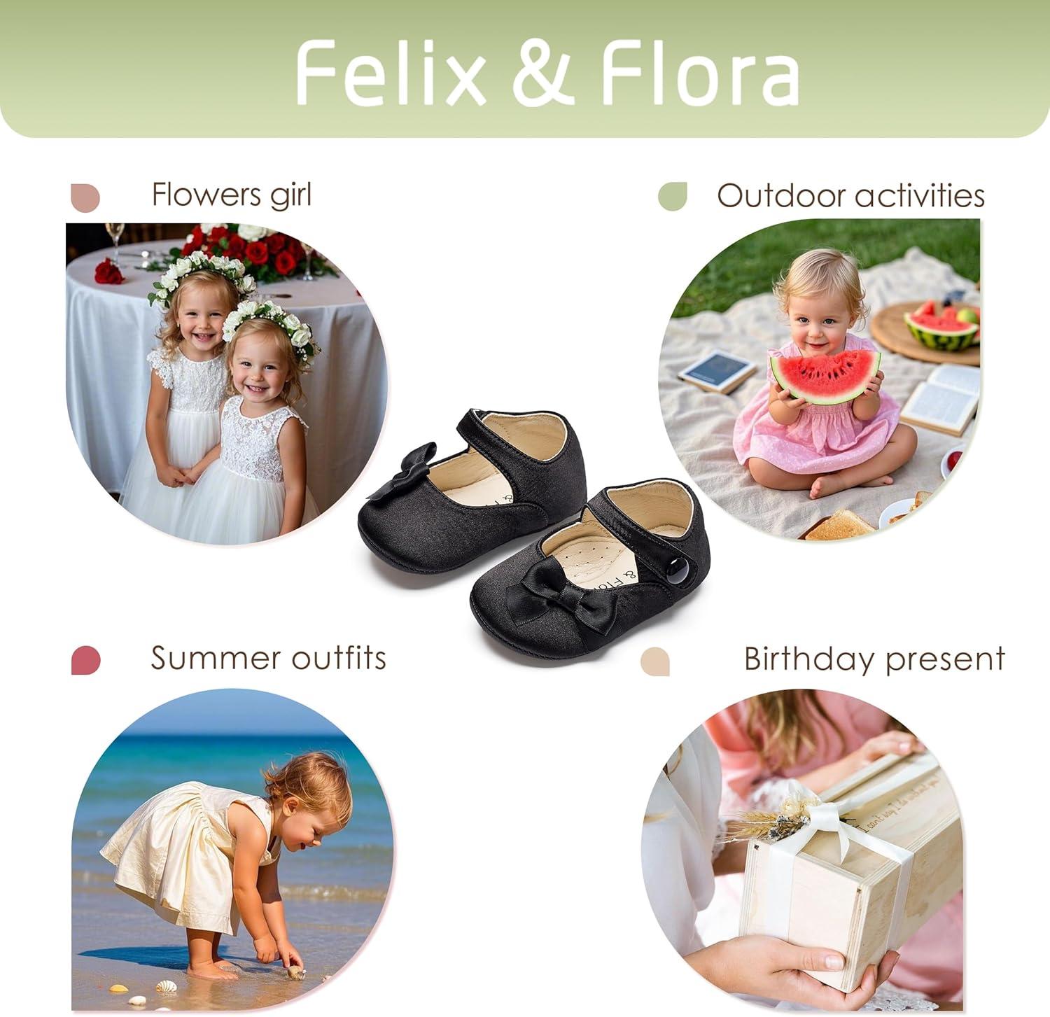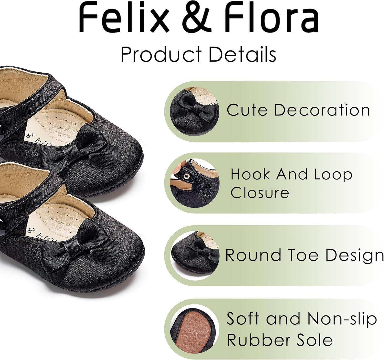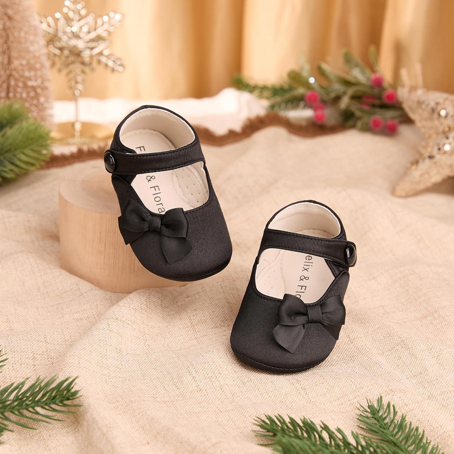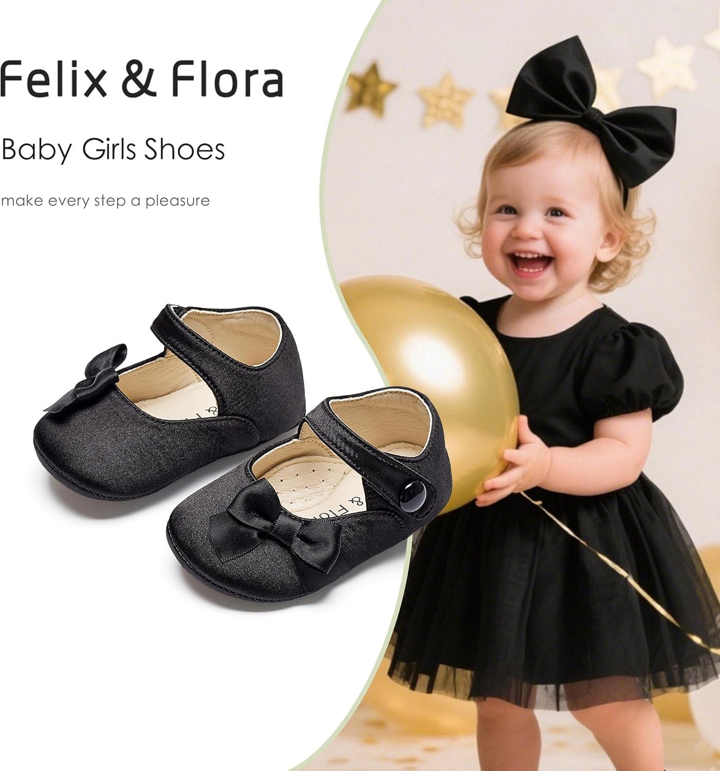 Felix & Flora Soft Sole Baby Shoes – Infant Baby Girls Ballet Flats Moccasinss Rubber Sole Walking Crib Shoes(Bn39-black)