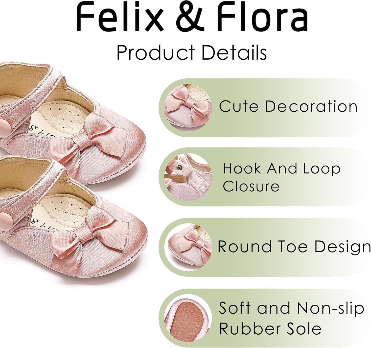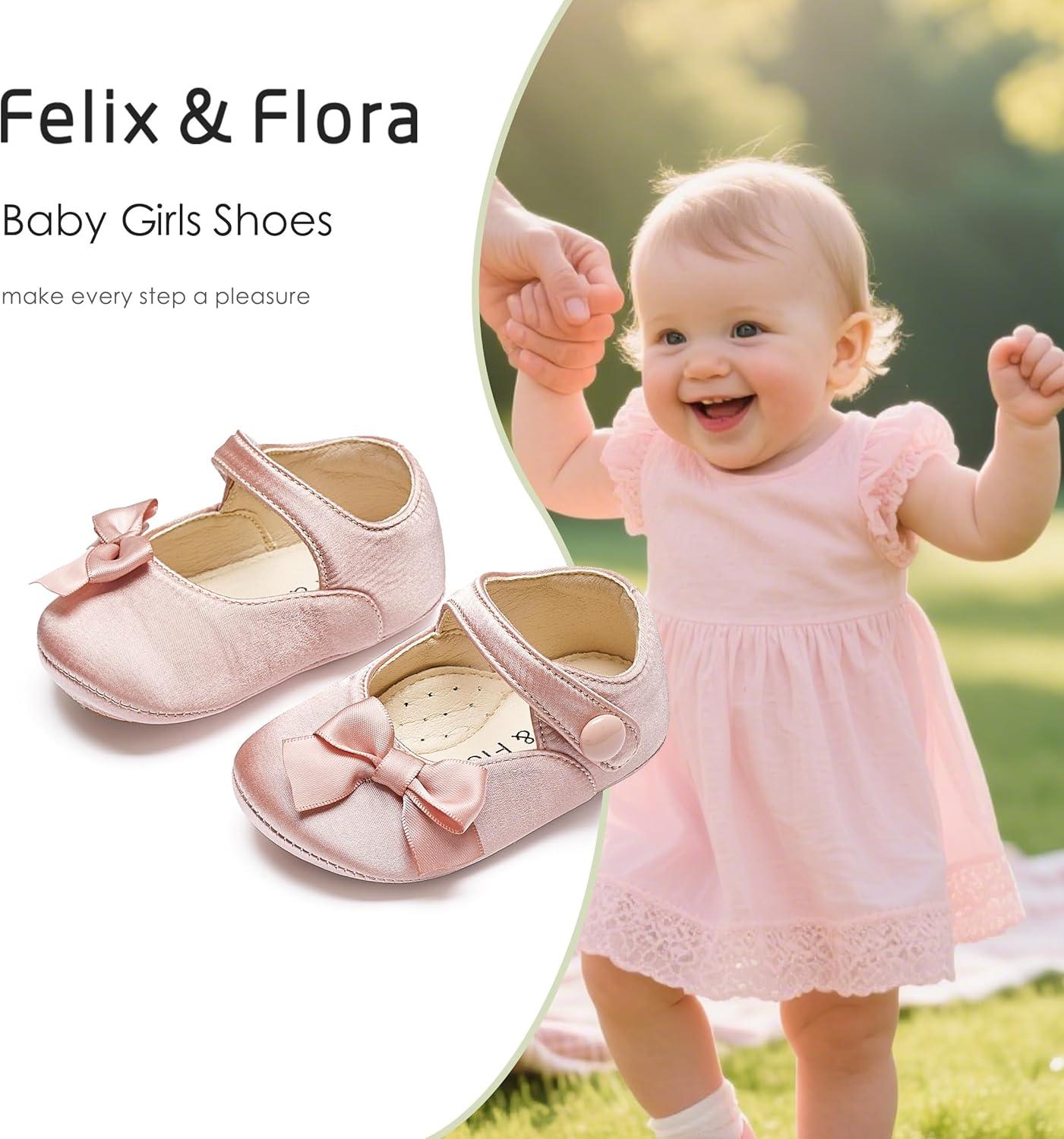 Felix & Flora Soft Sole Baby Shoes – Infant Baby Girls Ballet Flats Moccasinss Rubber Sole Walking Crib Shoes(Bn39-pink)