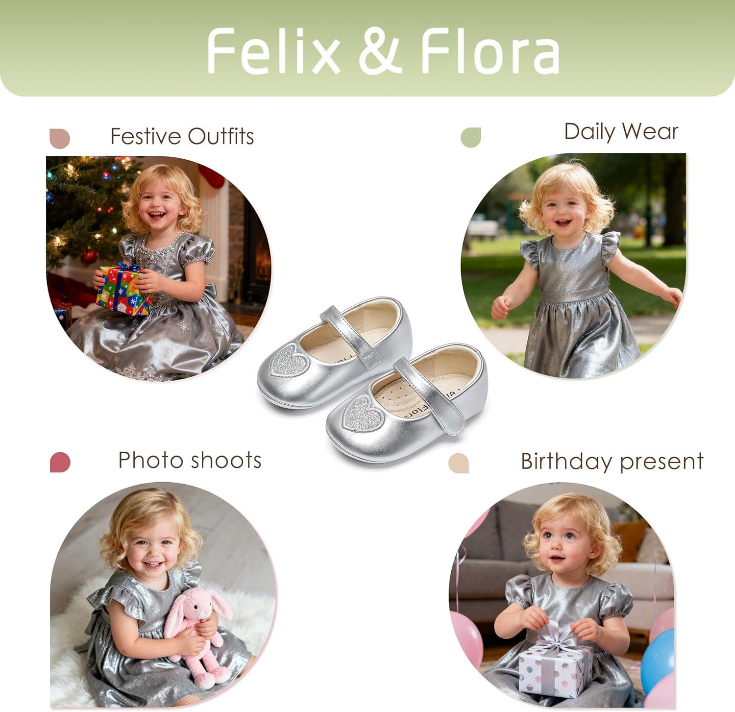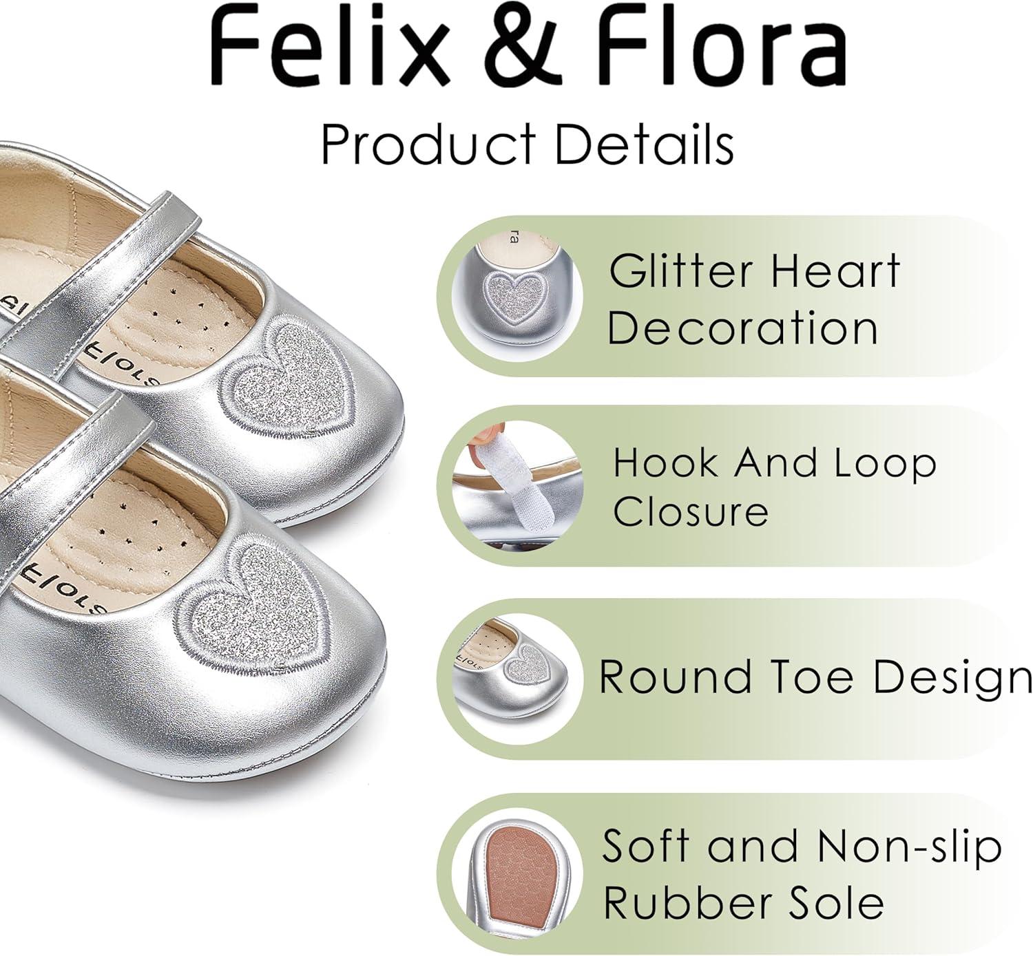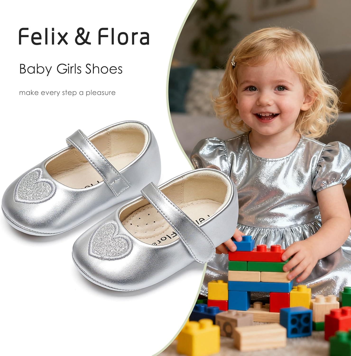 Felix & Flora Soft Sole Baby Shoes – Infant Baby Girls Ballet Flats Moccasinss Rubber Sole Walking Crib Shoes(Bn42-silver)