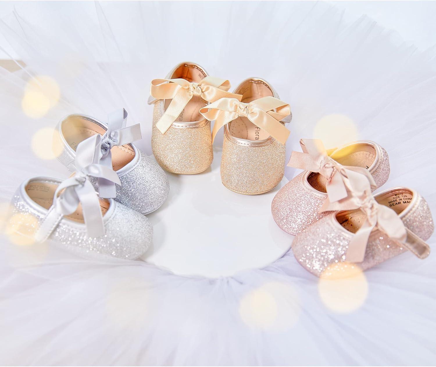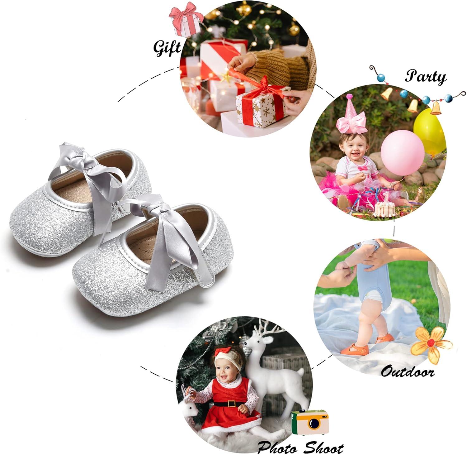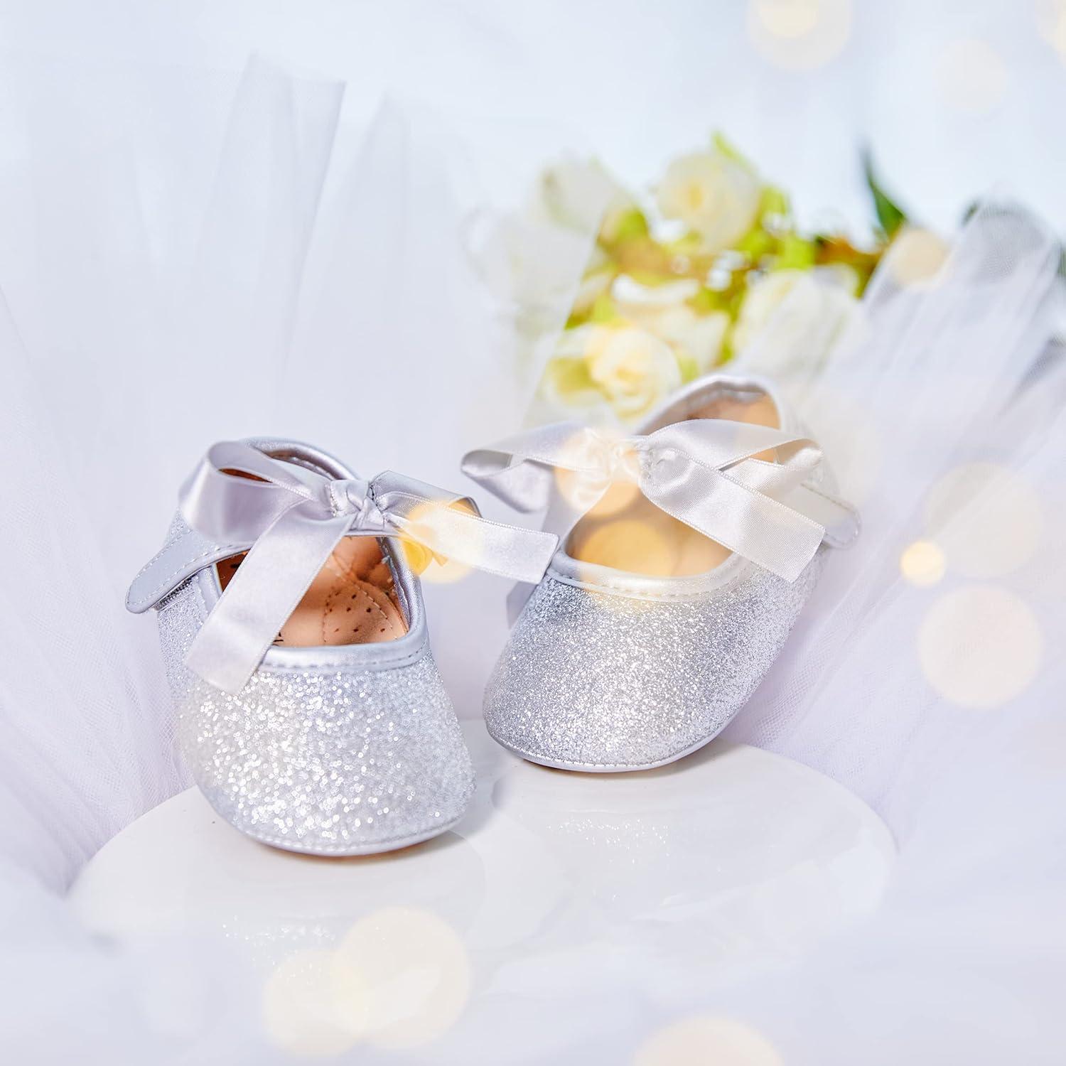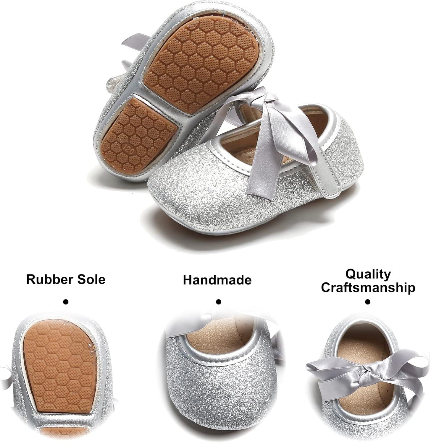Felix & Flora Soft Sole Baby Shoes – Infant Baby Walking Shoes Moccasinss Rubber Sole Crib Shoes(B10-silver)
