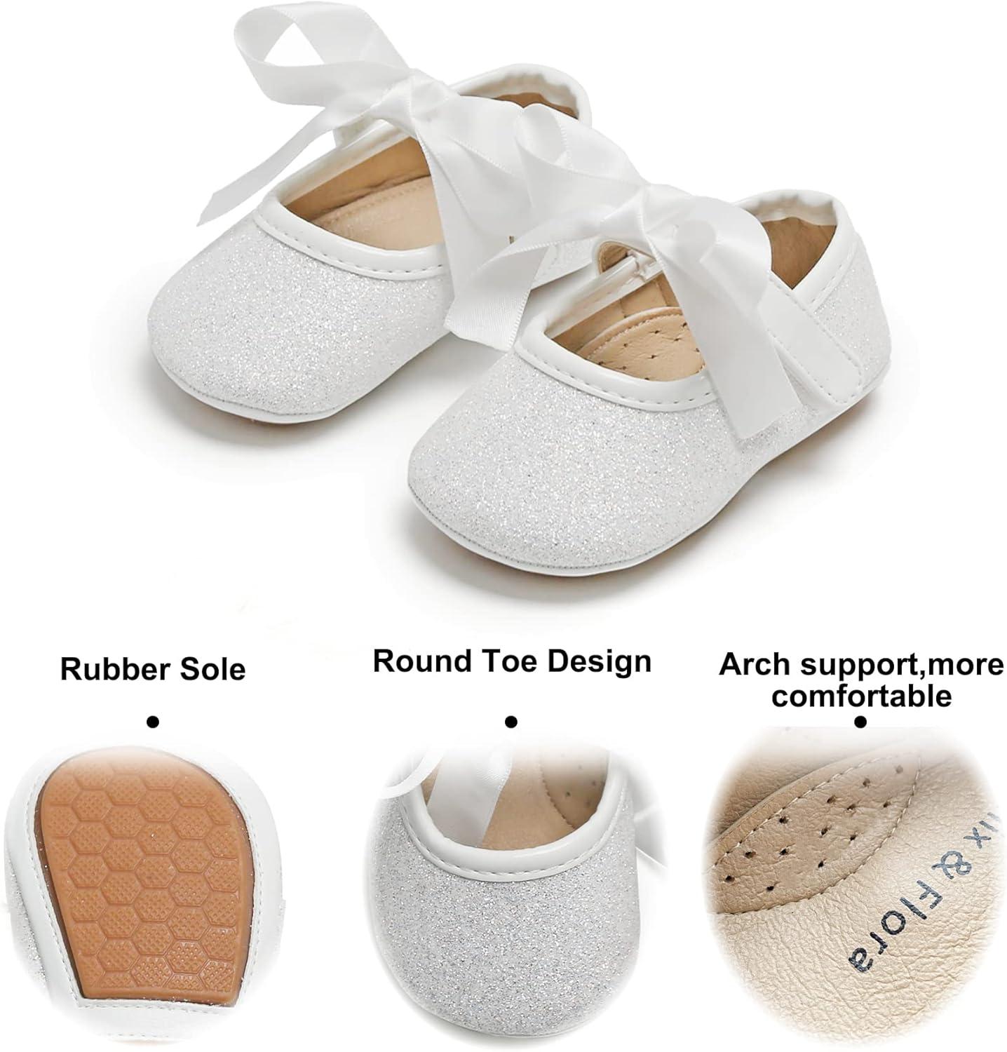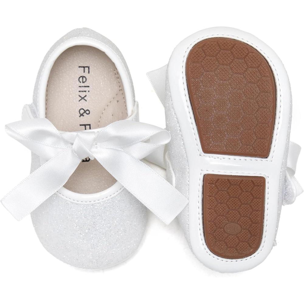 Felix & Flora Soft Sole Baby Shoes – Infant Baby Walking Shoes Moccasinss Rubber Sole Crib Shoes(B18- White)