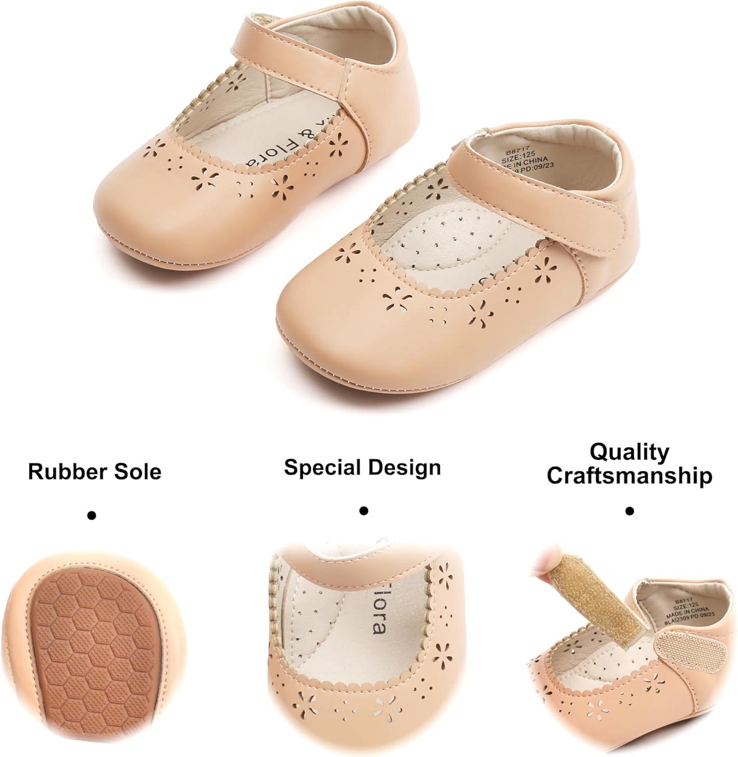 Felix & Flora Soft Sole Baby Shoes – Infant Baby Walking Shoes Moccasinss Rubber Sole Crib Shoes(B8717-nude)
