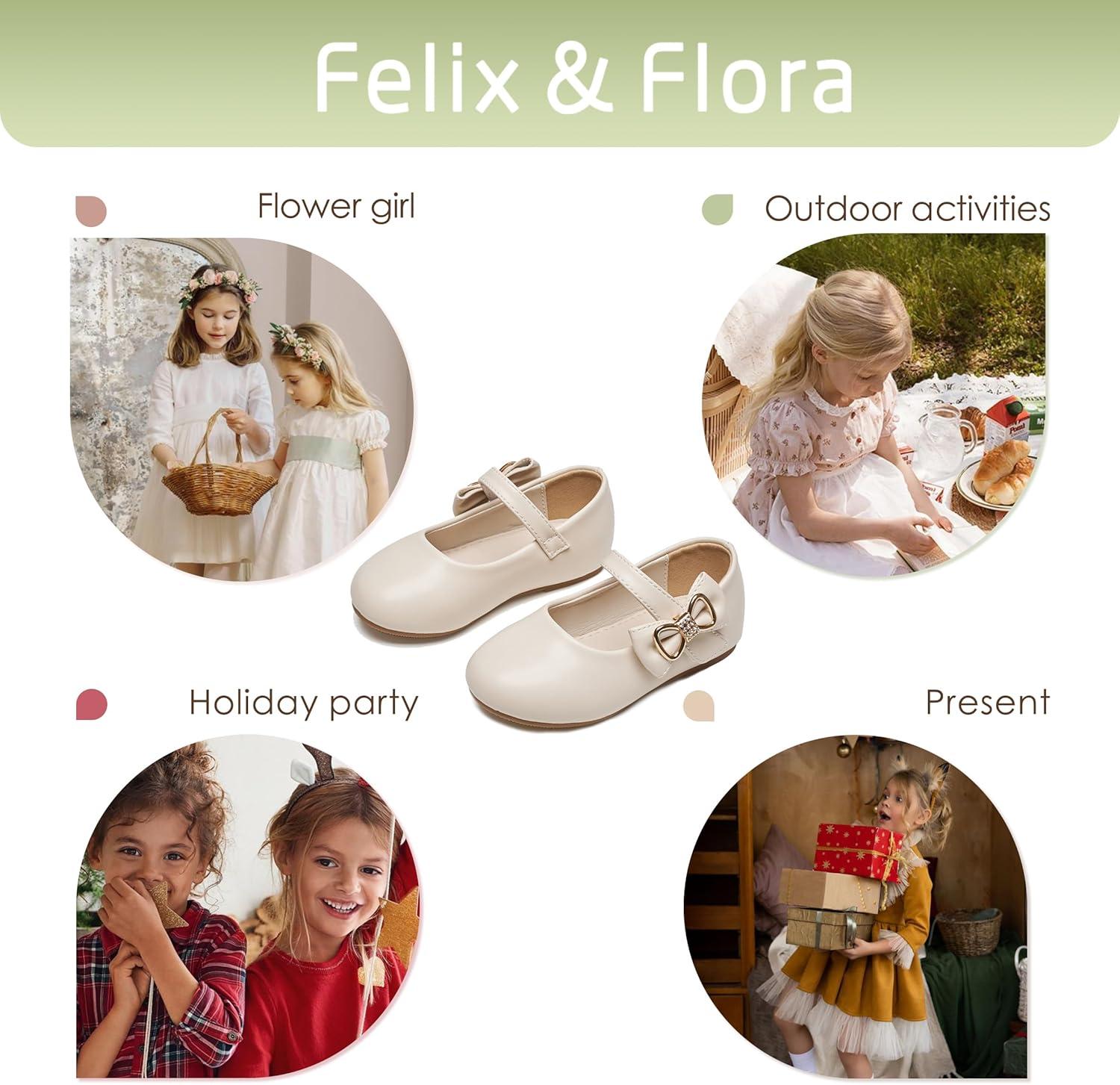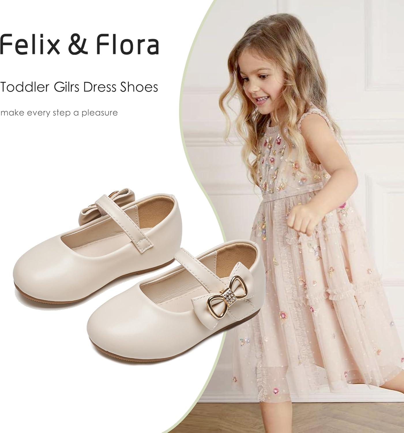 Felix & Flora Toddler Flower Girl Dress Shoes – Baby Girl Ballet Mary Jane Flats for Party School Wedding(B888-fl Beige)