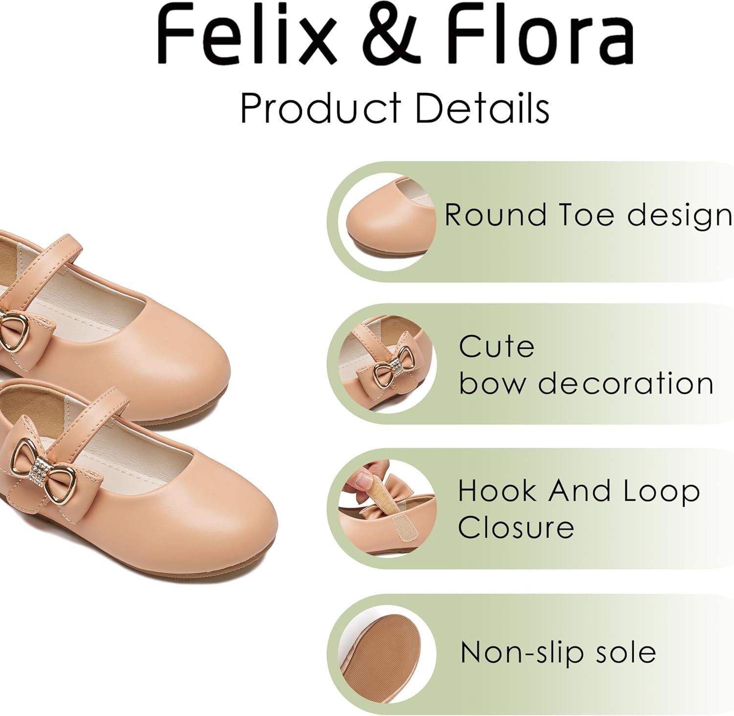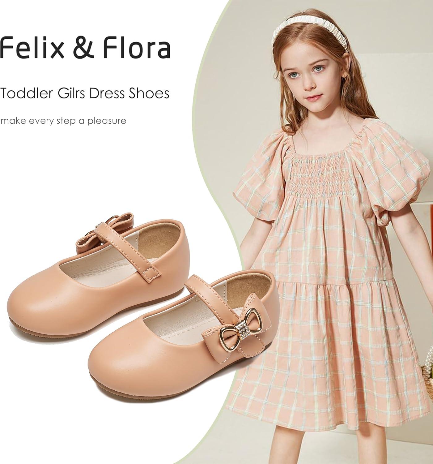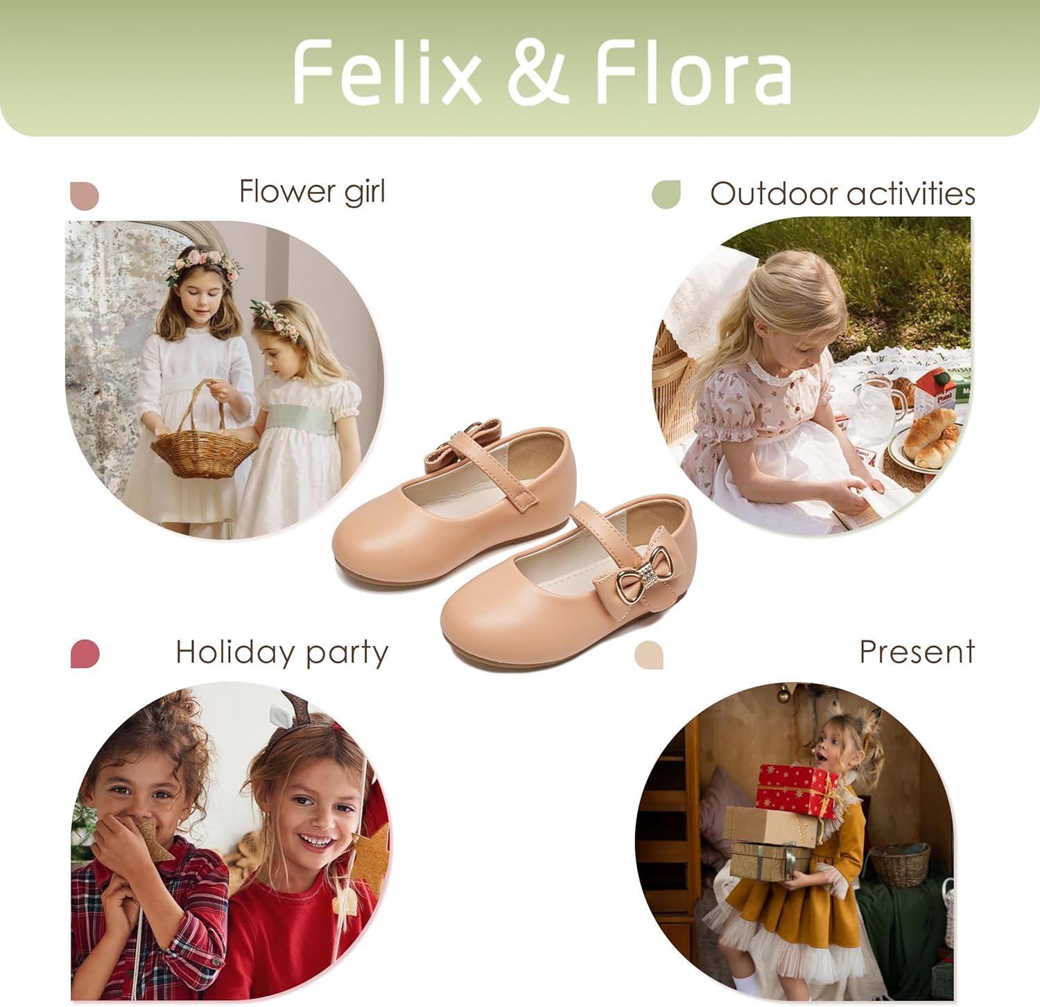 Felix & Flora Toddler Flower Girl Dress Shoes – Baby Girl Ballet Mary Jane Flats for Party School Wedding(B888-fl Nude)
