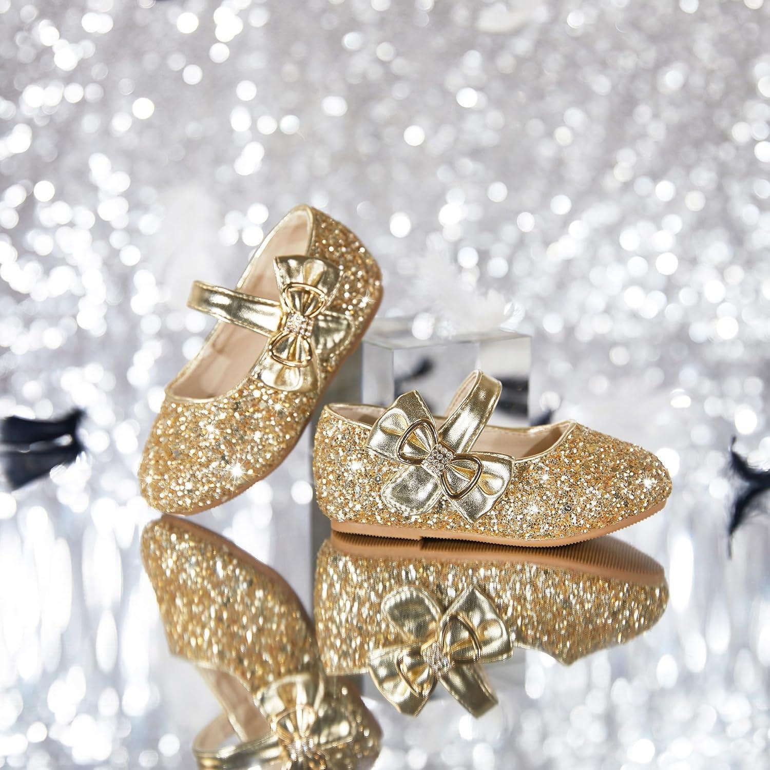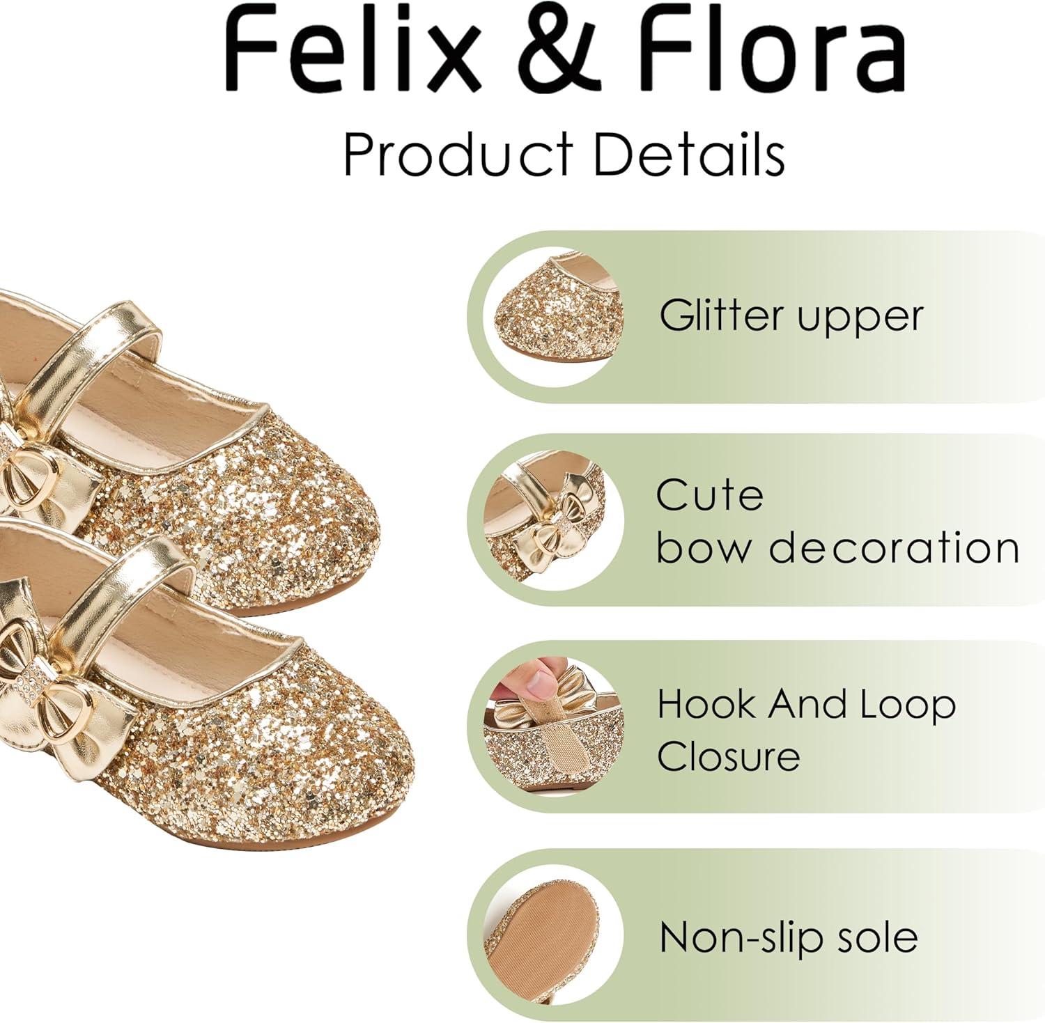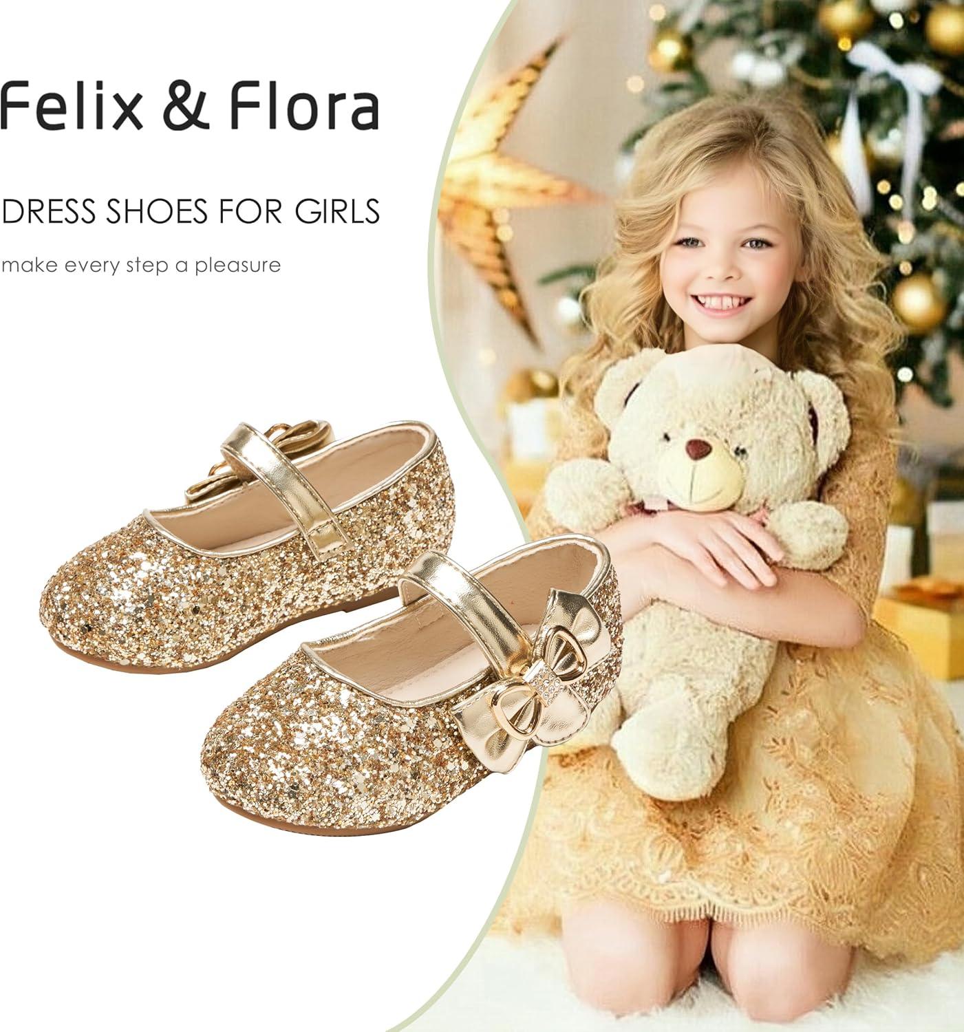 Felix & Flora Toddler Flower Girl Dress Shoes – Baby Girl Ballet Mary Jane Flats for Party School Wedding(B888-glitter Gold)