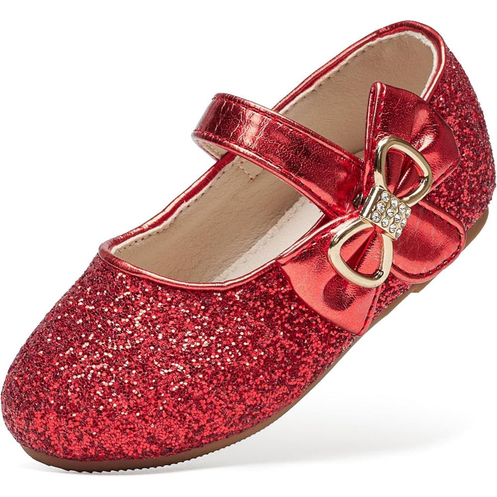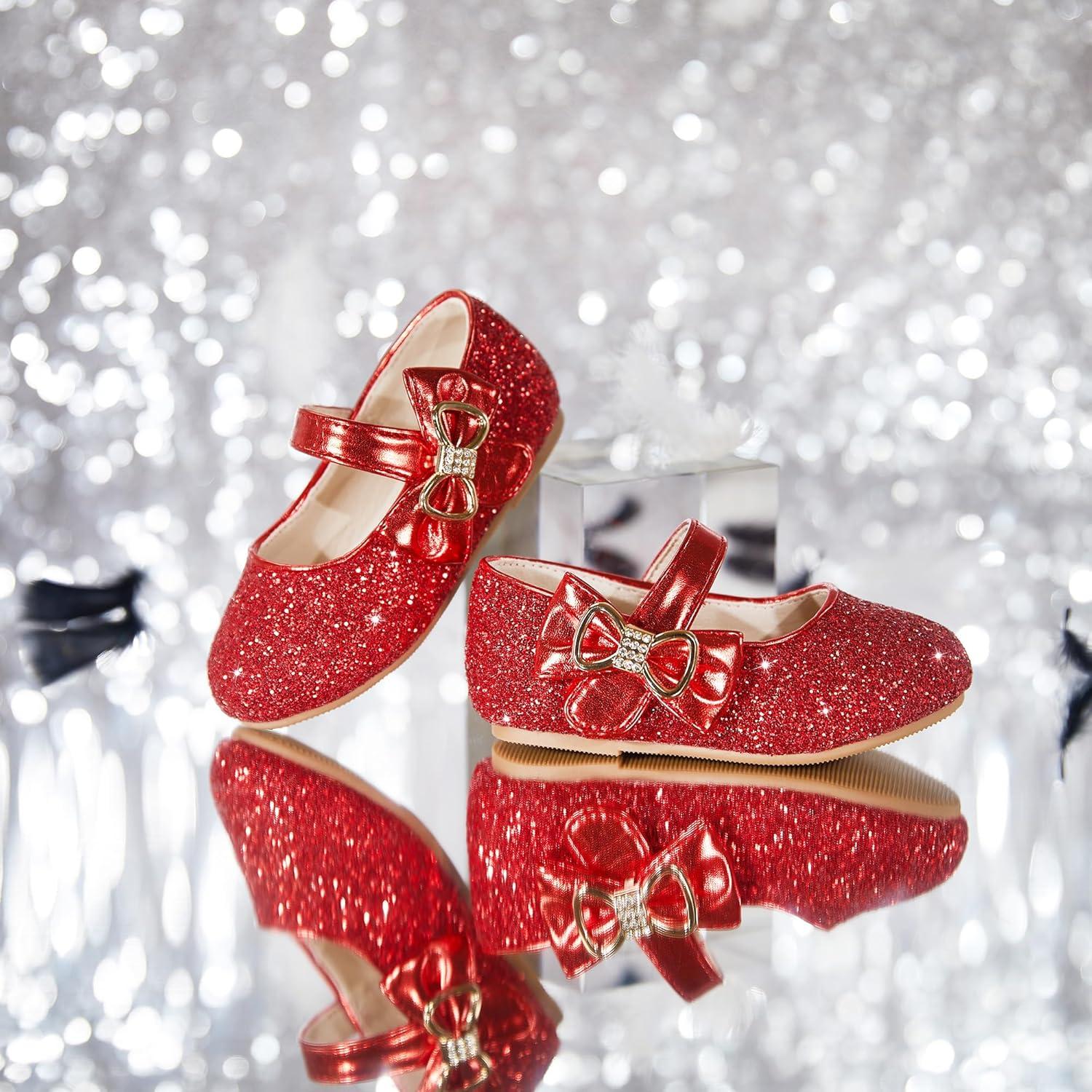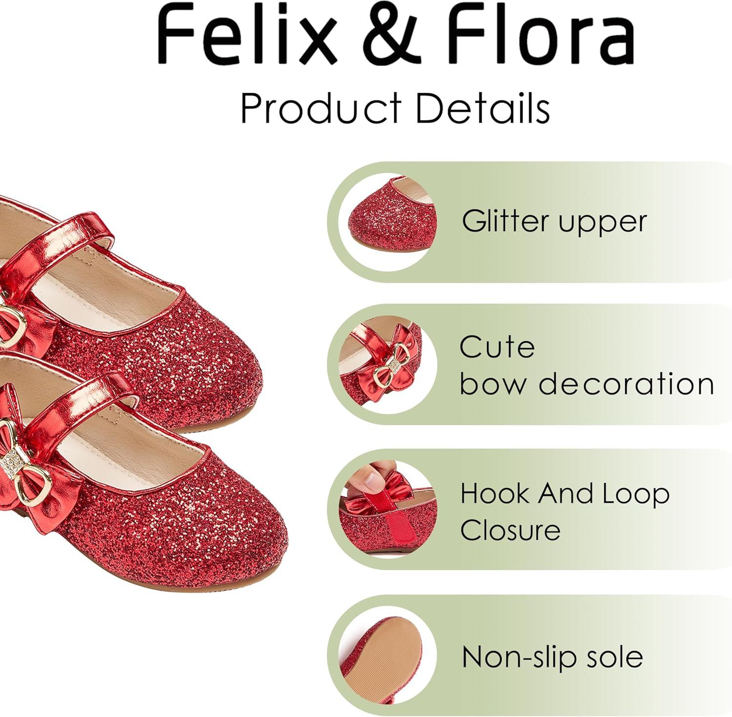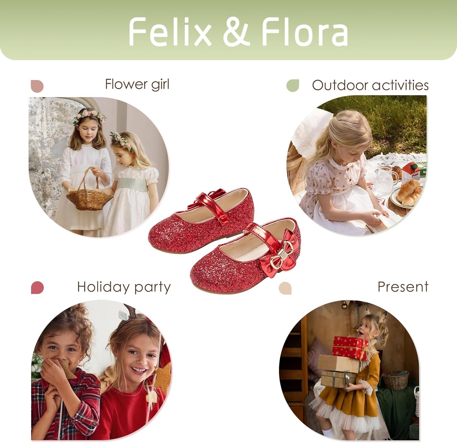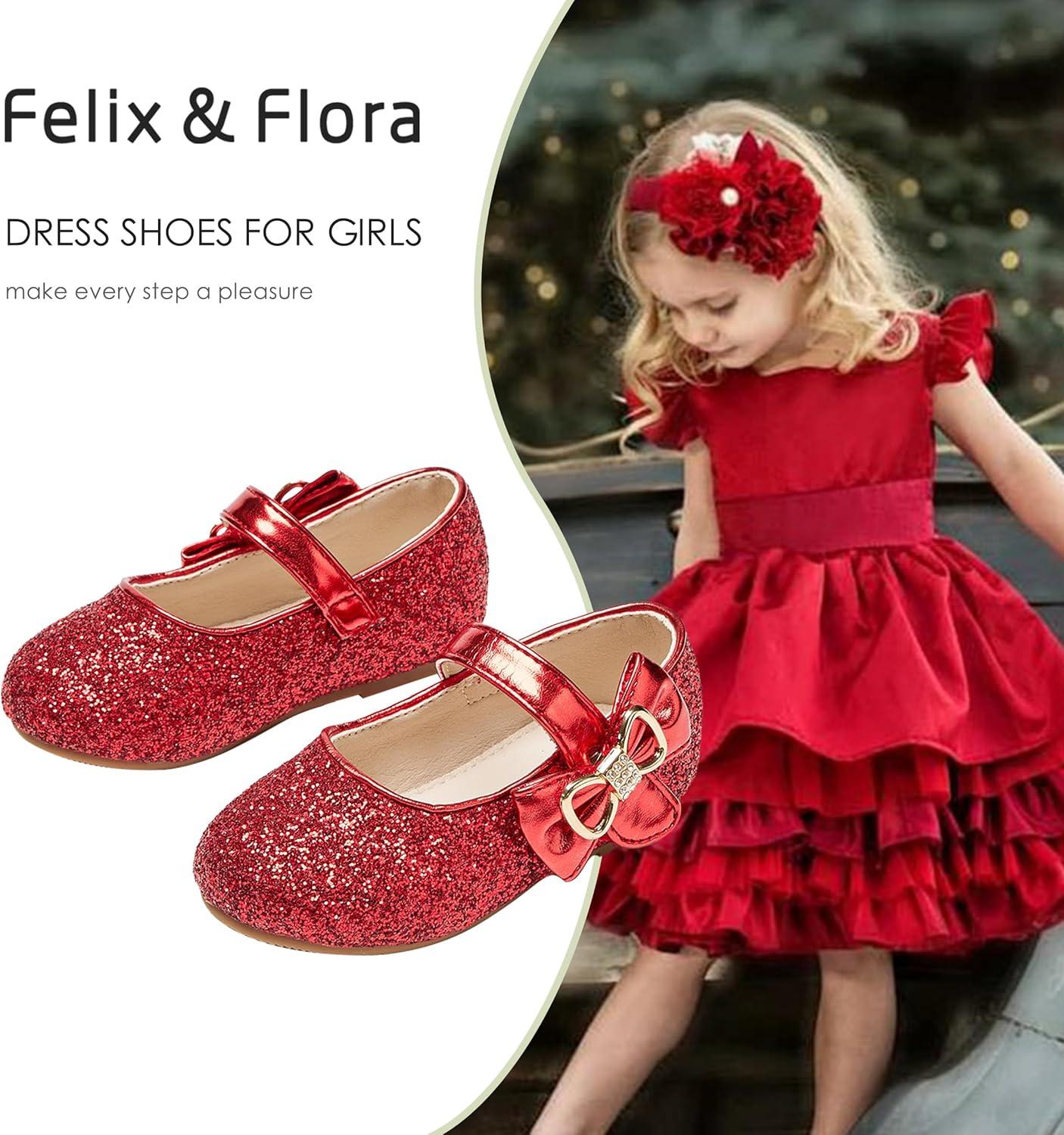 Felix & Flora Toddler Flower Girl Dress Shoes – Baby Girl Ballet Mary Jane Flats for Party School Wedding(B888-glitter Red)